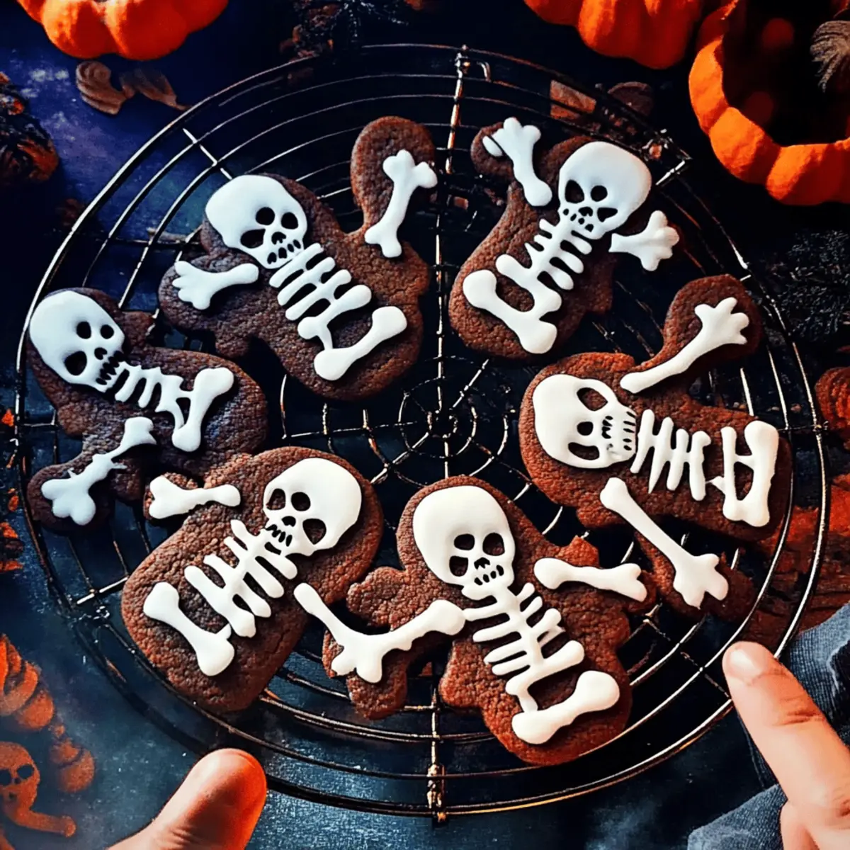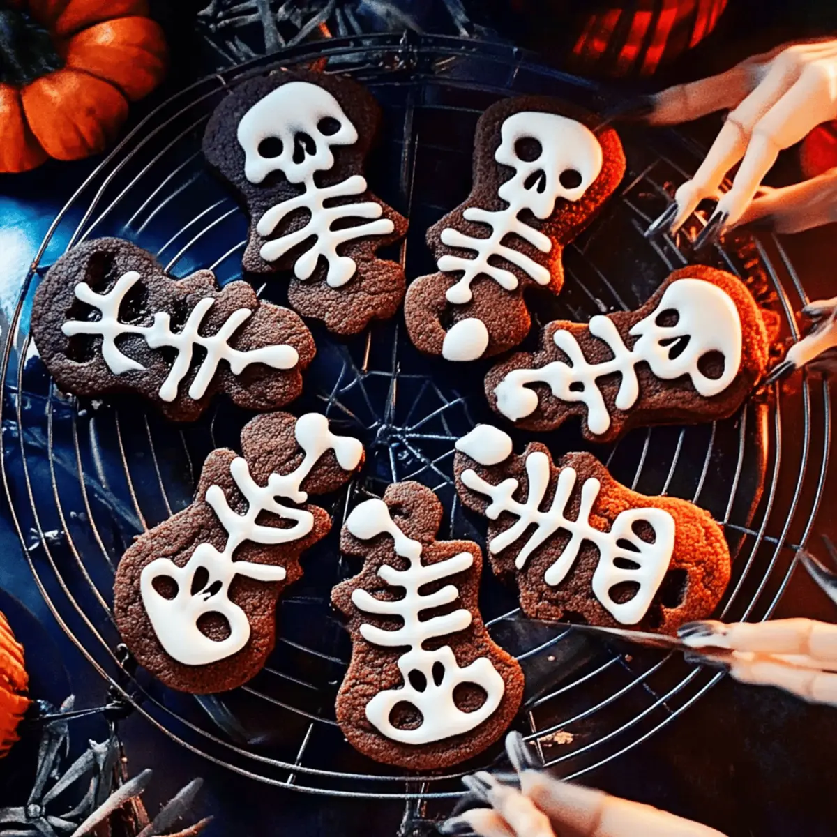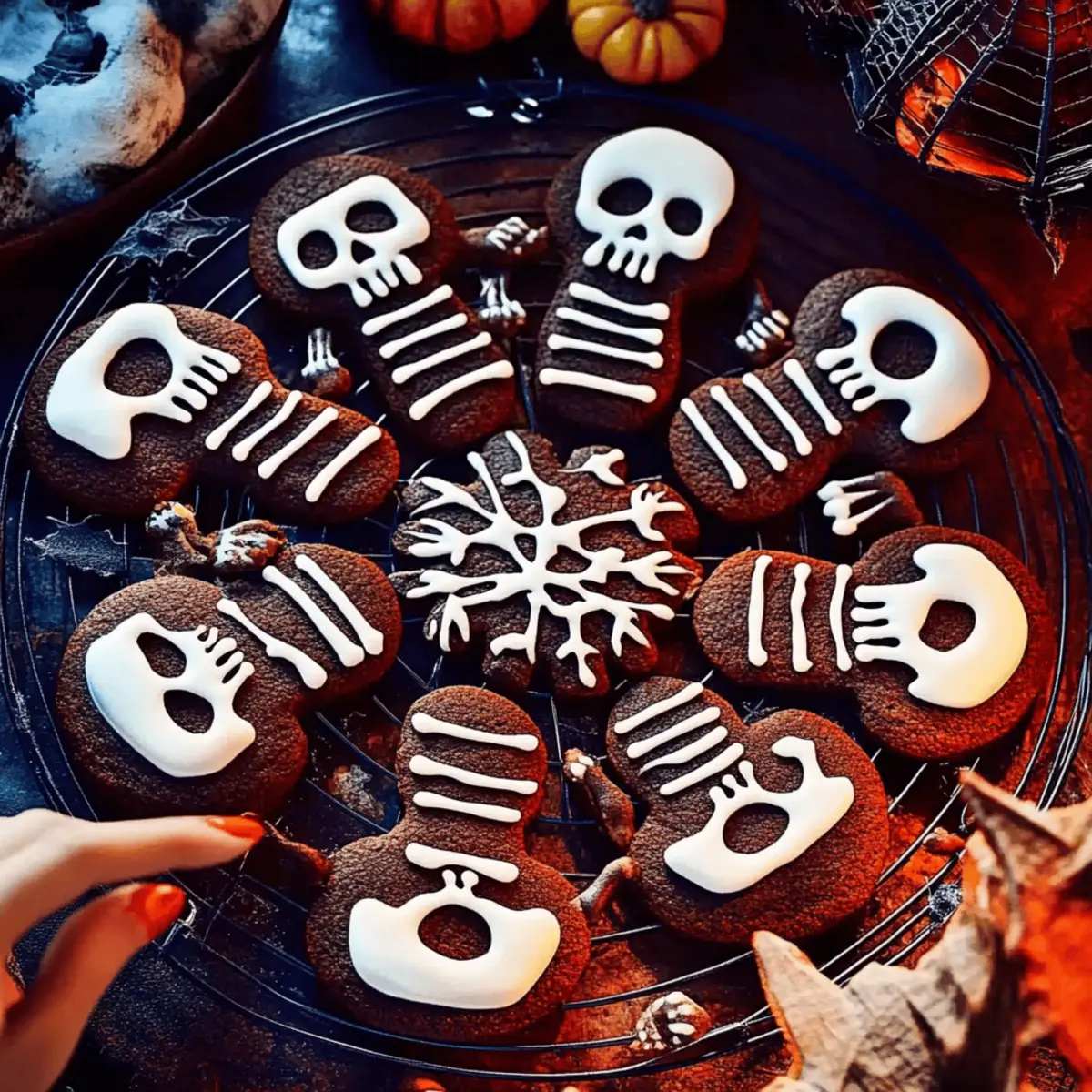 Jump to Recipe Print RecipeAs the crisp autumn air settles in, I find myself reminiscing about childhood Halloween nights filled with excitement and treats. One of my favorite festive delights has always been Skeleton Biscuits. These cookies not only deliver a rich cocoa flavor but also transform the kitchen into a haunted baking haven—an enchanting activity for both kids and adults alike. With their charming skull and bone designs, these biscuits are sure to steal the show at any Halloween gathering, making them a perfect addition to your seasonal spread. Plus, they’re vegetarian-friendly and simple to whip up, turning your kitchen into a Halloween celebration without the fuss. Ready to bake some spooky fun? Let’s dive into this delightful recipe that’s sure to spark joy and creativity! Why are Skeleton Biscuits a must-try? Spooky Appeal: These skeleton biscuits bring Halloween spirit right into your kitchen, making baking a festive adventure. Rich Cocoa Flavor: The deep, chocolatey taste will satisfy every sweet tooth in the family. Fun for Everyone: Kids love helping with the decorating, transforming baking into a playful activity. Versatile Shapes: Feel free to switch it up; use the same recipe for shapes like pumpkins or ghosts! If you want more Halloween treats, check out my chocolate doughnuts and get inspired. Easy to Make: This recipe doesn’t require advanced skills, so anyone can join in on the fun! Skeleton Biscuits Ingredients For the Biscuits Unsalted Butter – Adds richness and moisture. Substitution: Use margarine for a dairy-free option. Caster Sugar – Provides sweetness and a fine texture. Substitution: Granulated sugar can be used if caster sugar is unavailable. Plain Flour – Offers structure to the biscuits. No substitutions needed. Cocoa Powder – Enhances flavor and gives a chocolatey color. Substitution: Dark cocoa for a richer taste. Black Food Colouring – Creates the distinctive skeleton color. Note: Optional; can be omitted for regular biscuits. For the Icing Icing Sugar – For decorating and sweetening the icing. Substitution: Powdered sugar acts the same in icing. Get ready to bake some delightfully spooky skeleton biscuits that will enchant your family and friends this Halloween! Step‑by‑Step Instructions for Skeleton Biscuits Step 1: Cream the Butter and Sugar Begin by placing room-temperature unsalted butter and caster sugar into a mixing bowl. Using an electric mixer, beat them together on medium speed until the mixture becomes light, fluffy, and pale in color, which should take about 3-4 minutes. This creates a rich, creamy base for your skeleton biscuits, ensuring they’re delightful and textured. Step 2: Combine Dry Ingredients Next, gently sift in the plain flour and cocoa powder to the creamed butter and sugar mixture. Add black food coloring if you’re using it. Use a spatula to fold these components together until no dry flour remains visible, creating a luscious chocolate dough that is slightly sticky. Take your time to ensure everything is well incorporated for the best flavor. Step 3: Chill the Dough Once the ingredients are mixed, form the dough into a ball and wrap it in plastic wrap. Refrigerate for 30 minutes to help firm it up. This chilling phase is crucial for maintaining the shape of your skeleton biscuits during baking, so make sure not to skip it, as it also enhances the flavors. Step 4: Roll Out the Dough After chilling, dust a clean surface with a little plain flour and roll out the dough to about 1cm thickness using a rolling pin. The darkness of the chocolate will become apparent as you roll, creating a beautiful base for your biscuit shapes. Ensure your dough is even to guarantee uniform baking and perfect edges for your skeleton biscuits. Step 5: Cut Out Shapes Using a person-shaped cookie cutter, cut out the biscuits from the rolled dough and transfer them to a lined baking tray. Space them a few centimeters apart to allow for slight spreading during baking. The playful skull and bone shapes will start to appear, adding a festive touch to your Halloween treats. Step 6: Chill the Cut-Outs Place the baking tray of cut-out biscuits back in the refrigerator for another 30 minutes. This additional chilling helps them maintain their shape while baking, ensuring that your skeleton biscuits come out with defined edges. In the meantime, preheat your oven, so it’s ready for baking once the biscuits are chilled. Step 7: Preheat and Bake Preheat your oven to 180°C (160°C fan) or gas mark 4. Once the biscuits have finished chilling, bake them in the preheated oven for about 18-21 minutes. Keep an eye on them, and look for the edges to turn firm while the centers remain slightly soft. This creates the perfect texture combination for your Halloween treats. Step 8: Cool Completely Once baked, remove the trays from the oven and let the biscuits cool on the tray for about 5 minutes. After that, transfer them to a wire rack to cool completely. This step is important as they need to be fully cooled before icing, ensuring that your skeleton biscuits hold their shape perfectly for decoration. Step 9: Prepare the Icing In a small bowl, sift icing sugar and gradually mix in 1-1½ tablespoons of water until you achieve a thick paste consistency. This will be your decorating icing, perfect for piping festive bone shapes and skulls on your cooled skeleton biscuits. Make sure the paste isn’t too runny to maintain the designs you want! Step 10: Decorate the Biscuits Using a piping bag or a simple zip-top bag with a corner snipped off, carefully pipe your icing onto the cooled biscuits. Create spooky designs like skulls and bones, letting your creativity flow. Once decorated, allow the icing to set completely before serving, making your skeleton biscuits a standout treat at any Halloween celebration! How to Store and Freeze Skeleton Biscuits Airtight Container: Store your skeleton biscuits in an airtight container at room tempera