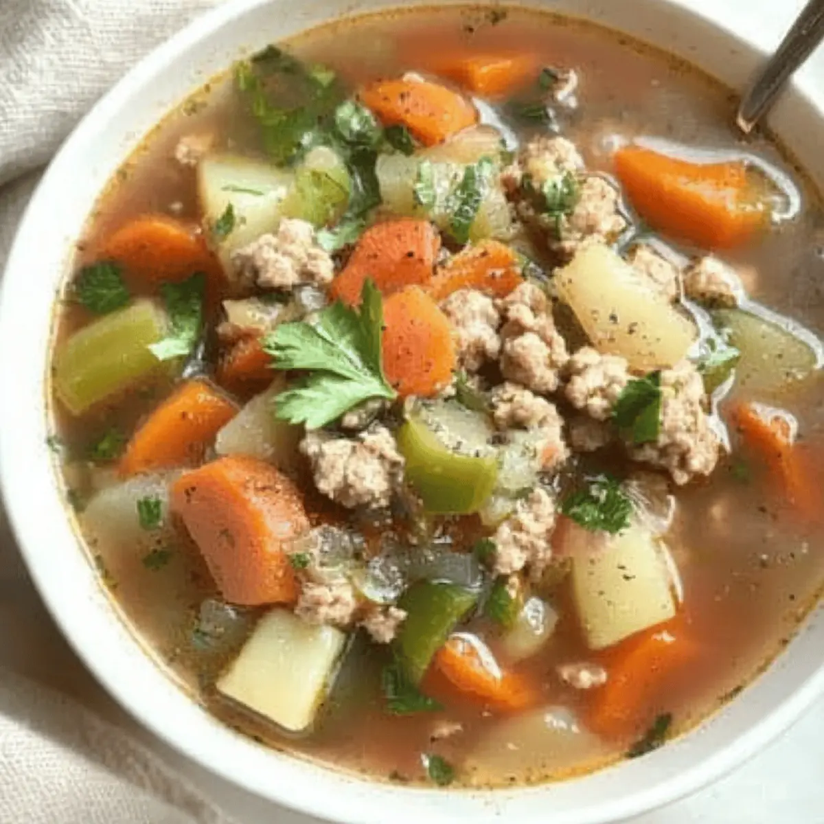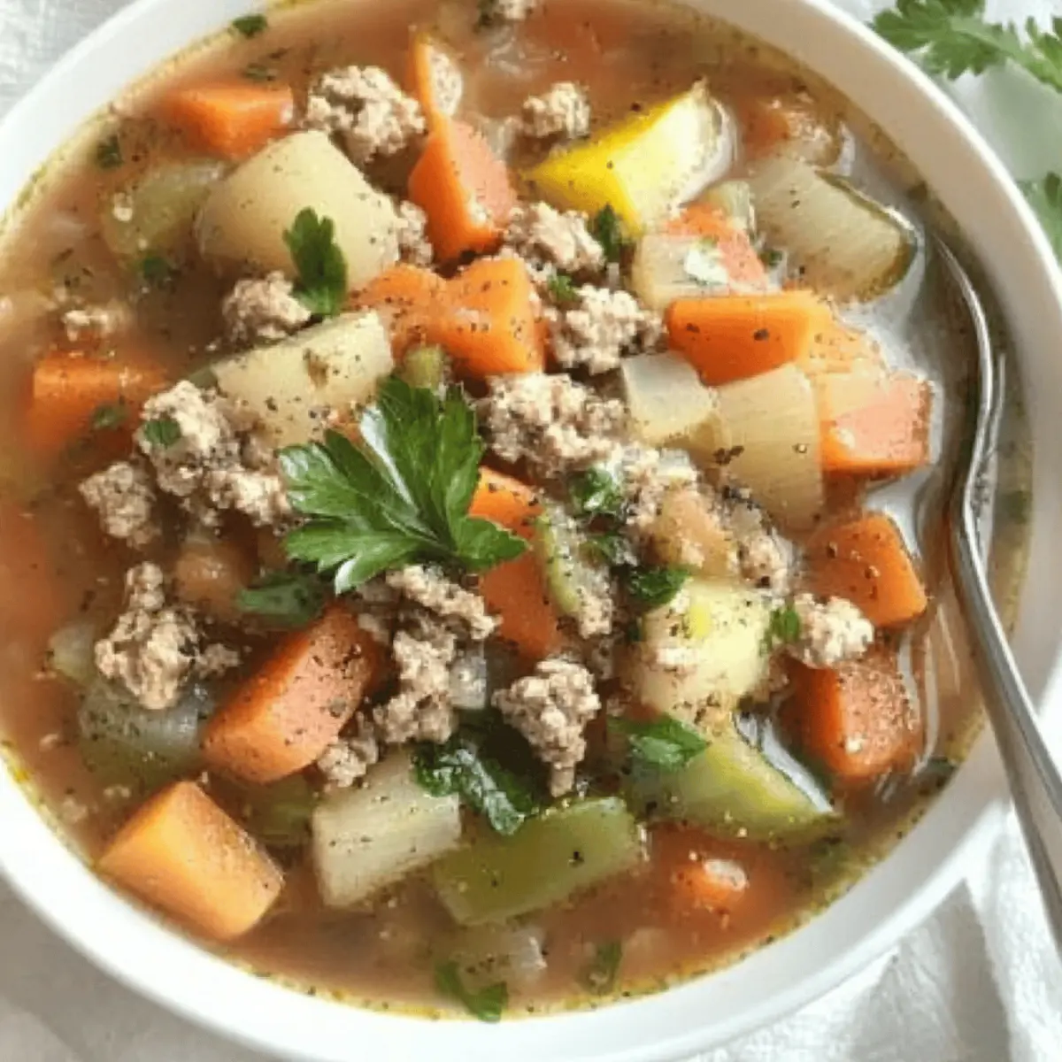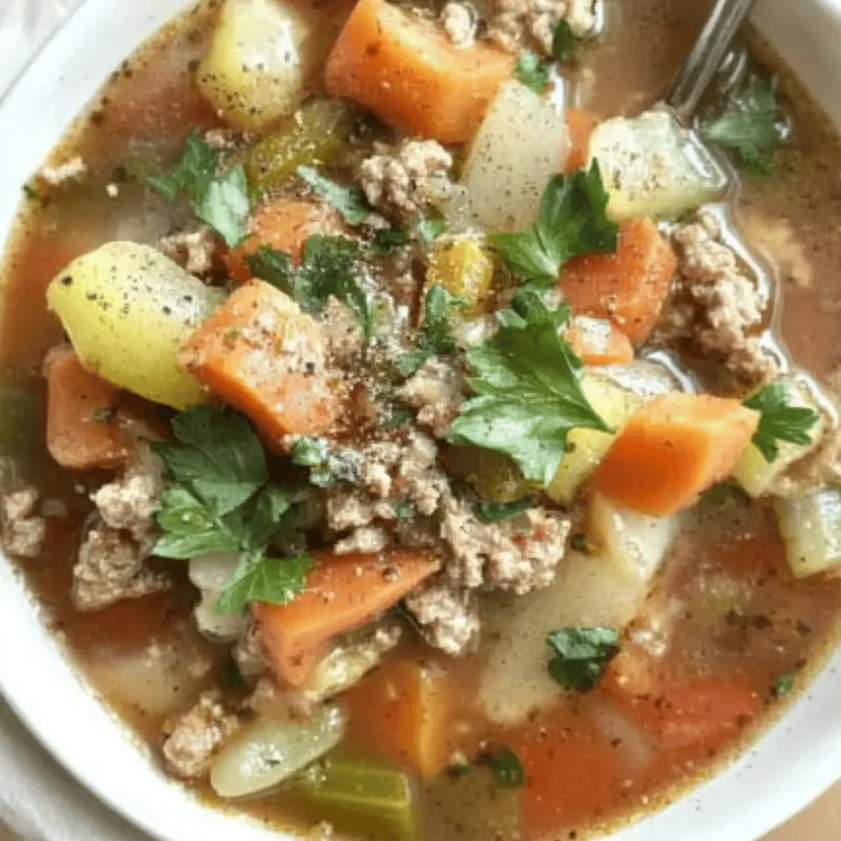Jump to Recipe Print RecipeThe comforting aroma of simmering soup filled my kitchen, prompting fond memories of cozy family dinners. This Hearty Slow Cooker Ground Turkey Vegetable Soup is my secret weapon for those busy days when I crave something warm and satisfying without the fuss. Packed with vibrant veggies and lean ground turkey, it perfectly balances health and flavor. Plus, it’s an easy prep that allows you to set it and forget it—ideal for any home chef eager to whip up a nourishing meal. As the days grow shorter and the chill sets in, this gluten-free dish becomes my go-to solution for hearty comfort without the heavy calories. Curious about how to make your own comforting bowl of goodness? Let’s dive into this delightful recipe! Why is this soup a must-try? Hearty, this Slow Cooker Ground Turkey Vegetable Soup offers a comforting depth of flavor, perfect for chilly evenings. Nutritious, it packs a punch with fiber-rich veggies that keep you full without the guilt. Easy prep ensures you can toss everything in and focus on your day—how perfect is that? Enjoy this versatile recipe as you can swap out ingredients based on what you have on hand, just like my beloved Tortellini Soup Cozy for a delightful twist. Crowd-pleaser, it’s sure to win over anyone at your table, making it ideal for family dinners or gatherings. Slow Cooker Ground Turkey Vegetable Soup Ingredients • To create this nourishing soup, gather simple ingredients that you likely already have in your pantry or fridge. For the Soup Base Olive Oil – Adds richness and aids in cooking; can substitute with avocado or canola oil. Ground Turkey – Main protein source, lean and nutritious; ground chicken or beef can easily replace this. Garlic Cloves, minced – Enhances flavor with aromatic depth; fresh is always best, but garlic powder can work too. Onion, diced – Provides a base flavor and sweetness; shallots offer a milder alternative. Celery Sticks, diced – Adds crunch and flavor depth; fennel or bell peppers are great replacements. Carrots, diced – Contributes natural sweetness and color; parsnips or sweet potatoes can be delightful substitutes. White Potatoes, peeled and chopped into small cubes – Adds heartiness and texture; sweet potatoes or skipping them altogether lower carbs. Diced Tomatoes, drained – Provides acidity and moisture; canned crushed tomatoes work well too if diced aren’t available. Chicken Broth – Acts as the soup base, infusing flavor; vegetable broth suits a vegetarian version perfectly. For the Seasoning Salt – Enhances all flavors; adjust according to dietary needs. Pepper – Adds heat and flavor depth; freshly cracked pepper yields the best results. Garlic Powder – Adds an extra layer of garlic flavor; use more fresh garlic if you prefer. Dried Oregano – Offers earthy notes; Italian seasoning can be a good alternative. Ground Thyme – Complements the soup’s flavors with herbal notes; dried basil is also a nice substitute. For the Finish Spinach, fresh or frozen – Introduces nutrients and color; kale or Swiss chard are great alternatives. Fresh Parsley – Garnishes the dish with freshness; can swap with other herbs like cilantro for variety. Step‑by‑Step Instructions for Hearty Slow Cooker Ground Turkey Vegetable Soup Step 1: Sauté the Turkey In a medium skillet, heat 1 tablespoon of olive oil over medium-high heat. Add 1 pound of ground turkey and cook for about 5-10 minutes, stirring occasionally until the turkey is well-browned and no longer pink. This step ensures that the turkey is flavorful and safe to eat before adding it to your slow cooker. Step 2: Transfer to Slow Cooker Once the turkey is browned, carefully transfer it to your slow cooker. Add in 1 diced onion, 2 diced celery sticks, 2 diced carrots, and 2 cups of peeled and chopped white potatoes. Pour in one 14.5-ounce can of drained diced tomatoes, followed by 4 cups of chicken broth, and stir to combine the ingredients evenly in preparation for slow cooking. Step 3: Add the Seasonings Sprinkle in 1 teaspoon of salt, ½ teaspoon of pepper, 1 teaspoon of garlic powder, 1 teaspoon of dried oregano, and ½ teaspoon of ground thyme over the contents in the slow cooker. These spices will bring a depth of flavor to your Hearty Slow Cooker Ground Turkey Vegetable Soup, ensuring that every spoonful is deliciously seasoned. Step 4: Stir in the Greens Now, add 2 cups of fresh or frozen spinach to the mixture. This will enhance the nutritional value and add a lovely color to the soup. Gently stir everything together to evenly distribute the spinach and other ingredients, ensuring that you have a vibrant soup base ready for some slow cooking. Step 5: Cook Low and Slow Set your slow cooker to the low setting and cover with a lid. Allow your soup to cook for 8-10 hours, which allows all the flavors to meld beautifully while the vegetables become tender and the turkey remains juicy. You’ll know it’s ready when the vegetables are fork-tender and the aroma fills your kitchen. Step 6: Serve the Soup Once the cooking time is complete, ladle the hearty soup into warm bowls. For an added touch, garnish with fresh parsley, if desired, to bring a pop of color and freshness. This comforting Hearty Slow Cooker Ground Turkey Vegetable Soup pairs beautifully with crusty bread or saltine crackers for a nourishing meal that warms the soul. Slow Cooker Ground Turkey Vegetable Soup Variations Feel free to get creative and make this soup your very own masterpiece! The flavors and textures are calling for a delicious twist. Spicy Kick: Add crushed red pepper flakes or diced jalapeños for a delightful heat that warms the soul. If you love a bit of spice, don’t shy away from turning up the heat! Veggie Medley: Toss in zucchini, corn, or bell peppers for added variety and nutrition. The more colorful the soup, the more inviting it feels, right? Lentil Delight: Substitute lentils instead of turkey for a hearty vege