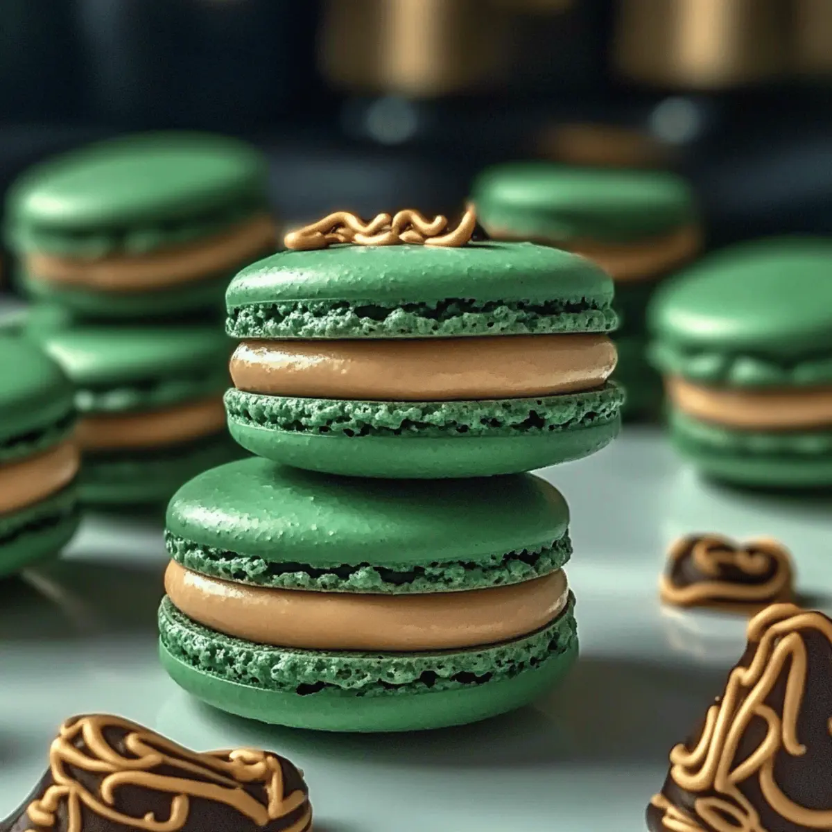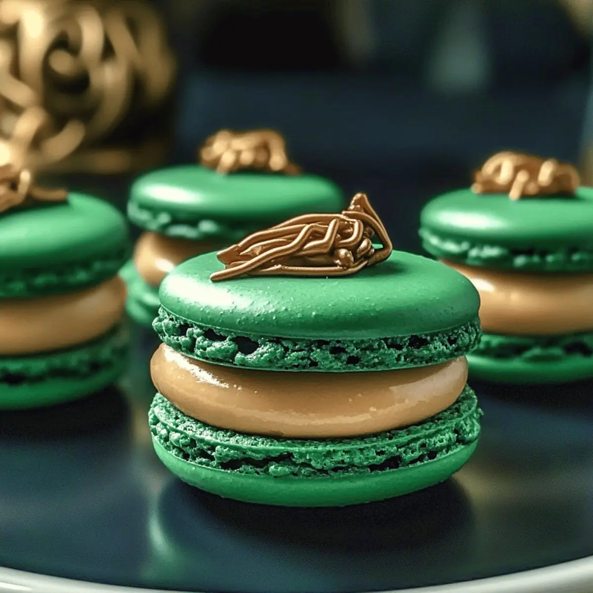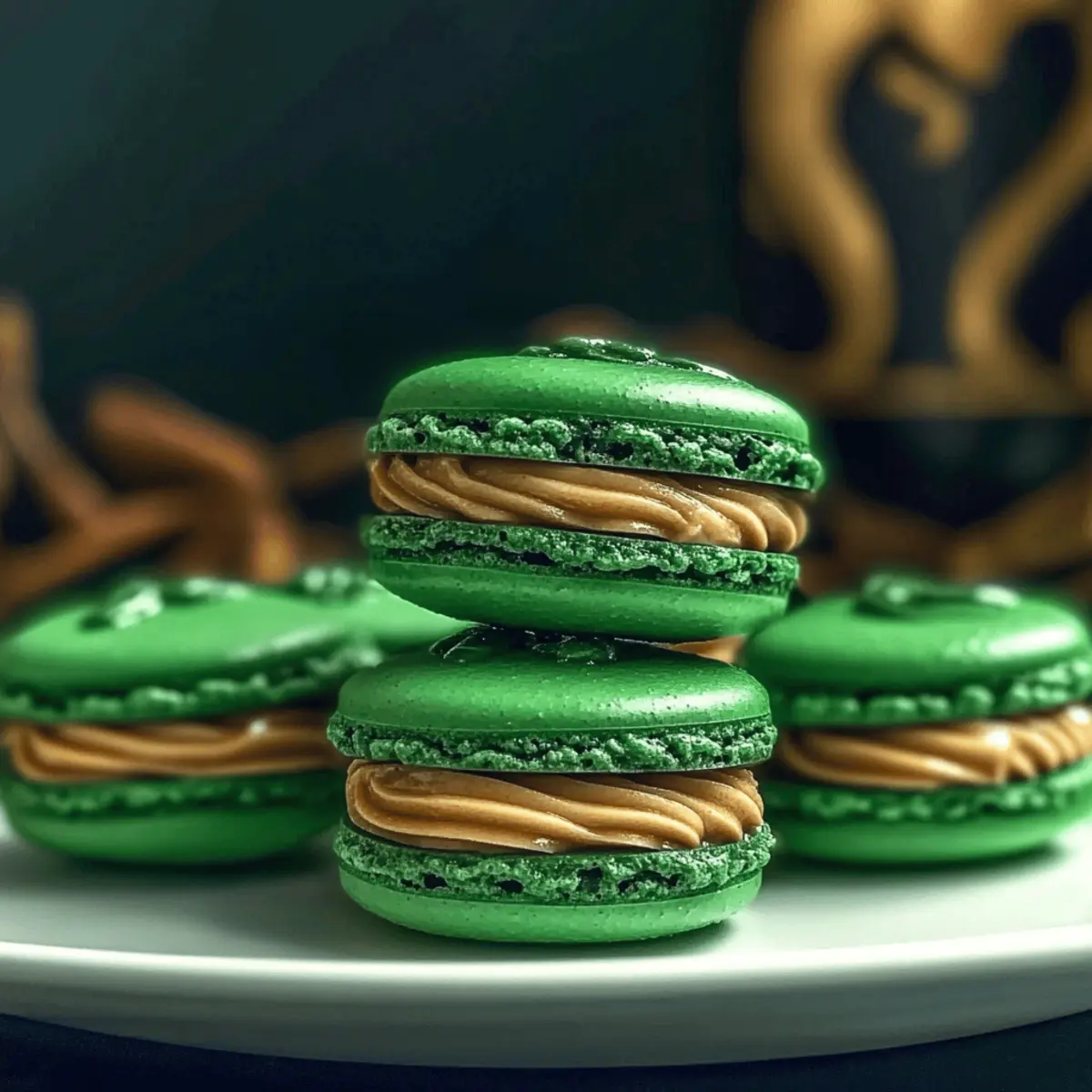 Jump to Recipe Print RecipeAs I savored the last bite of a delicate macaron at a quaint café, I couldn’t shake the magical flavors that danced on my palate. That heartwarming experience inspired me to create Slytherin’s Mystic Butterbeer Macarons, a treat that brings whimsical joy to any gathering. These enchanting bites feature light almond shells filled with a wonderfully rich butterscotch flavor that pays homage to the beloved Harry Potter universe. What’s more? They’re impressively quick to make for a sophisticated dessert and offer a delightful twist for your next themed party or cozy hangout. Curious about how to make these spellbinding treats that could charm any crowd? Let’s dive into this magical baking adventure! Why are these macarons so magical? Enchanting Presentation: With their gentle green hues and delicate structure, these macarons are not just desserts; they’re conversation starters at any gathering. Delightfully Decadent: The rich butterscotch filling paired with crisp almond shells creates a flavor experience that is truly unforgettable. Quick and Easy: Unlike many traditional French pastries, these macarons offer a simpler baking process that any home chef can master, perfect for impressing guests without hours in the kitchen. Themed Versatility: You can effortlessly tweak colors and flavors; think Gryffindor red or a creamy vanilla twist for birthdays or special occasions. Nostalgic Fun: Drawing inspiration from the beloved Harry Potter series, these macarons bring a touch of nostalgia and whimsy to your plate, making them a hit for fans and foodies alike. Slytherin’s Mystic Butterbeer Macarons Ingredients For the Macaron Shells • Almond Flour – Provides structure and a light texture; keep it fine for the best results. • Powdered Sugar – Adds sweetness and contributes to the macaron’s signature smoothness. • Egg Whites – Must be fresh for creating a stable meringue; age them a day for better results. • Granulated Sugar – Sweetens and stabilizes the meringue blend. • Cream of Tartar – Ensures egg whites retain their foam during the whipping process. • Food Coloring (green or chosen shade) – Adjust to enhance visual appeal, perfect for your themed event. For the Butterscotch Filling • Unsalted Butter – Richness is key, so use high-quality butter for the best flavor. • Brown Sugar – Adds a depth of flavor reminiscent of traditional butterscotch. • Heavy Cream – Lends a creamy, smooth quality to your filling, balancing the sweetness. • Butterscotch Extract (or caramel extract) – Essential for that delightful butterbeer essence. • Vanilla Extract – Enhances and complements the butterscotch flavor. • Salt – Just a pinch balances the sweetness and elevates the filling’s flavor profile. Bring some magic into your kitchen with Slytherin’s Mystic Butterbeer Macarons—delicate creations that conjure delightful memories with every bite! Step‑by‑Step Instructions for Slytherin’s Mystic Butterbeer Macarons Step 1: Prepare Dry Ingredients Begin by sifting together 1 cup of almond flour and 1 cup of powdered sugar into a large bowl to eliminate lumps. This crucial step ensures that your Slytherin’s Mystic Butterbeer Macarons will have a smooth and delicate consistency. Set this mixture aside as you prep for the meringue. Step 2: Make Meringue In a clean mixing bowl, beat 3 large egg whites with a pinch of cream of tartar until frothy. Gradually add in 1 cup of granulated sugar while whisking continuously until stiff peaks form, which should take about 5-7 minutes. The meringue should be glossy and hold firm peaks, perfect for creating the scrumptious macaron shells. Step 3: Add Color Gently fold in several drops of green food coloring until your meringue reaches a delightful shade reminiscent of Slytherin while ensuring the color is evenly distributed. Be careful not to deflate the meringue; you want to maintain its airy texture that will make your Mystic Butterbeer Macarons light and crispy. Step 4: Combine Mixtures Gradually fold the dry almond flour and powdered sugar mixture into the meringue in three additions. Use a spatula in a downward motion until the batter becomes smooth and flows like lava, approximately 25-30 strokes. This step is vital for achieving the perfect macaron batter consistency before piping. Step 5: Pipe Macarons Prepare a piping bag fitted with a round tip and fill it with the macaron batter. Pipe even circles about 1.5 inches apart on parchment-lined baking trays, allowing space for the shells to expand. Aim for a smooth surface; this precision will keep your Slytherin’s Mystic Butterbeer Macarons looking pristine. Step 6: Rest Allow the piped macaron shells to rest at room temperature for 30-40 minutes, or until a light skin forms on the surface. During this time, the shells will develop a crust, which is essential to achieving that coveted “foot” during baking. You’ll know they’re ready when you can touch them gently without any batter sticking to your finger. Step 7: Bake Preheat your oven to 150°C (300°F). Bake the macarons for 15-18 minutes, monitoring carefully. Once done, the macarons should have developed their signature “feet” and feel firm to the touch. Avoid opening the oven door while baking to maintain the heat; this ensures an even bake for your enchanting treats. Step 8: Cool Once baked, remove the trays from the oven and let the macarons cool completely on the trays. This cooling step allows the delicate shells to firm up, making them easy to remove without breaking. Patience is key; ensuring they are completely cool will make assembling your Slytherin’s Mystic Butterbeer Macarons seamless. Step 9: Make Filling In a saucepan, melt ½ cup of unsalted butter over low heat. Stir in ¾ cup of brown sugar, allowing it to dissolve, then gradually mix in ½ cup of heavy cream until smooth. Remove from heat and whisk in 1 tsp of butterscotch extract, 1 