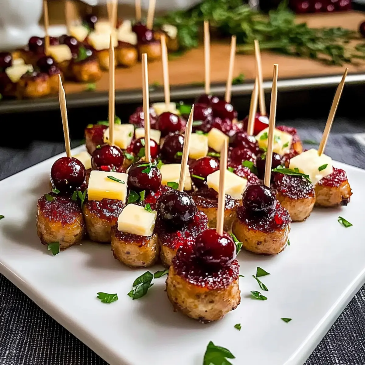 As the oven timer ticked down, a wave of mouthwatering scents filled my kitchen, transporting me to my favorite holiday gatherings. These Easy Sheet Pan Smoked Sausage Cranberry Bites are a delightful blend of savory sausage, creamy white cheddar, and the sweet tang of cranberry sauce, making them the ultimate crowd-pleaser for any occasion. With just a handful of ingredients and a simple assembly, you’ll have a tasty appetizer ready in no time—perfect for game days or festive celebrations. Not only do they come together quickly, but they also adapt well to your personal tastes, allowing for fun variations that will impress your friends and family. So, what flavor twist will you try first?