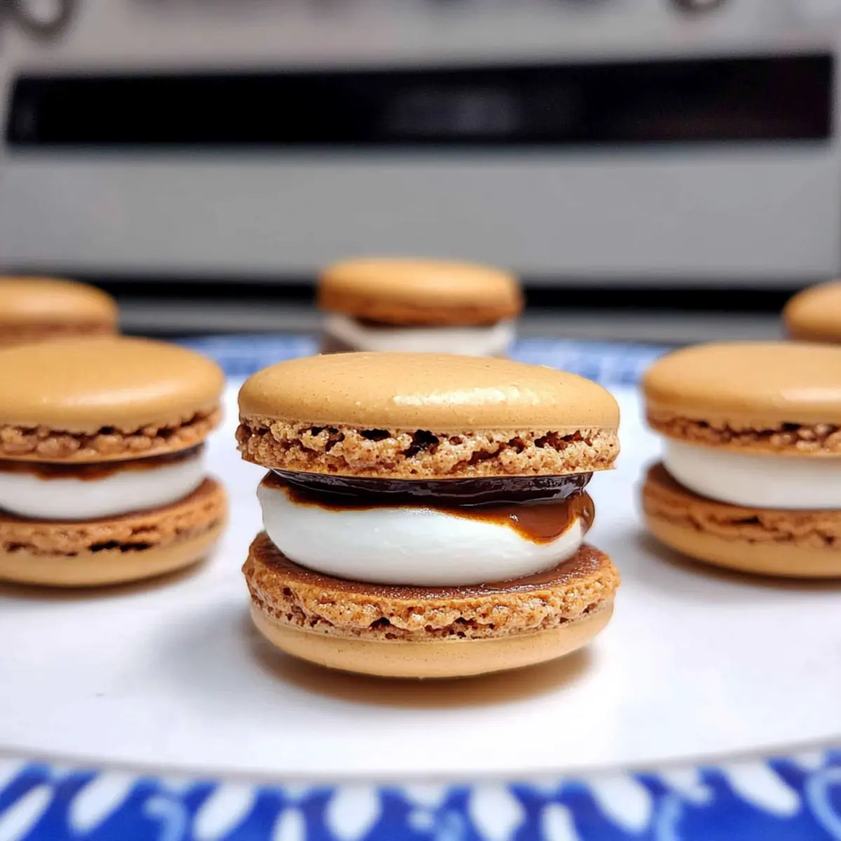 S'mores Macarons combine crunchy graham cracker shells with silky ganache and fluffy marshmallow filling for a delightful dessert experience.
