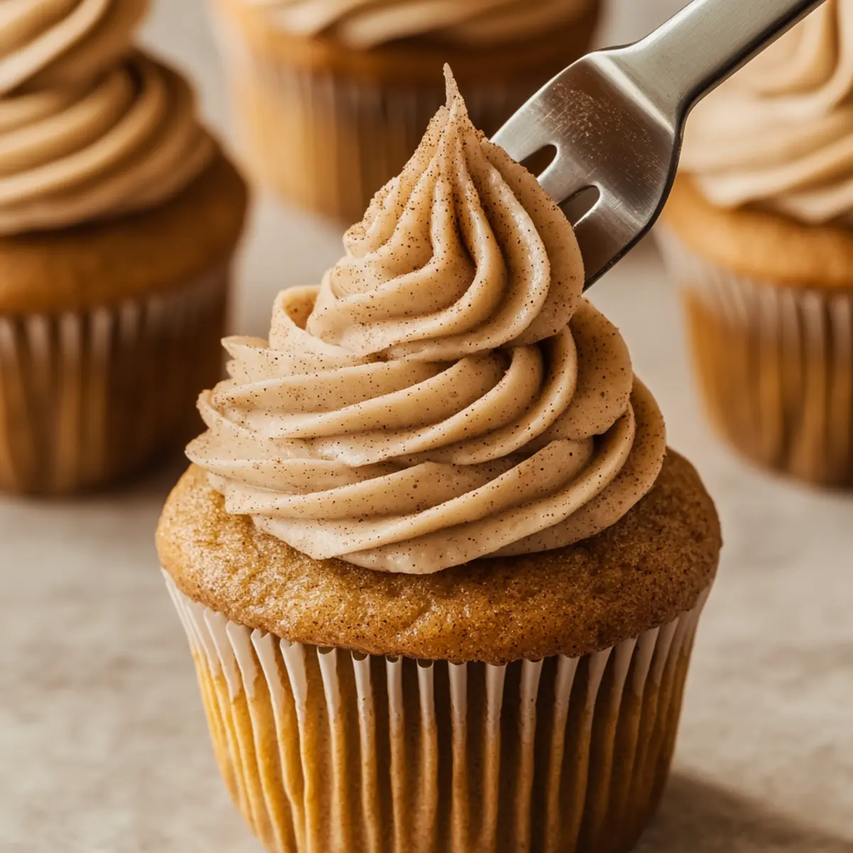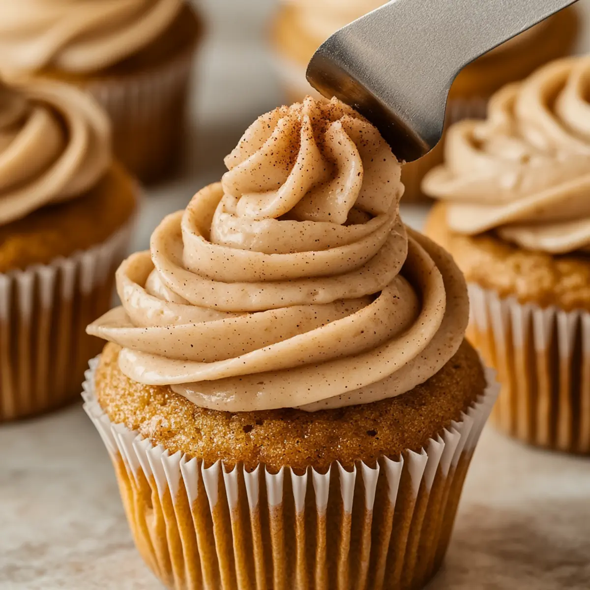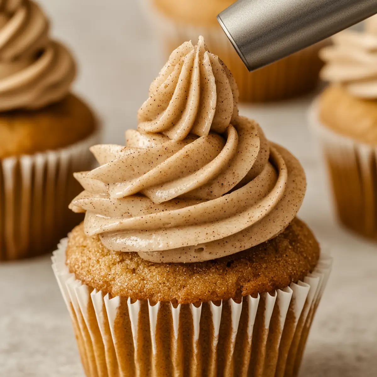 Jump to Recipe Print RecipeAs I pulled my warm Snickerdoodle Cupcakes from the oven, the sweet and spicy aroma enveloped my kitchen, transporting me back to cozy afternoons spent baking with family. These delightful creations perfectly marry the soft, fluffy texture of a cupcake with the familiar comforts of a classic snickerdoodle cookie, complete with a dreamy cinnamon frosting that makes each bite utterly irresistible. Not only are these Snickerdoodle Cupcakes incredibly easy to whip up, but they’re also guaranteed to steal the show at any gathering, making them a true crowd-pleaser. Whether you’re treating yourself on a lazy afternoon or sharing with loved ones, these cupcakes will wrap you in warmth and nostalgia. Ready to make your kitchen the coziest spot this season? Let’s dive into this sweet adventure together! Why Are Snickerdoodle Cupcakes So Irresistible? Decadent Flavor: The sweet, spiced aroma of cinnamon fills the air while baking, inviting you to indulge in a comforting treat. Easy to Make: With simple ingredients and straightforward steps, you can quickly whip up these delightful cupcakes at home. Perfect for Any Occasion: Whether it’s a family gathering or a cozy night in, these cupcakes fit right in and are sure to impress. Nostalgic Taste: Each bite celebrates the beloved flavors of a classic snickerdoodle cookie, making this treat a warm, fuzzy reminder of home. Versatile Pairings: Enjoy your Snickerdoodle Cupcakes with a cozy cup of coffee or alongside a scoop of ice cream for a delightful dessert experience. Check out our Strawberry Mango Cupcakes for more sweet treats! Snickerdoodle Cupcakes Ingredients Indulge in the cozy flavors of Snickerdoodle Cupcakes with these essential ingredients! For the Cupcakes Unsalted butter – Provides a rich, creamy base for the cupcakes; use softened for easier creaming. Granulated sugar – Adds sweetness to the cupcake. Large eggs – Contribute structure and moisture to the batter. Milk – Room temperature for a smooth batter; optional to use buttermilk for added flavor. Vanilla extract – Enhances the overall flavor profile. All-purpose flour – The primary structure ingredient for the cupcake. Baking powder – Helps the cupcakes rise and achieve fluffiness. Salt – Balances sweetness and enhances flavor. Cinnamon – Adds warmth and spice characteristic of snickerdoodles. For the Frosting Powdered sugar – Used for a smooth, sweet finish to the frosting; sift before use for best consistency. Unsalted butter – Serves as the creamy base of the frosting. Heavy whipping cream – Lends lightness and fluffiness to the frosting. Cinnamon and brown sugar – Sprinkled on top for an extra flavor boost. Step‑by‑Step Instructions for Snickerdoodle Cupcakes Step 1: Preheat and Prepare Preheat your oven to 350°F (175°C) and line a cupcake pan with paper liners to prevent sticking. This will prepare your baking space for the Snickerdoodle Cupcakes, ensuring they rise beautifully. Lay out all your ingredients so you have everything at hand, making the process smoother and more enjoyable. Step 2: Mix Dry Ingredients In a medium bowl, whisk together all-purpose flour, baking powder, salt, and cinnamon until well combined. This step is crucial for ensuring the dry ingredients are evenly distributed, which contributes to the delicious fluffy texture of the Snickerdoodle Cupcakes. Set this mixture aside while you move on to the wet ingredients. Step 3: Cream Butter and Sugar In a large mixing bowl, cream 1 cup of softened unsalted butter and 1 cup of granulated sugar together on medium speed for about 1-2 minutes, or until the mixture appears light and fluffy. This process is key in creating a tender cupcake batter, as it incorporates air into the mixture. Step 4: Incorporate Eggs Add in 2 large eggs, one at a time, beating well after each addition. The eggs are essential for providing moisture and structure to your Snickerdoodle Cupcakes. Ensure the mixture is smooth and well combined, as this will enhance the overall texture and flavor of the cupcakes. Step 5: Combine Wet and Dry Ingredients Gradually fold the dry ingredient mixture into the creamed butter and sugar, mixing just until incorporated. Then, stir in 1/2 cup of milk and 1 teaspoon of vanilla extract until the batter is smooth. Be careful not to overmix, as this could lead to dense cupcakes; a few lumps are perfectly fine. Step 6: Fill Cupcake Liners Using a large ice cream scoop, fill each cupcake liner about halfway with the batter. This ensures your Snickerdoodle Cupcakes have enough room to rise beautifully in the oven while achieving a perfect dome shape. Be careful not to overfill them to avoid any messy overflow while baking. Step 7: Bake to Perfection Bake the cupcakes in your preheated oven for 15-18 minutes or until a toothpick inserted into the center comes out clean. As they bake, enjoy the warm, inviting aroma of cinnamon filling your kitchen. Keep an eye on them, as each oven may vary slightly in temperature, so check for doneness starting at the 15-minute mark. Step 8: Cool Completely Once baked, allow the cupcakes to cool in the pan for about 5 minutes before transferring them to a wire rack to cool completely. This step is vital; letting them cool prevents the frosting from melting when you add it later. Celebrate your first victory as your Snickerdoodle Cupcakes begin to take shape! Step 9: Prepare the Frosting For the creamy cinnamon frosting, beat 1/2 cup of softened unsalted butter in a mixing bowl until creamy. Gradually add 2 cups of powdered sugar, 1 teaspoon of cinnamon, and 1-2 tablespoons of heavy whipping cream, mixing until fluffy and smooth. The consistency should be spreadable yet light, perfect for topping your cupcakes. Step 10: Frost and Enjoy Generously frost your cooled Snickerdoodle Cupcakes with the creamy frosting using a spatula or a piping bag. For an extra delightful touch, sprinkle a mix of cinnamon and brown sugar 