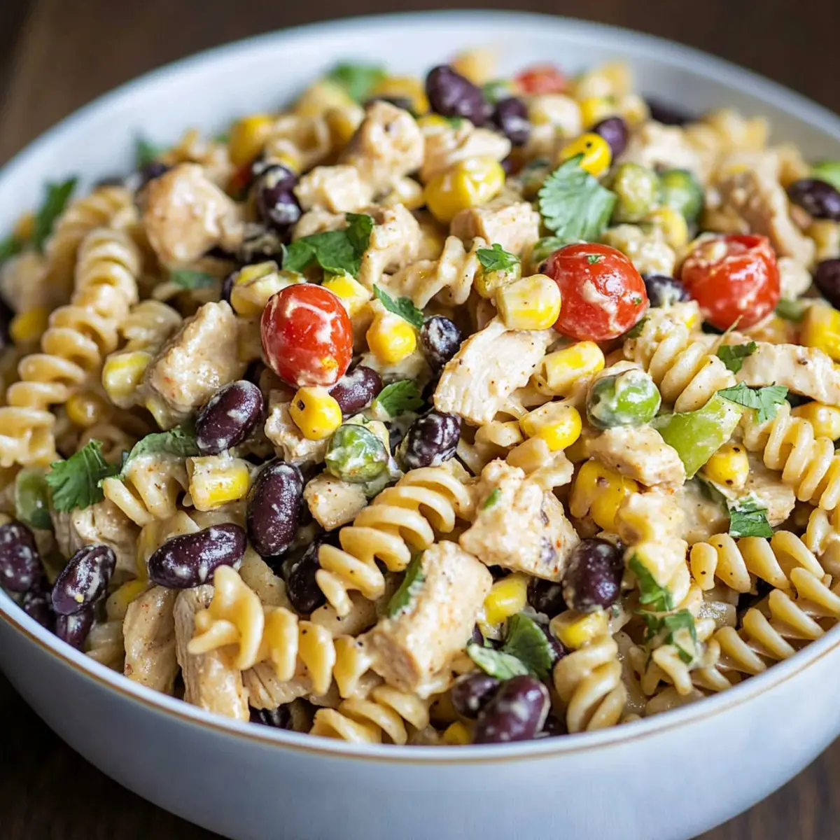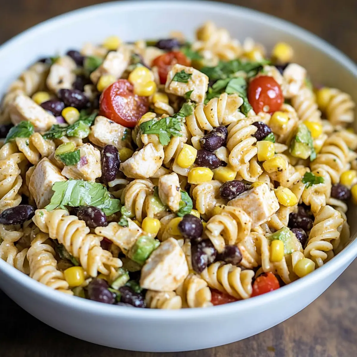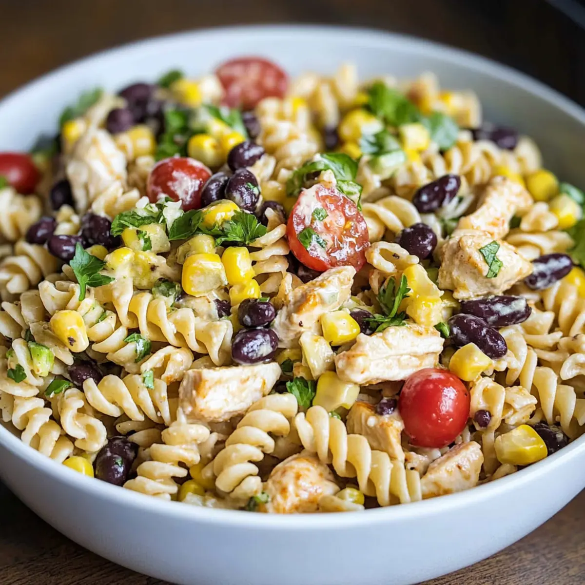 Jump to Recipe Print RecipeAs I stood in my kitchen, surrounded by summer’s bounty and the aroma of grilled chicken, I realized the perfect dish was waiting to be created: a vibrant Southwest Pasta Salad with Chipotle Ranch Dressing. This easy pasta salad brings together colorful vegetables, tender rotini, and zesty flavors that scream summer gatherings and light lunches. Not only is it a breeze to whip up, but it’s also highly customizable—allowing you to add or swap ingredients based on what you love or have on hand. Whether you’re prepping for a potluck or simply craving something fresh, this salad checks all the boxes. Curious about how to bring this delicious dish to life? Let’s dive in! Why is this pasta salad a must-try? Vibrant Flavors: This salad bursts with freshness, bringing together zesty chipotle ranch dressing and colorful veggies that tantalize your taste buds. Easy-to-Make: With just a handful of ingredients, assembling this dish is simple and quick—ideal for busy weeknights or last-minute gatherings. Customizable Delight: Feel free to mix and match ingredients! Use shrimp, tofu, or seasonal veggies to cater to your preferences. Perfect for Any Occasion: Whether it’s a summer barbecue or a light lunch, this salad shines in every setting, making it a hit with friends and family. Make-Ahead Convenience: Prepare it in advance, and let the flavors meld for a taste that gets even better after a few hours in the fridge! Want to pair it with something special? Check out our Smashed Potato Salad for a perfect side. Southwest Pasta Salad Ingredients • Freshness meets flavor in this delightful dish! For the Salad Rotini Pasta – The heart of your salad, providing the perfect base to hold all the delicious ingredients together. Black Beans – Adds protein and fiber, making your salad hearty and satisfying. Rinse and drain before mixing for best results. Corn – Sweet and crunchy, it brightens up your dish. Frozen corn can be a convenient substitute if fresh isn’t available. Bell Pepper – Offers a colorful and crisp bite. Feel free to switch colors or use jicama for a unique crunch! Red Onion – Brings sharpness and depth of flavor. For a milder option, green onions work wonderfully as a substitute. Cherry or Grape Tomatoes – Provides juiciness and acidity; a must for balance. Be sure to halve them for easy mixing. Cilantro – Introduces fragrant freshness that elevates the entire salad. Parsley is a great alternative if you’re not a fan of cilantro. Grilled Chicken – Adds a filling, lean protein. Skip it for a vegetarian twist or swap for tofu for a plant-based option. For the Dressing Chipotle Ranch Dressing – This creamy, spicy dressing ties all the flavors together perfectly. For a milder version, use regular ranch dressing instead. Step‑by‑Step Instructions for Southwest Pasta Salad Step 1: Cook the Pasta Begin by boiling a large pot of salted water over high heat. Add the rotini pasta and cook according to package directions until al dente, about 8–10 minutes. Once cooked, drain the pasta in a colander and rinse it under cold water to stop the cooking process. Ensure the pasta is cool to maintain its perfect texture for your Southwest Pasta Salad. Step 2: Prepare the Beans and Corn While the pasta is cooling, take a can of black beans and a can of corn. Open both cans and pour them into a sieve. Rinse each under cold water to remove excess salt and starch. Allow them to drain thoroughly, so your Southwest Pasta Salad doesn’t become soggy. Set aside while you chop the veggies. Step 3: Chop the Vegetables Grab a cutting board and prepare your fresh vegetables. Dice the bell peppers and red onion, aiming for bite-sized pieces for easy mixing. Halve the cherry or grape tomatoes to enhance their juiciness. Also, chop a handful of cilantro for that fresh flavor. Set all your vegetables aside in a bowl, ready to combine with the pasta. Step 4: Combine the Ingredients In a large mixing bowl, combine the cooled rotini pasta, rinsed black beans, corn, diced bell peppers, red onion, halved tomatoes, and chopped cilantro. If you’re using grilled chicken, add it now too. Gently toss everything together with a spatula or tongs until all the ingredients in your Southwest Pasta Salad are evenly distributed. Step 5: Add the Dressing Pour in the chipotle ranch dressing over the combined salad. Use a spatula to fold the dressing in gently, ensuring every ingredient is coated in that creamy goodness. The salad should gleam slightly and have a beautiful mix of colors. This step brings the vibrant flavors of your Southwest Pasta Salad together beautifully. Step 6: Chill and Serve Cover your Southwest Pasta Salad with plastic wrap or a lid, and place it in the refrigerator. Allow it to chill for at least 1 hour to let the flavors meld together beautifully. This step is crucial for enhancing the taste. When you’re ready to serve, give it a quick stir and adjust the seasoning if necessary before diving in! What to Serve with Southwest Pasta Salad? This vibrant salad is perfect for sparking your culinary creativity and elevating any meal to new heights. Grilled Corn on the Cob: Sweet and smoky, this classic pairing adds a delightful crunch. Serve it alongside for a true summer experience. Classic Coleslaw: With its creamy texture and tangy flavor, coleslaw complements the Southwest Pasta Salad beautifully, providing a refreshing contrast. Watermelon Salad: The sweet juiciness of watermelon, topped with feta and mint, creates a refreshing balance against the zesty pasta enrichments. Tortilla Chips and Guacamole: The crunch of crispy chips paired with creamy guacamole makes for a fun and flavorful appetizer before diving into the salad. Black Bean Tacos: Keep the theme going! These protein-packed tacos are deliciously, spicy and pair wonderfully with the flavors in your pasta salad. Sparkling Lemonade: A fizzy, refreshing drink that mirrors the salad’s brigh