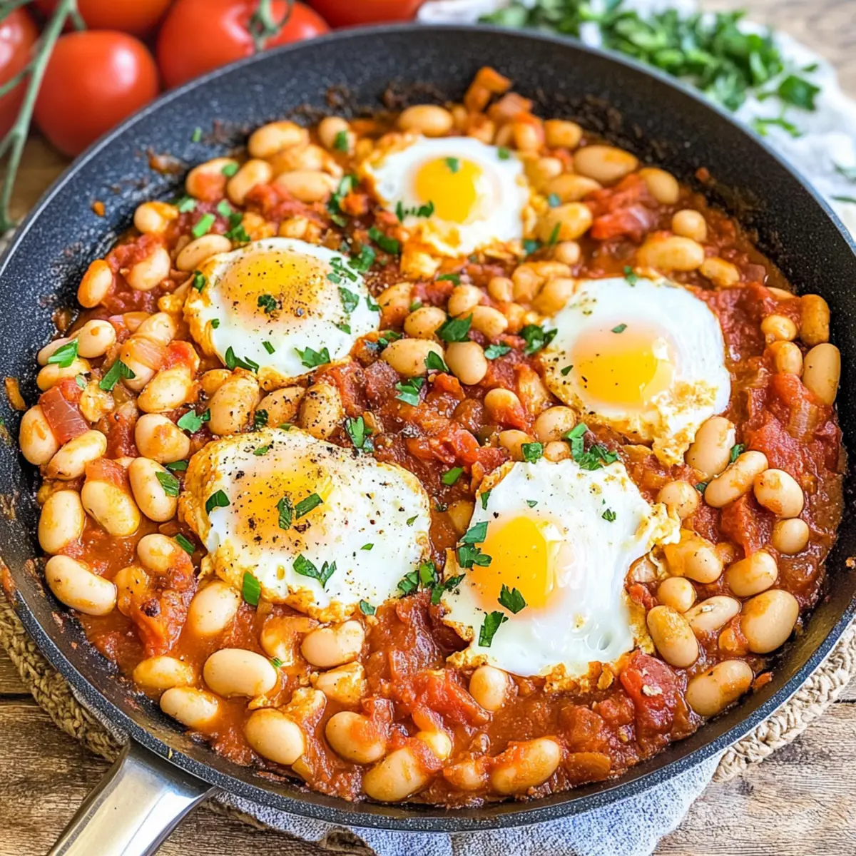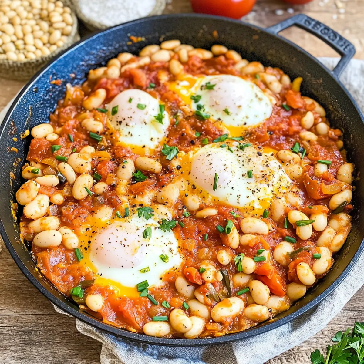 Jump to Recipe Print RecipeAs I flipped through my beloved cookbook, a vibrant photo caught my eye, plunging me right into the heart of Spanish cuisine. Spanish Beans & Eggs is not just a dish; it’s a warm embrace served straight from the skillet, perfect for both hectic weeknights and leisurely brunches. In under 30 minutes, you can whip up this one-pan wonder featuring hearty white beans and silky eggs, all fragrant with the sweetness of smoked paprika. It’s a vegetarian comfort food that promises to delight your taste buds while also keeping your kitchen minimalistic. Whether you’re cooking for yourself or entertaining guests, this recipe ensures satisfaction without the fuss. What’s your go-to twist on a classic dish? Let’s dive into the deliciousness together! Why is Spanish Beans & Eggs a must-try? Quick and Easy: This one-pan dish comes together in just 30 minutes, perfect for busy chefs craving a wholesome meal without the hassle. Comforting and Satisfying: A medley of creamy beans and perfectly cooked eggs creates a fulfilling experience, making it ideal for brunch or dinner. Flavor Explosion: The sweet smoked paprika transforms simple ingredients into a robust dish that will have everyone asking for seconds. Versatile and Customizable: Feel free to swap beans or add veggies for a personalized touch! Looking for more inspiration? Check out our guide on creative veggie swaps. Minimal Cleanup: Cooking and serving in one skillet means less time washing up and more time enjoying your culinary masterpiece! Crowd-Pleasing Appeal: Whether entertaining friends or cooking for family, this dish is sure to impress and satisfy all palates! Spanish Beans & Eggs Ingredients For the Base Extra Virgin Olive Oil – Adds richness and helps in sautéing; substitute with any light cooking oil if unavailable. Canned White Beans – Provide protein and heartiness; can substitute with other canned beans like chickpeas for a twist. Diced Tomatoes (15 oz can) – Contributes moisture and acidity; fresh tomatoes can be used instead, adjusting the quantity to about 2 medium. For the Eggs Cage-free Organic Eggs – Essential for protein and creaminess in the dish; fresh eggs are recommended for the best texture. For the Aromatics Garlic (4 cloves) – Enhances savoriness and aroma; can be substituted with garlic powder (1 tsp) if needed. Onion (1/2) – Adds sweetness and depth; shallots can be used as an alternative for similar results. For the Flavor Sweet Smoked Spanish Paprika (1 tsp) – Provides distinctive flavor and color; essential for authentic Spanish Beans & Eggs. Regular paprika can be substituted for a less intense flavor. Sea Salt & Black Pepper – Essential for seasoning; adjust to taste for the best experience. For the Finish Freshly Chopped Parsley (1 tbsp) – Adds a fresh herbaceous note; can swap with basil or cilantro for a different flair. Freshly Chopped Chives (2 tbsp) – Enhances flavor and adds a mild onion taste; green onions are a suitable substitute. Step‑by‑Step Instructions for Spanish Beans & Eggs Step 1: Rinse and Prepare Begin by rinsing the canned white beans in a colander under cold water, allowing them to drain well. Set the beans aside for later use. While waiting, crack the cage-free organic eggs into individual bowls for easy access and to prevent any shell fragments when adding them to the skillet. Step 2: Chop the Aromatics Slice the garlic cloves thinly and dice half an onion into small pieces. This will help release their flavors as they sauté. Set these aside with your prepared ingredients, ensuring everything is within reach for a smooth cooking process of your Spanish Beans & Eggs. Step 3: Heat the Pan In a medium frying pan, heat two tablespoons of extra virgin olive oil over medium heat. Allow the oil to shimmer, signaling it’s hot enough. Add the sliced garlic and diced onion to the pan, sautéing for about 3 minutes until they turn golden and fragrant, creating a delicious base. Step 4: Add Flavorful Ingredients Stir in 1 teaspoon of sweet smoked Spanish paprika, allowing it to bloom for about 30 seconds. This will enhance the aroma and depth of the dish. Next, pour in the 15 oz can of diced tomatoes along with 1 tablespoon of freshly chopped parsley and the diced chives. Cook for another 2 minutes, letting the flavors meld together. Step 5: Incorporate the Beans Gently mix in the rinsed white beans and season with sea salt and freshly ground black pepper to taste. Allow the mixture to simmer for about 4 to 5 minutes. This step helps the beans absorb the vibrant flavors from the garlic, onion, and tomatoes while heating through perfectly. Step 6: Create Spaces for Eggs Using a spoon, make small pockets in the bean mixture, creating little wells for the eggs. Carefully slide in the cracked eggs from your bowls into these pockets. Lightly season the exposed egg whites with salt and pepper, allowing them to nestle into the delicious Spanish Beans & Eggs. Step 7: Cook and Cover Cover the frying pan with a lid and let it cook for 2 minutes. This will help steam the eggs for a soft and creamy yolk. After 2 minutes, remove the lid and continue cooking for an additional 2 to 4 minutes until the egg whites are set but the yolks still retain a slightly runny texture. Step 8: Serve Your Dish Once cooked to your liking, remove the pan from the heat. Finish by sprinkling some chopped chives over the top for a fresh touch. Serve your beautiful Spanish Beans & Eggs immediately while it’s warm, either on its own or with crusty bread alongside for an delicious brunch or dinner experience. Expert Tips for Spanish Beans & Eggs Egg Cracking: Crack eggs into bowls before adding them to the skillet to prevent shell fragments and ensure intact yolks. Cover to Steam: Always cover the skillet while cooking to create steam, helping cook egg whites evenly without overcooking the creamy yolks. Season Adjustments: Taste and adjust seasoning with salt and pepper 