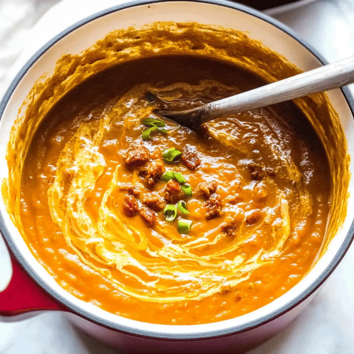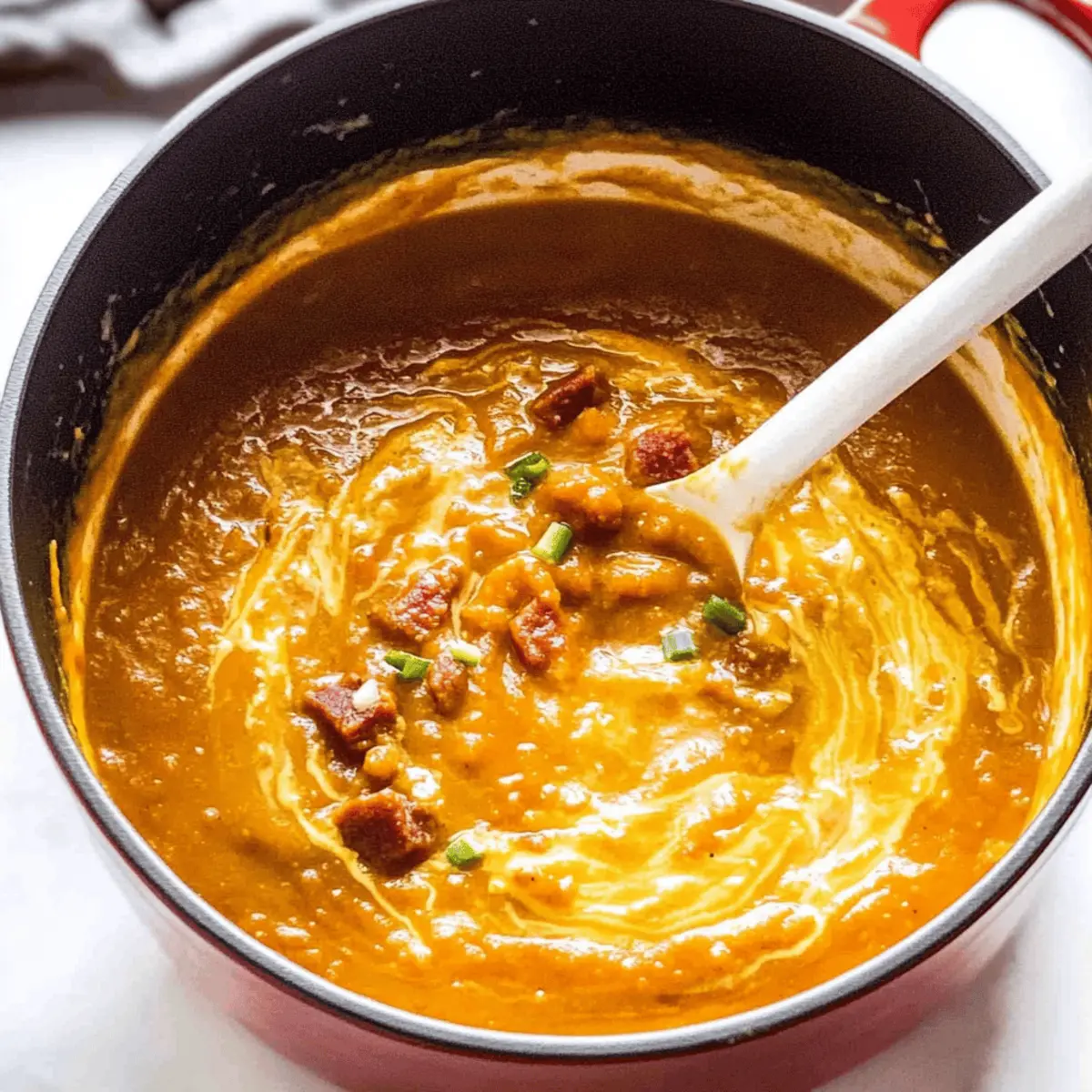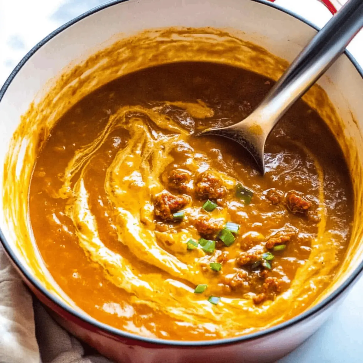 Jump to Recipe Print RecipeThe aroma of spiced pumpkin drifting through my kitchen always sparks a nostalgic warmth, akin to cozy fall afternoons spent watching leaves cascade. Today, I’m excited to share my Spicy Chorizo Pumpkin Soup, a dish that perfectly marries the sweetness of pumpkin with savory chorizo and a kick of smoky chipotle. This recipe shines with its versatility—whether you lean towards pork or prefer a vegetarian twist using tofu chorizo, it’s guaranteed to satisfy. Plus, you can whip this delightful soup up in under 30 minutes, making it not only a comfort food favorite but also a time-saver for busy weeknights. Ready to savor a dish that fills your heart and home with warmth? Let’s dive into the details! Why is This Soup So Irresistible? Bold, Flavorful Ingredients: The rich chorizo combined with the sweet, creamy pumpkin creates a harmony that’s comforting and inviting. Quick and Easy: In just under 30 minutes, you can have a wholesome meal ready to delight your taste buds. Versatile Options: This recipe allows you to experiment with different types of chorizo and broths. Whether it’s a classic pork or a vegetarian tofu version, the choice is yours! Crowd-Pleaser: Ideal for gatherings, this soup will surely impress friends and family, making it a staple at your dinner table. Nutritionally Balanced: Each hearty serving of Spicy Chorizo Pumpkin Soup is not only delightful but also low in calories, perfect for a satisfying yet guilt-free meal. Spicy Chorizo Pumpkin Soup Ingredients • Perfectly balanced and comforting! For the Soup Chorizo – Provides rich flavor and protein; substitute with tofu chorizo for a vegetarian option. Onion – Adds sweetness and depth to the flavor; yellow or white onions work best. Garlic – Infuses aromatic qualities; opt for fresh garlic over powdered for the best results. Cumin – Offers earthy notes that complement the spices; adjust to taste based on your spice preference. Salt – Enhances all flavors in the dish; sea salt gives a refined taste. Black Pepper – Adds a touch of heat; freshly ground is recommended for maximum flavor. Broth (Chicken or Beef) – Acts as the soup’s enriching base liquid; vegetable broth is perfect for a vegetarian version. Chipotle Peppers – Introduces smokiness and spice; vary the quantity to suit your heat preference. Pumpkin Puree (canned or homemade) – Provides a creamy texture and sweet flavor; ensure it’s pure pumpkin puree, not pie filling. Cream – Adds richness and a smooth texture; substitute with coconut cream for a non-dairy option. For Serving Roasted Pumpkin Seeds – Adds crunchy texture on top; sprinkle them over each bowl for extra flair. Crusty Bread – Complements the soup beautifully; perfect for dipping and soaking up those rich flavors. Step‑by‑Step Instructions for Spicy Chorizo Pumpkin Soup Step 1: Cook the Chorizo In a heavy-bottom pot over medium heat, add your chorizo and allow it to cook for approximately 5 minutes, stirring occasionally. As it cooks, the chorizo will release its flavorful oils; look for it to start to brown slightly and become crispy. Once ready, drain any excess fat from the pot to avoid creating a greasy soup. Step 2: Sauté the Aromatics Add chopped onions to the pot and sauté until they become translucent and fragrant, about 4 minutes. Stir frequently to prevent sticking. Next, incorporate the drained chorizo back into the pot along with minced garlic and chopped chipotle peppers. Sauté for an additional 2 minutes to awaken the flavors. Step 3: Combine Broth and Pumpkin Pour in your choice of broth—chicken, beef, or vegetable—along with the pumpkin puree. Stir well to combine all ingredients while ensuring the mixture is smooth. Sprinkle in cumin, salt, and black pepper, adjusting to taste. Bring the soup to a gentle simmer, allowing it to cook for 10 minutes without boiling; you want the flavors to meld together beautifully. Step 4: Finish with Cream After simmering, reduce the heat to low and stir in the cream until fully incorporated. This step adds a luscious richness to your Spicy Chorizo Pumpkin Soup. Allow it to heat through for about 2 minutes but do not let it boil. Keep an eye on the color; it should take on a creamy orange hue. Step 5: Serve and Garnish Ladle the warm soup into serving bowls. For an extra touch, garnish each bowl with additional cooked chorizo and a sprinkle of chopped green onions. This adds a nice visual contrast and a bit of fresh flavor, completing your comforting dish perfectly. Make Ahead Options These Spicy Chorizo Pumpkin Soup components are perfect for meal prep enthusiasts! You can cook the chorizo and sauté the onions up to 24 hours in advance, storing them in airtight containers in the refrigerator to maintain their delicious flavors. Additionally, you can combine the broth, pumpkin puree, and spices together and refrigerate that mixture for up to 3 days. To finish, simply reheat the chorizo and onion mixture on the stove, add the broth and pumpkin mix, and stir in the cream until heated through. This method not only saves time but ensures you still enjoy that comforting, creamy taste without extra effort on busy weeknights! What to Serve with Spicy Chorizo Pumpkin Soup There’s nothing quite like a cozy meal that brings warmth and comfort on a fall evening. Crusty Bread: Perfect for dipping and soaking up the rich flavors of the soup. A warm baguette or sourdough adds a satisfying crunch with each bite. Roasted Pumpkin Seeds: Their delightful crunch and nutty flavor elevate your soup’s textures. Sprinkle them on top for added visual appeal and a boost of nutrition. Green Salad: A refreshing side filled with mixed greens, bright vegetables, and a zesty vinaigrette balances the creaminess of the soup. The crisp textures and fresh flavors provide a delightful contrast. Spicy Cornbread: Serve with warm, buttery cornbread for a comforting addition. The sweetness of the cornbread pa