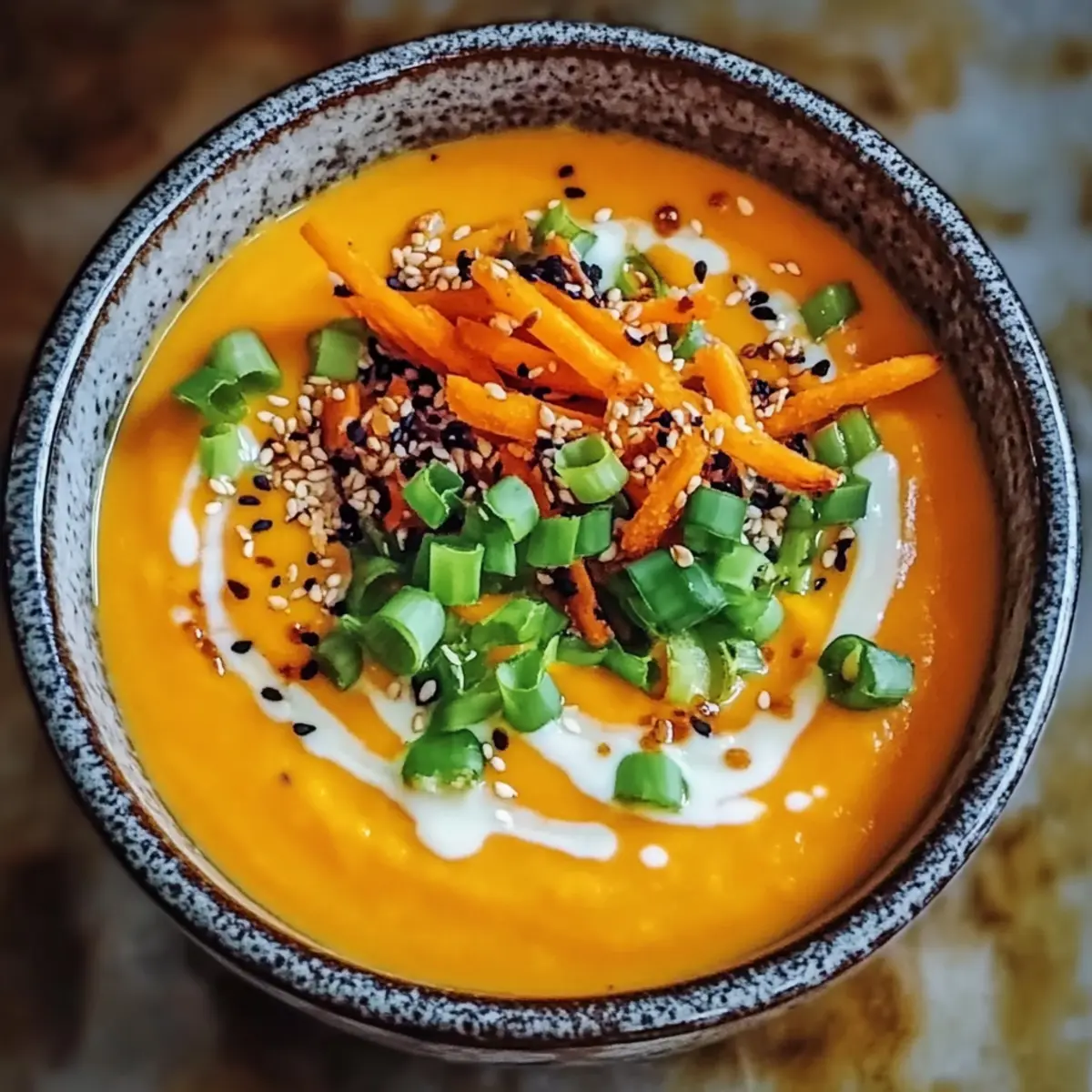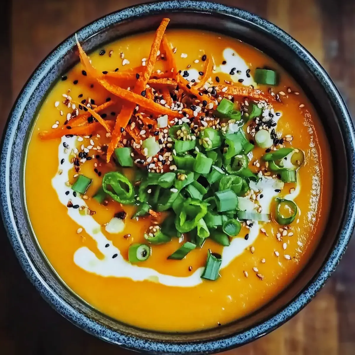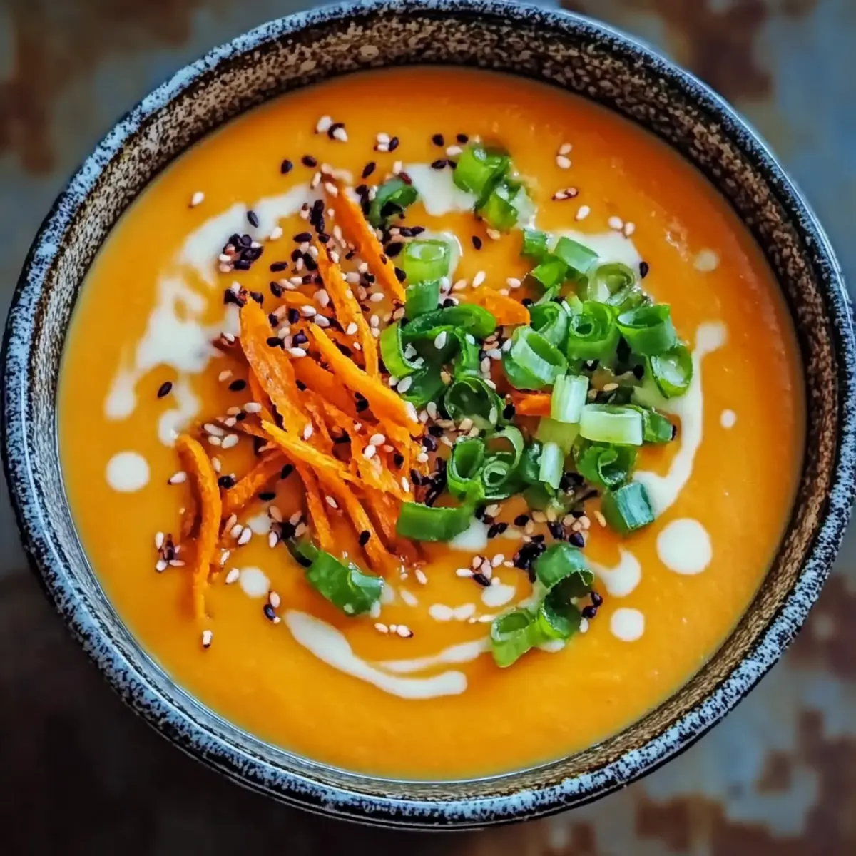Delight in a nourishing bowl of Spicy Miso Carrot Soup, combining sweet roasted carrots with savory miso for a cozy vegan experience.