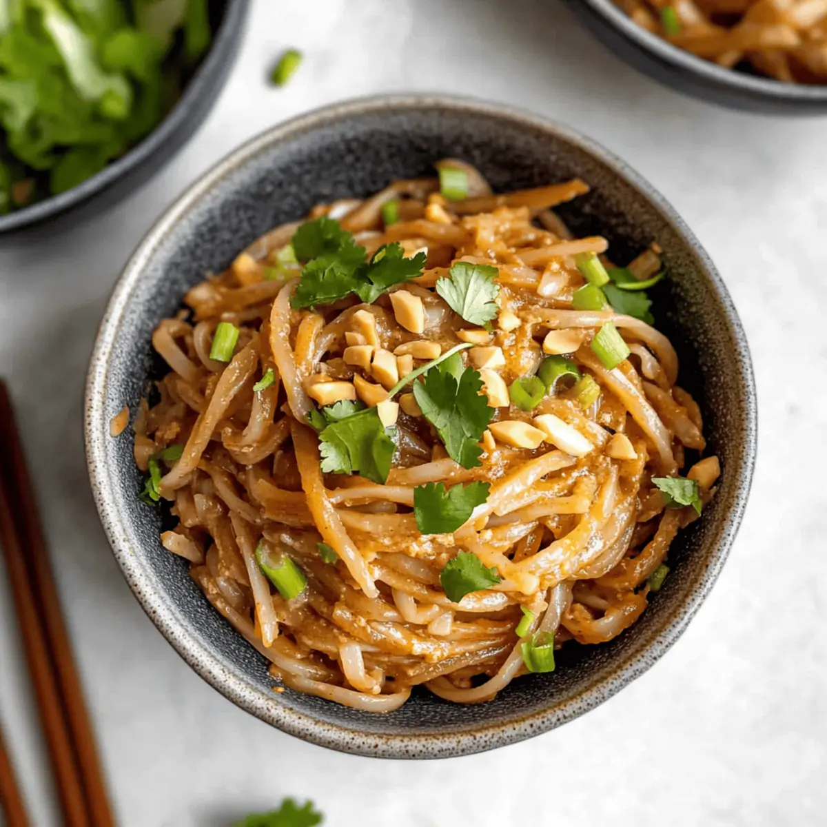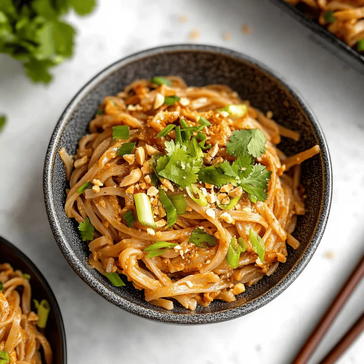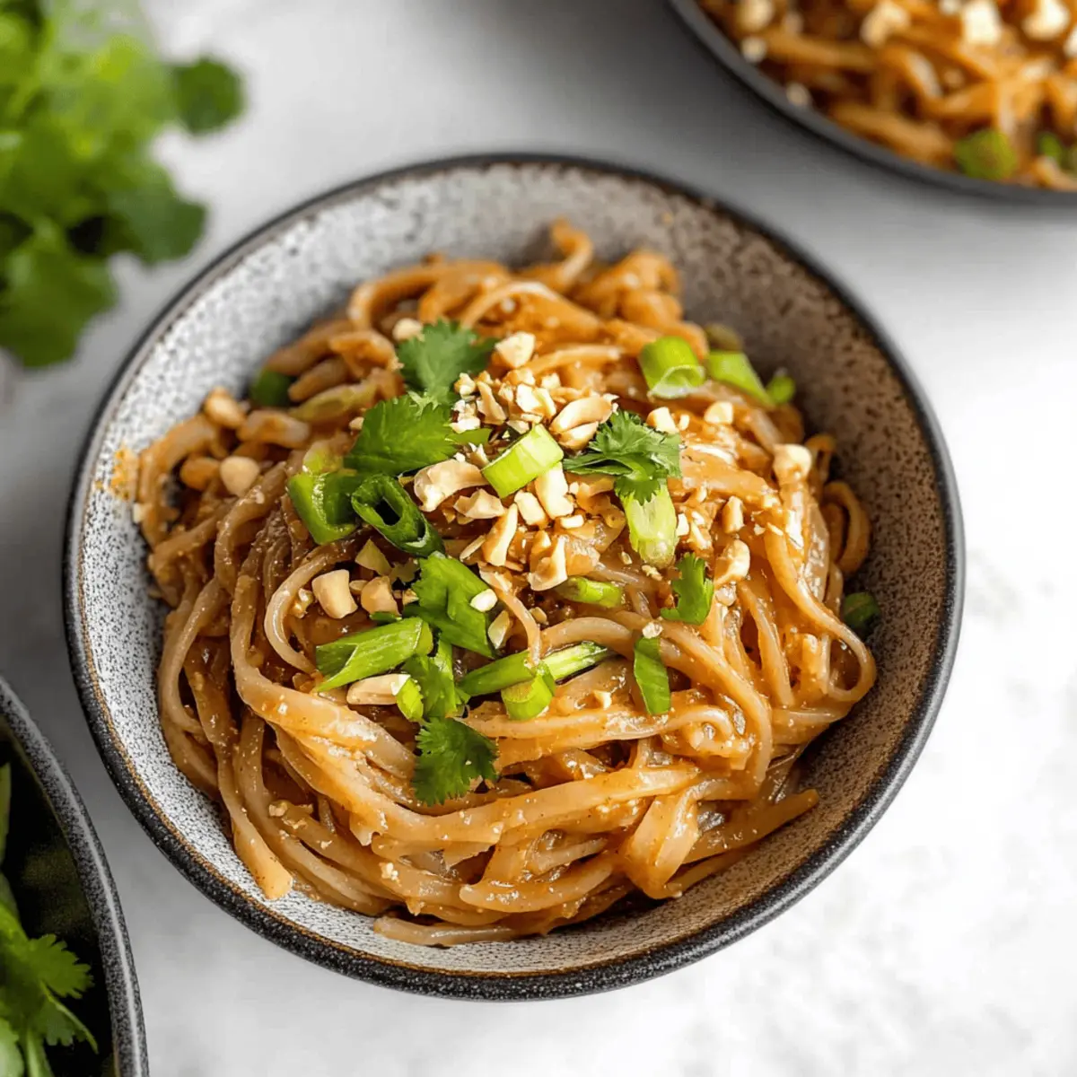 Jump to Recipe Print RecipeAs I tossed the vibrant, twirling noodles in that irresistible sauce, I could feel the warmth radiating through my kitchen. These Quick Vegan Spicy Peanut Butter Noodles are the ultimate answer for those nights when you crave something comforting yet adventurous. Ready in just 20 minutes, this dish dances between sweet and spicy, making it a go-to for busy weeknights. Not only are they vegan and gluten-free, but they’re also incredibly versatile—feel free to customize with chicken, tofu, or extra veggies. Imagine a delightful bowl of noodles enveloped in creamy goodness, versatile enough to satisfy every palate. Are you ready to whip up this easy crowd-pleaser? What Makes These Noodles Irresistible? Quick preparation: These spicy peanut butter noodles are ready in just 20 minutes, perfect for busy cooks. Flavor explosion: The combination of creamy peanut butter, zesty ginger, and tangy vinegar creates an unforgettable taste. Vegan & gluten-free: Ideal for those with dietary restrictions, making them a hit at any gathering. Endless variations: Add chicken, tofu, or sautéed veggies for a personalized twist that suits everyone. Comfort food at its finest: These noodles promise warmth and satisfaction, making any meal a special occasion. Spicy Peanut Butter Noodles Ingredients For the Noodles • Brown Rice Noodles – A gluten-free alternative that offers a satisfying chewiness. For the Sauce • Garlic – Adds a robust flavor; can easily be substituted with garlic powder if needed. • Fresh Grated Ginger – Provides essential warmth and spice; use ground ginger in smaller amounts as a substitute. • Oil (Olive/Coconut/Avocado) – Perfect for sautéing garlic; opt for any neutral oil to enhance flavor. • Creamy Peanut Butter (Unsalted) – The star ingredient that delivers creaminess and protein; almond butter is a good nut-free option. • Low Sodium Tamari/Soy Sauce – Ensures balanced saltiness without overpowering the dish; low-sodium varieties make it heart-friendly. • Hot Water – Helps blend the peanut butter smoothly into the sauce. • Rice Vinegar – Introduces acidity to balance flavors; white vinegar works too if you’re out of rice vinegar. • Toasted Sesame Oil – An optional addition for that authentic nutty flavor which takes the dish up a notch. • Sriracha – Adds the heat that can be adjusted based on your spice tolerance. • Maple Syrup or Honey – Sweetens the dish; choose maple syrup for a strictly vegan option. • Red Pepper Flakes – Sprinkle for extra heat; this is optional depending on your preference. • Chili Garlic Sauce – Enhance the spiciness and depth of flavor with this optional addition. This collection of ingredients is the foundation for your spicy peanut butter noodles, allowing you to create a satisfying and delightful dish in no time! Step‑by‑Step Instructions for Spicy Peanut Butter Noodles Step 1: Cook Noodles Begin by bringing a large pot of water to a boil over high heat. Add the brown rice noodles and cook according to the package instructions, typically around 6–8 minutes until tender but still slightly firm. Once done, drain the noodles in a colander, and optionally rinse them with cold water to prevent sticking before setting them aside. Step 2: Sauté Garlic In a medium skillet, heat 1 tablespoon of your chosen oil (like olive or coconut) over low heat. Add 2 minced garlic cloves and sauté gently for 2-3 minutes, stirring frequently until the garlic is golden and fragrant. This step infuses the oil with aromatic flavor while preventing the garlic from burning, which is crucial for that delightful base in your spicy peanut butter noodles. Step 3: Make Sauce To the pan with sautéed garlic, add 1 tablespoon of fresh grated ginger and stir for about 30 seconds to release its warmth. Then, mix in the creamy peanut butter, low sodium tamari, a splash of rice vinegar, hot water, and a drizzle of toasted sesame oil. Whisk together until the mixture becomes smooth and creamy, adjusting the consistency with more hot water if needed to ensure a luscious sauce. Step 4: Combine Noodles and Sauce Now, gently fold the drained noodles into the skillet containing the sauce. Using tongs or a fork, toss the noodles with about half of the peanut sauce until they are fully coated. The heat will help meld the flavors, creating that comforting hug of creamy goodness. Reserve the remaining sauce on the side for serving or adding more flavor later. Step 5: Serve Carefully portion the spicy peanut butter noodles into bowls and garnish with your choice of toppings, like chopped cilantro, sliced scallions, or a sprinkle of red pepper flakes for extra heat. Enjoy these vibrant noodles warm, allowing the creamy peanut sauce to shine alongside a side of steamed broccoli or your favorite protein for a complete meal. Expert Tips for Spicy Peanut Butter Noodles Use Unsalted Peanut Butter: This will help maintain balance in flavors and control the saltiness in your spicy peanut butter noodles. Don’t Skip Rinsing: Rinse your noodles after boiling to prevent them from clumping together, ensuring a perfect texture in your dish. Adjust Spice to Taste: Start with a smaller amount of sriracha and red pepper flakes, adding more as needed to match your spice tolerance. Store Sauce Separately: If you make ahead, store the sauce separately to prevent the noodles from soaking up too much moisture during storage. Experiment with Veggies: Feel free to add a rainbow of sautéed vegetables like bell peppers and carrots for added nutrition and color in your spicy peanut butter noodles. How to Store and Freeze Spicy Peanut Butter Noodles Fridge: Store in an airtight container for up to 5 days. If the sauce thickens, reheat with a splash of water or broth to restore creaminess. Freezer: You can freeze the noodles and sauce separately for up to 3 months. Just be aware that the texture of the noodles may change slightly upon thawing
