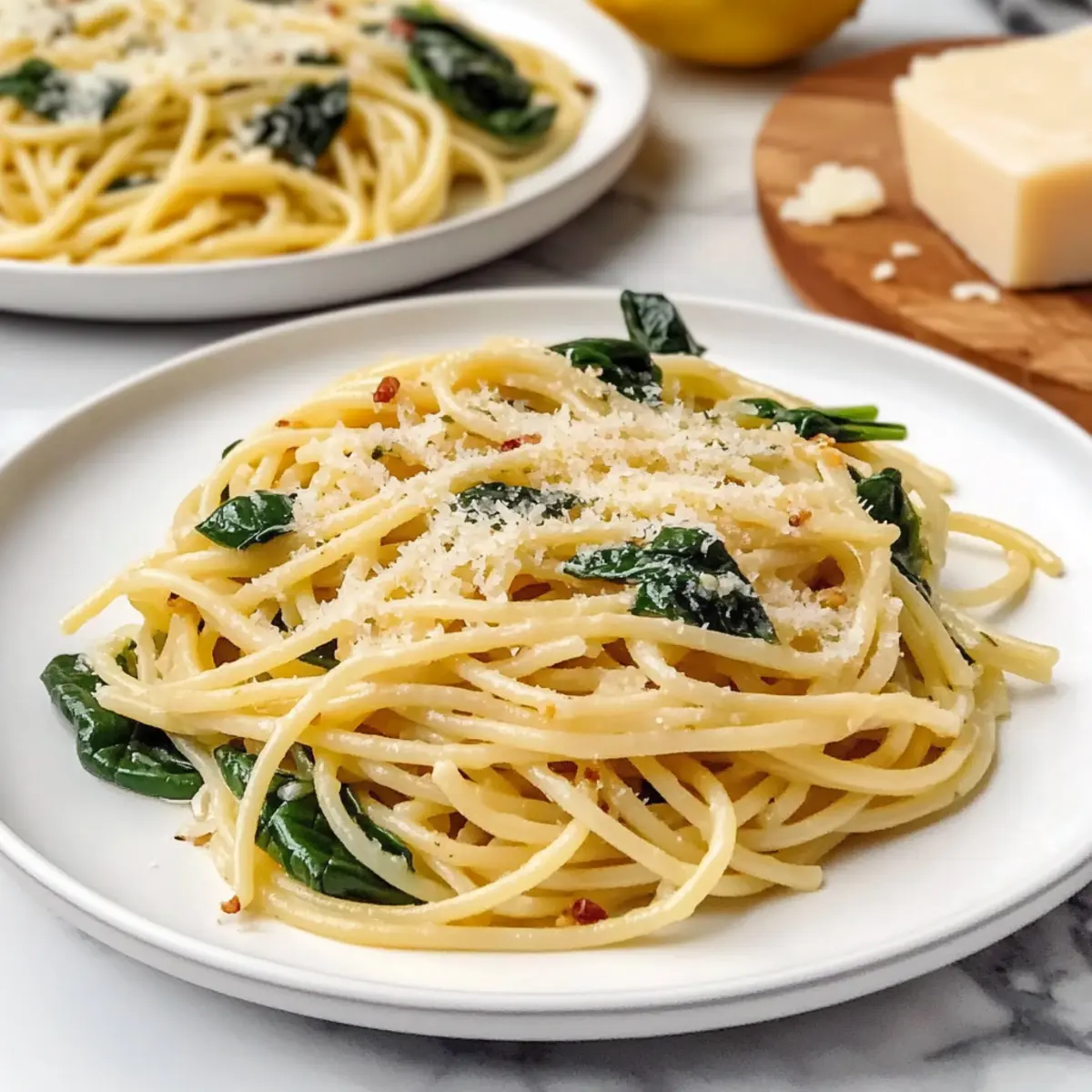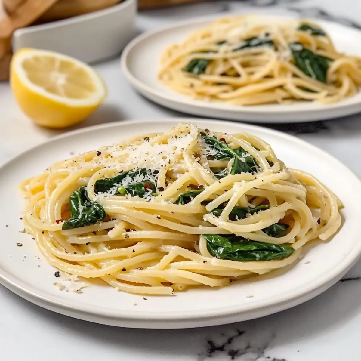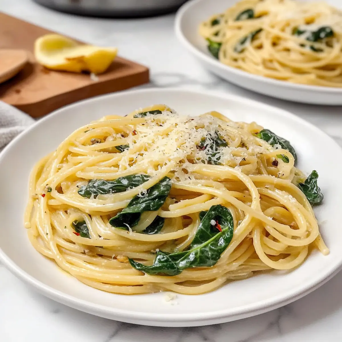 Jump to Recipe Print RecipeWhispers of fresh lemon zest drift through the kitchen as I toss together this vibrant Spinach Lemon Pasta, a dish that’s become my go-to for busy weeknights. The beauty of this quick, 20-minute meal lies not only in its stunning flavors but also in its family-friendly appeal. Perfectly al dente spaghetti meets tender baby spinach in a light garlic butter sauce, making it comfort food without the guilt. And with endless options for customization, from adding grilled chicken to swapping butter for olive oil, this recipe caters to all kinds of eaters. Curious how such a simple dish can bring everyone to the table? Let’s dive in! Why is Spinach Lemon Pasta a Must-Try? Simplicity is Key: In just 20 minutes, you can whip up a delicious meal that delights everyone at the table! Fresh Ingredients: The bright lemon and spinach elevate the dish, making it both refreshing and nutritious. Customizable Options: Whether you want to add protein like grilled chicken or keep it vegetarian, this recipe adapts effortlessly to your preferences. Perfect for Busy Nights: Effortless to prepare, it fits into your hectic schedule without sacrificing flavor. No wonder it’s becoming a family favorite alongside other quick dishes like Deviled Egg Pasta and Tomato Pasta One! Spinach Lemon Pasta Ingredients For the Pasta • Spaghetti – This is the perfect base, but feel free to use your favorite long noodle. • Salt – Add salt to your pasta water for enhanced flavor and to help the spaghetti absorb the taste. For the Sauce • Unsalted Butter – Adds a rich, creamy flavor; substitute with olive oil for a lighter option. • Garlic (3 cloves) – Use freshly minced for the best aromatic depth and flavor in your Spinach Lemon Pasta. • Red Pepper Flakes (¼ teaspoon) – A pinch gives a subtle heat; adjust according to your spice preference. • Lemon (1) – Freshly squeezed juice and zest brighten the dish; avoid under-ripened lemons for the best flavor. For the Greens • Baby Spinach (2 cups) – Packed with nutrients and freshness; both fresh or thawed frozen spinach work beautifully. For Finishing Touch • Parmesan Cheese (½ cup) – Adds a delightful creaminess and umami; use freshly grated or vegan cheese for a non-dairy alternative. • Black Pepper (¼ teaspoon) – A classic seasoning to add warmth; adjust according to taste. Feel free to customize this vibrant Spinach Lemon Pasta with additional ingredients or variations as you please! Step‑by‑Step Instructions for Spinach Lemon Pasta Step 1: Boil the Pasta Bring a large pot of salted water to a rolling boil over high heat. Carefully add the spaghetti and cook for 9-10 minutes or until al dente, stirring occasionally. Once cooked, reserve 1 cup of pasta water before draining the spaghetti in a colander. Do not rinse, as this helps retain the starch necessary for the sauce to cling beautifully to the noodles. Step 2: Prepare the Garlic Butter In a large skillet, melt 4 tablespoons of unsalted butter over medium heat. Once melted, add 3 minced garlic cloves and ¼ teaspoon of red pepper flakes, sautéing for about 30 seconds until fragrant. Stir continuously to prevent burning and enjoy the enticing aroma as it fills your kitchen, setting the stage for your vibrant Spinach Lemon Pasta. Step 3: Add Lemon and Pasta Water Pour in the juice of one fresh lemon along with your reserved pasta water into the skillet, bringing the mixture to a gentle bubble. Stir well for about 1-2 minutes, allowing the flavors to combine. The sauce should now look slightly thickened and glossy, ready to coat your pasta with a zesty brightness. Step 4: Combine the Pasta and Spinach Add the drained spaghetti and 2 cups of baby spinach directly into the skillet. Toss everything together using tongs for 2-3 minutes until the spinach wilts and the spaghetti is well-coated in the lemony garlic butter sauce. The vibrant colors and intoxicating smells will surely make your mouth water as everything melds together. Step 5: Finish with Cheese and Seasoning Remove the skillet from the heat and incorporate the zest of one lemon, ½ cup of freshly grated Parmesan cheese, ½ teaspoon of salt, and ¼ teaspoon of black pepper. Toss the pasta mixture gently to combine and melt the cheese into the dish. The Spinach Lemon Pasta should now be creamy and rich, displaying its beautiful textures and colors. Step 6: Serve and Enjoy Transfer your Spinach Lemon Pasta to serving plates or a large bowl. Optionally, garnish with additional lemon zest and Parmesan cheese for extra flair. Serve immediately, enjoying the delightful combination of flavors while the pasta is still warm. This dish promises to be a hit on your weeknight dinner table! How to Store and Freeze Spinach Lemon Pasta Fridge: Store leftover Spinach Lemon Pasta in an airtight container for up to 4 days. Reheat gently on the stove, adding a splash of water or broth to restore the creaminess. Freezer: You can freeze Spinach Lemon Pasta for up to 3 months. Make sure to cool it completely before transferring to a freezer-safe container or bag. Thaw overnight in the fridge before reheating. Reheating: For best results, reheat on the stovetop over low heat, adding a touch of olive oil or butter to help restore flavors and moisture. Airtight Tips: Always ensure your pasta is cool before sealing in containers to prevent moisture buildup, which can lead to sogginess. Make Ahead Options These Spinach Lemon Pasta preparations are a real time-saver for busy weeknights! You can chop the garlic (3 cloves) and zest the lemon (1) up to 24 hours in advance, storing them in separate containers in the refrigerator to maintain their flavor and freshness. Additionally, you can wash and dry the baby spinach (2 cups) ahead of time, keeping it in a sealed bag or container for up to 3 days. When you’re ready to enjoy your meal, simply cook the spaghetti (9-10 minutes), then proceed with the sautéing steps as outlined. 