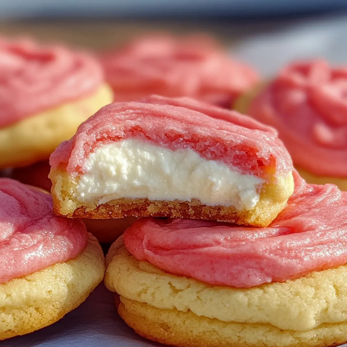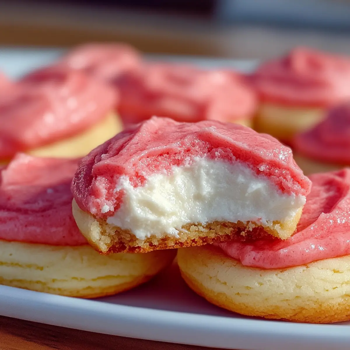 Jump to Recipe Print RecipeThe aroma of freshly baked cookies wafted through my kitchen, instantly transporting me to joyful childhood memories of summer picnics. Today, I’m thrilled to share a delightful twist on a beloved classic: Strawberry Cheesecake Cookies. These vibrant treats marry the comforting softness of traditional sugar cookies with a luscious, creamy cheesecake center, making them perfect for gatherings or a cozy night in. Not only are they a visual feast, but their quick prep time ensures you won’t be stuck in the kitchen for hours. With fresh strawberries shining through, these cookies offer a guilt-free indulgence that feels just a tad healthier, without sacrificing taste. Are you ready to dive into this magical blend of flavors? Let’s get baking! Why are Strawberry Cheesecake Cookies irresistible? Irresistible Flavor: These cookies delight with a perfect blend of creamy cheesecake and fruity strawberry flavors that create a taste sensation in every bite. Quick Preparation: With simple steps, you’ll have these cookies ready in no time, making baking easy and fun for everyone! Guilt-Free Treat: Enjoy a lighter twist on traditional desserts, utilizing fresh ingredients to satisfy your sweet cravings without the heaviness. Eye-Catching Presentation: The vibrant colors and sparkling sugar exterior make these cookies a stunning addition to any dessert table, sure to impress guests. Pair them with other delightful options like Strawberry Cheesecake Sandwiches or Blueberry Crisp Cheesecake to complement your cookie platter! Strawberry Cheesecake Cookies Ingredients For the Cookie Dough • Butter, softened – 1 cup, ensures a rich and moist base for your cookies. • Brown sugar, packed – ¼ cup, adds depth in flavor; feel free to substitute with extra granulated sugar if needed. • Granulated sugar – 1 cup, sweetens the cookies and aids in spreading. • Egg – 1 large, at room temperature, helps bind the dough for a tender texture. • Vanilla extract – 2 teaspoons, enhances the overall flavor of the cookies, but use pure for the best result. • Strawberry extract – ½ teaspoon, imprints a delightful strawberry taste; stick to the recommended amount for balance. • Red or pink food coloring (optional) – 1 teaspoon, adds a vibrant hue without altering the flavor. • All-purpose flour – 2½ cups, provides the cookies’ structure; add a bit more if the dough feels sticky. • Baking soda – 1 teaspoon, serves as a leavening agent for that light texture. • Baking powder – ½ teaspoon, supports the dough rise, working alongside baking soda. • Salt – ¼ teaspoon, brightens the flavors; skip it if using salted butter. For the Cream Cheese Filling • Cream cheese, softened – 1 cup, forms the creamy, dreamy center of the cookies; full-fat is best for stability. • Powdered sugar – ⅔ cup, sweetens the filling delightfully. • Vanilla extract – 1 teaspoon, enhances the flavor of the cream cheese mixture. For the Topping • Granulated sugar – about 1 cup, perfect for rolling to create a sparkling touch on your cookies. These Strawberry Cheesecake Cookies are not only a beautiful treat to behold, but they also deliver on flavor and texture, making them the ideal dessert any time of year! Step‑by‑Step Instructions for Strawberry Cheesecake Cookies Step 1: Prepare Cheesecake Filling In a medium bowl, beat together the softened cream cheese, powdered sugar, and vanilla extract using a hand mixer until smooth and creamy, about 2-3 minutes. Then, drop dollops of the filling (1-2 teaspoons each) onto a parchment-lined baking tray. Place the tray in the freezer for 30-60 minutes, allowing the filling to firm up so that it won’t leak during baking. Step 2: Cream Butter and Sugars In the bowl of a stand mixer, combine 1 cup of softened butter with ¼ cup of packed brown sugar and 1 cup of granulated sugar. Beat on medium speed for approximately 3 minutes until the mixture is light and fluffy, creating a delightful base for your Strawberry Cheesecake Cookies. Scrape down the sides of the bowl as needed to ensure even mixing. Step 3: Add Wet Ingredients Once the butter and sugars are well combined, add in 1 large room-temperature egg, 2 teaspoons of vanilla extract, ½ teaspoon of strawberry extract, and 1 teaspoon of optional red or pink food coloring for a vibrant hue. Mix on low speed until fully combined and the dough has a beautiful strawberry color, ensuring all ingredients blend harmoniously. Step 4: Add Dry Ingredients Gradually incorporate 2½ cups of all-purpose flour, 1 teaspoon of baking soda, ½ teaspoon of baking powder, and ¼ teaspoon of salt into the wet mixture. Mix on low speed until the dough is just combined and sufficiently thick but manageable. If the dough feels too sticky, add a bit more flour until you achieve a workable consistency. Step 5: Stuff Cookies Take about 2 tablespoons of the cookie dough and flatten it in your palm. Place a frozen cheesecake dollop in the center and wrap the dough around it, sealing it completely. Once sealed, roll the cookie into a smooth ball and gently roll it in granulated sugar for a sparkling finish. Repeat with remaining dough and filling. Step 6: Bake Preheat your oven to 350°F (175°C). Line a baking sheet with parchment paper and arrange the sugar-coated cookie balls, allowing some space in between. Bake for 10-12 minutes until the edges are set and slightly golden, while the centers remain soft and chewy. Allow the baked Strawberry Cheesecake Cookies to cool completely on the sheet to firm up the cheesecake filling. What to Serve with Strawberry Cheesecake Cookies Create the perfect dessert spread to accompany your delightful cookies and elevate your sweet experience! Fresh Fruit Medley: A colorful assortment of strawberries, blueberries, and raspberries provides a refreshing contrast to the cookies’ rich flavors. Garnish with mint leaves for added freshness. Vanilla Ice Crea