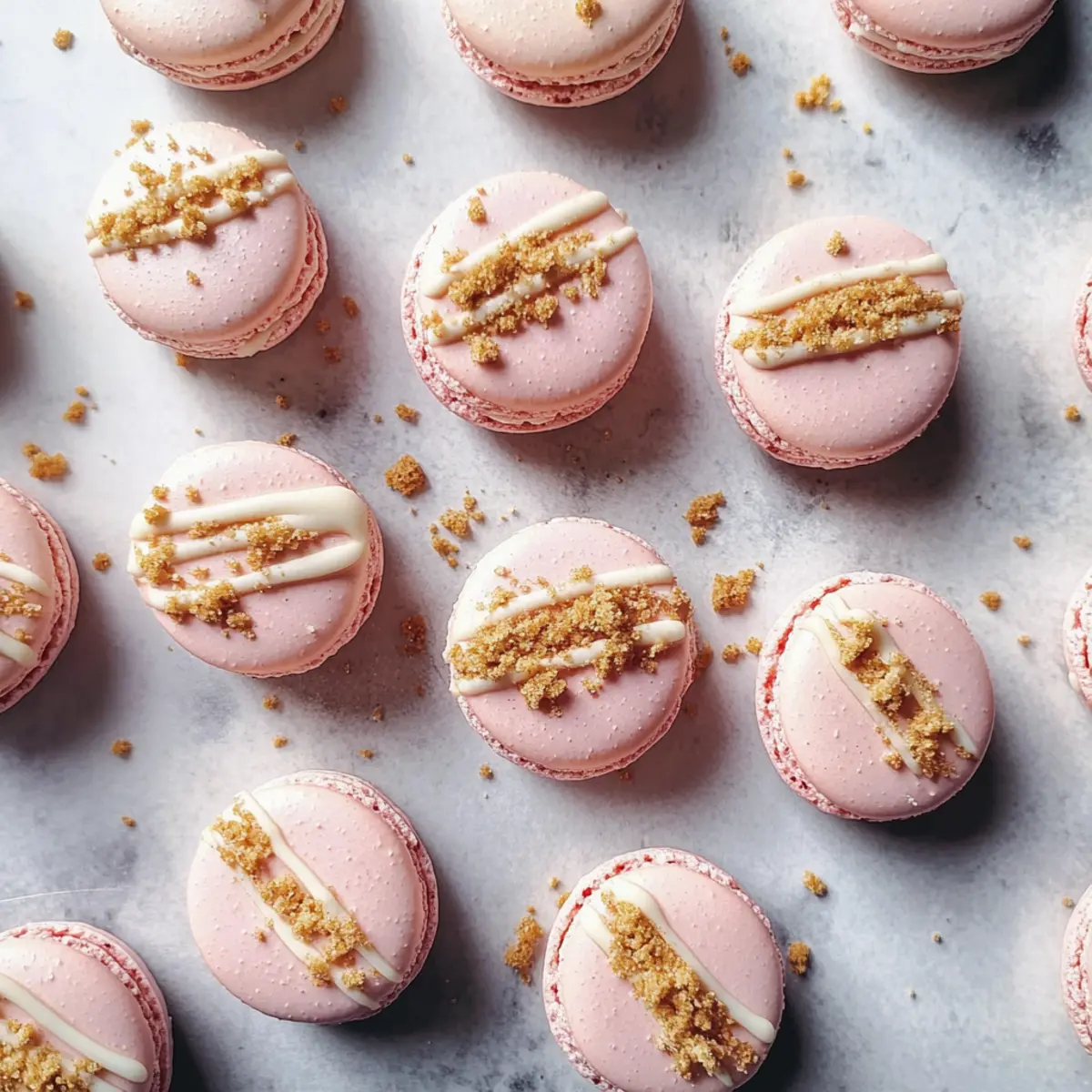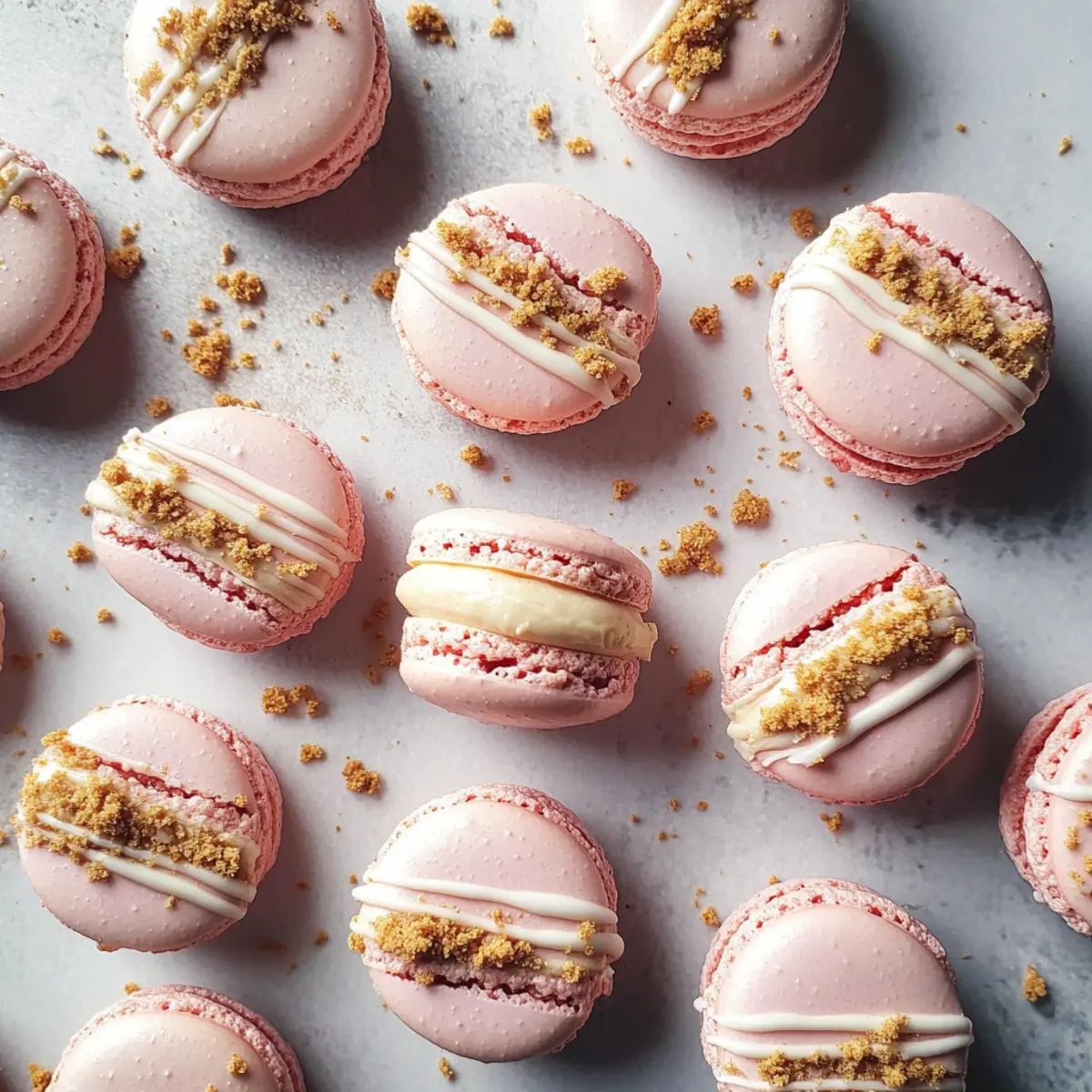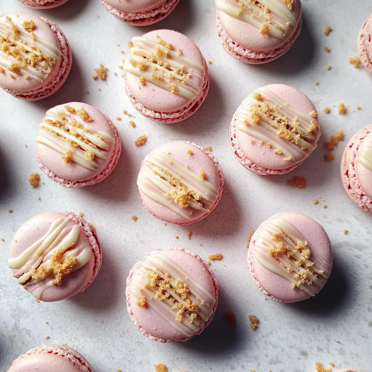 Jump to Recipe Print RecipeAs I stood in my kitchen, surrounded by a waterfall of vivid pink ingredients, I couldn’t help but feel an electrifying surge of excitement. Today, I’m whipping up Strawberry Cheesecake Macarons—a dessert that manages to elevate any occasion with its playfully sophisticated charm. These delightful treats effortlessly fuse the tangy goodness of cream cheese frosting with the sweetness of homemade strawberry jam, making them a brilliant choice for anyone looking to impress without spending all day in the kitchen. Plus, they’re gluten-free, thanks to the almond flour—so everyone can enjoy! With each bite, you’ll experience a delightful chewy texture paired with the creamy filling, reminiscent of a classic strawberry cheesecake. Curious about how to get started on this delightful adventure? Let’s dive into the magic of macarons together! Why Are Strawberry Cheesecake Macarons Special? Deliciously Unique: These macarons combine classic cheesecake flavors with a delightful twist, making each bite a delightful surprise. Gluten-Free Goodness: Thanks to the almond flour, everyone can join in on the fun without compromising taste or texture. Crowd-Pleasing Appeal: Perfectly elegant for tea parties or special occasions, they’re sure to impress guests of all ages. Time-Saving Approach: Quick to prepare, these macarons allow you to whip up a stunning dessert without spending hours in the kitchen. Versatile Flavor Options: Feel free to experiment with different fruits or flavored extracts for a fun variation on the classic. If you’re a fan of fruity desserts, you might also love Strawberry Cheesecake Sandwiches or indulge in Blueberry Crisp Cheesecake for a similar sweet experience! Strawberry Cheesecake Macarons Ingredients For the Macaron Shells • Super-fine Almond Flour – Essential for creating the signature macaron texture, keeping them gluten-free. • Powdered Sugar – Adds smooth sweetness to the shells, ensuring a delicate bite. • Egg Whites (Aged for 24 hrs) – Crucial for a stable and fluffy meringue; room temperature eggs are best for results. • Granulated Sugar – Helps achieve stiff peaks in meringue, aiding the overall structure of the macarons. • Pink Gel Food Coloring – A touch of color to give your shells a beautiful pink hue; use sparingly for the right intensity. For the Strawberry Jam Filling • Frozen Strawberries – The main ingredient for a fruity jam; fresh strawberries can also work with a little added water. • Granulated Sugar (for Jam) – Sweetens the jam, adjust based on the natural sweetness of your strawberries. For the Cream Cheese Filling • Cream Cheese – Provides the rich, creamy filling; must be softened for easy mixing. • Powdered Sugar (for Filling) – Stabilizes and sweetens the cream cheese for that cheesecake-like taste. • Vanilla Extract – Enhances the overall flavor of the cream cheese filling, making it irresistible. For the Decoration • White Chocolate – Drizzled on top for added sweetness and an elegant finish. • Honey Graham Cracker – Crushed for topping; adds a delightful crunch that complements the cheesecake flavors perfectly. Dive into the joy of creating these Strawberry Cheesecake Macarons, and watch them wow your guests! Step‑by‑Step Instructions for Strawberry Cheesecake Macarons Step 1: Prepare Baking Sheets Begin by preheating your oven to 290°F (143°C). Line two baking sheets with parchment paper, ensuring they are smooth and flat. This will prevent the macaron shells from sticking and allow for even baking. Having everything set up ahead of time makes the process flow seamlessly and keeps you organized. Step 2: Sift Dry Ingredients In a bowl, combine the super-fine almond flour and powdered sugar. Using a fine-mesh sieve, sift the mixture into a separate bowl to remove any large bits and ensure a smooth texture. This step is crucial for achieving the light, airy consistency of your macaron shells, which are key to your Strawberry Cheesecake Macarons. Step 3: Whip Meringue In a clean, dry stand mixer bowl, pour in your aged egg whites and start whipping on medium speed until frothy. Gradually add the granulated sugar, increasing the speed to high, and continue whipping until you achieve stiff peaks, which will take about 5-7 minutes. Add a touch of pink gel food coloring to achieve a lovely hue, creating a beautiful base for your macarons. Step 4: Fold in Dry Mixture Gently add half of the sifted dry ingredients to the meringue using a rubber spatula. Carefully fold it in, taking care not to deflate the mixture. Repeat with the remaining dry mixture until well combined, forming a thick batter. The goal is to keep the mixture airy while ensuring all the ingredients are smoothly integrated for your Strawberry Cheesecake Macarons. Step 5: Macaronage Technique Test the macaronage by lifting the batter with your spatula; it should flow in ribbons and settle back into the mixture within about 10 seconds. If it’s too thick, fold a little longer until it reaches the right consistency. This step is critical, as it impacts the smoothness and rise of the macaron shells, ensuring perfect Strawberry Cheesecake Macarons. Step 6: Pipe Shells Transfer the batter to a piping bag fitted with a round tip. Pipe equal-sized circles onto the prepared baking sheets, leaving enough space between each one to allow for spreading. Aim for about 1-1.5 inches in diameter. This will help create uniform Strawberry Cheesecake Macarons, making the assembly process easier later on. Step 7: Resting Period Allow the piped macaron shells to rest at room temperature for approximately 1 hour, or until the tops are dry to the touch. This resting period is essential for forming a skin, which will prevent cracking during baking and ensure a smooth top on your delicious Strawberry Cheesecake Macarons. Step 8: Bake Place the baking sheets in the preheated oven and bake for about 15 minutes. Keep a c