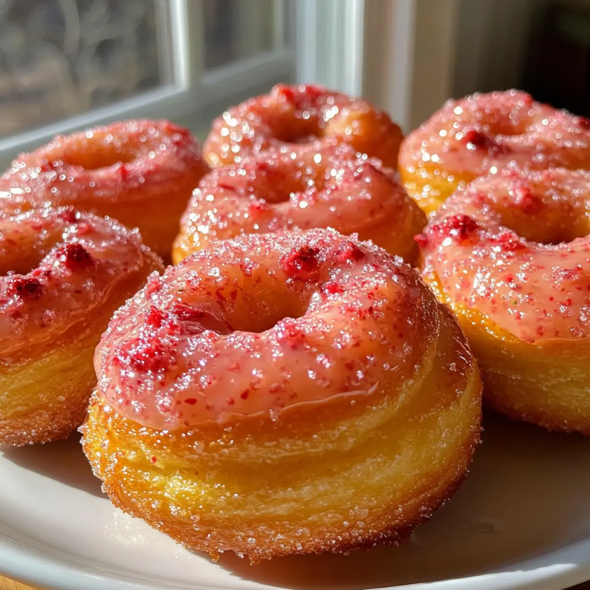 Jump to Recipe Print RecipeAs I stood in my kitchen, the warm scent of frying dough enveloped me, instantly transporting me back to summer fairs and indulgent brunches. Today, I’m sharing the joy of creating Strawberry Glazed French Crullers, a delightful twist on classic choux pastry. These airy treats are not only a feast for the senses but also incredibly versatile, making them perfect for any occasion. A quick and satisfying preparation means you can whip them up in no time, whether for a special celebration or a cozy afternoon treat. Dipped in a luscious homemade strawberry glaze and finished with a sprinkle of strawberry sugar, these crullers are sure to impress friends and family alike. Ready to indulge in a sweet adventure? Let’s get started! Why are these crullers a must-try? Irresistible Flavor: These Strawberry Glazed French Crullers burst with fruity sweetness, thanks to the rich strawberry glaze and the delicate pastry. Quick to Make: With simple ingredients and an easy frying method, you can whip up this delightful treat in no time. Perfect for Any Occasion: Ideal for summer gatherings or cozy brunches, these crullers are a guaranteed crowd-pleaser, much like Hawaiian Roll French toast or Strawberry Cheesecake Sandwiches. Texture Magic: Enjoy a perfect crisp exterior giving way to a soft and airy center, creating a wonderful bite that’s unlike anything you’d find in a fast-food joint. Endless Variations: Not just limited to strawberries, feel free to experiment with other flavors — blueberries, raspberries, or even a rich chocolate glaze, the options are limitless! Strawberry Glazed French Crullers Ingredients Get ready to create something sweet and special! For the Choux Pastry Water – Adds moisture essential for steaming the choux pastry. Whole Milk – Contributes richness; substitute with plant-based milk for a dairy-free option. Unsalted Butter – Provides texture and flavor; can use margarine to make it dairy-free. Granulated Sugar – Sweetens the dough; swap for coconut sugar for a less refined touch. Salt – Enhances the flavor; it’s a vital ingredient, so no substitutes are necessary. Bread Flour – Creates structure and chewiness; all-purpose flour can work but may alter texture. Large Eggs – Binds the ingredients and adds moisture; egg substitutes aren’t recommended for this recipe. For Frying Vegetable or Canola Oil – Essential for frying; stick with these oils for best results. For the Glaze Powdered Sugar – Sweetens the glaze; no significant substitutes are needed. Fresh Strawberries – Imparts fabulous fruity flavor; frozen strawberries can be a quick alternative, though the taste may vary. Whole Milk (for glaze) – Provides necessary consistency; feel free to use plant-based milk instead. For the Strawberry Sugar Freeze Dried Strawberries – Perfect for making strawberry sugar; ground fresh strawberries can work but may offer a different texture. Granulated Sugar (for strawberry sugar) – Adds extra sweetness; this ingredient doesn’t require substitutes. Now that you have all your ingredients ready, you’re one step closer to enjoying these delightful Strawberry Glazed French Crullers! Step‑by‑Step Instructions for Strawberry Glazed French Crullers Step 1: Prepare Parchment Squares Begin by cutting 18 squares of parchment paper, each measuring 4 inches. For easier piping later, you may trace circles on the parchment using a template or a pencil. Lay these squares on a baking sheet or a clean countertop, ready for the cruller batter once it’s prepared. Step 2: Make Choux Pastry In a medium saucepan, combine 1 cup of water, 1 cup of whole milk, 1/2 cup of unsalted butter, 1 tablespoon of granulated sugar, and 1/2 teaspoon of salt. Heat this mixture over medium-high until it comes to a rolling boil. Once boiling, remove the saucepan from heat, and quickly stir in 1 1/2 cups of bread flour until the mixture forms a smooth dough. Step 3: Beat Batter Transfer the dough to a stand mixer fitted with a paddle attachment. Beat the mixture on medium speed for about 3-4 minutes, allowing the steam to escape fully. As the dough cools slightly, incorporate 4 large eggs one at a time, mixing until the batter is smooth, glossy, and pipeable. Step 4: Pipe Crullers Pour the choux pastry into a piping bag fitted with a large star tip. Gently pipe your crullers onto the prepared parchment squares, shaping them into rings or circles as desired. Ensure they are spaced generously on the parchment to allow for puffing during frying. Step 5: Fry Crullers Heat vegetable or canola oil in a deep fryer or large pot to 370°F. Carefully place the crullers, parchment-side up, into the hot oil. Fry for about 45 seconds, then use tongs to carefully remove the parchment, continuing to fry the crullers for an additional 2-3 minutes per side until they are golden brown and puffed. Step 6: Cool and Glaze Once golden, lift the crullers from the oil with a slotted spoon and drain them on a wire rack for about 5 minutes. Prepare the glaze by mixing powdered sugar with pureed fresh strawberries and whole milk until smooth. After the crullers are cooled slightly and no longer hot, dip them in the strawberry glaze and sprinkle with strawberry sugar for a sweet finishing touch. Make Ahead Options These Strawberry Glazed French Crullers are perfect for meal prep enthusiasts! You can prepare the choux pastry up to 24 hours in advance; just place it in an airtight container in the refrigerator to keep it fresh. You can also pipe the crullers onto parchment squares and refrigerate them overnight. When you’re ready to fry, take them out and fry directly from the fridge, ensuring they’re patted dry to maintain their crispiness. Lastly, after glazing, sprinkle with strawberry sugar just before serving for that delightful finish. This way, you’ll have delicious, airy crullers ready for any occasion with minimal fuss! How to Store and Freeze Strawberry Glazed French