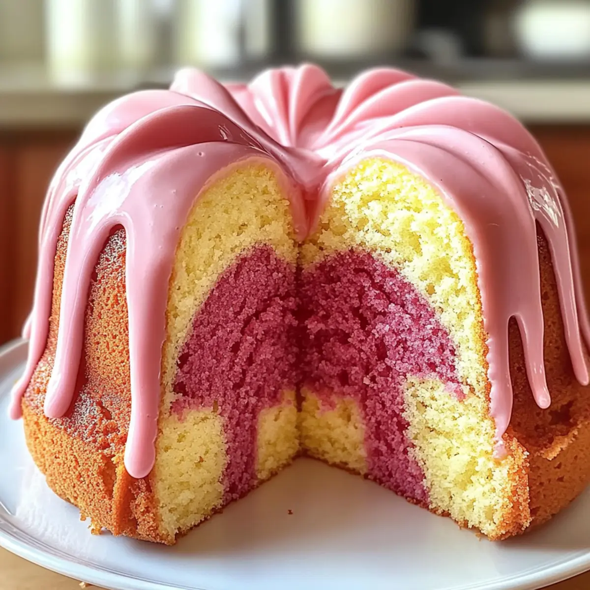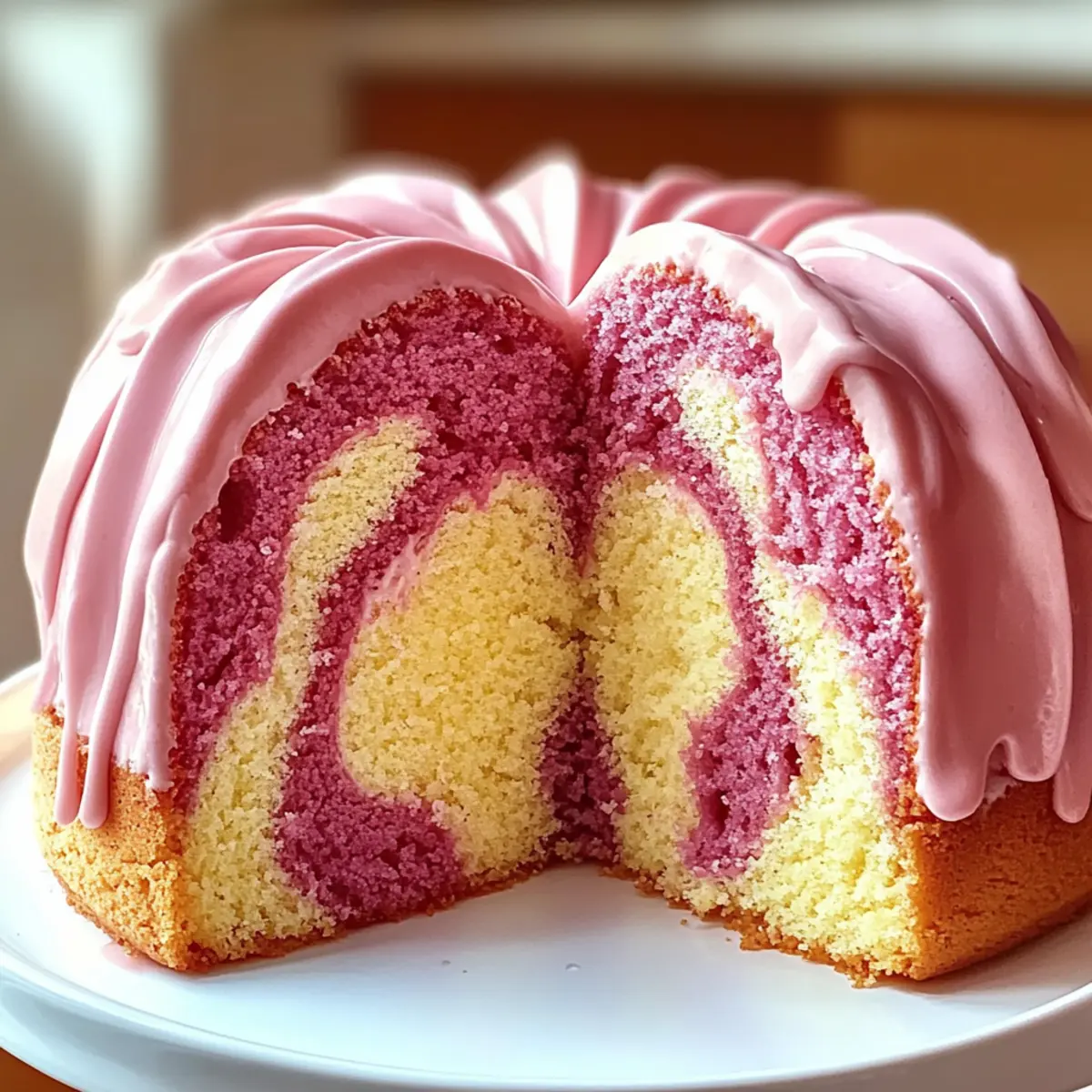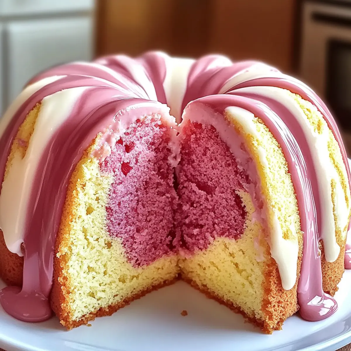 Jump to Recipe Print RecipeAs a child, the simple joy of inhaling a freshly blended strawberry milkshake often felt like magic in a glass. That delight inspired me to recreate those flavors in a unique dessert: the Strawberry Milkshake Pound Cake. This easy-to-make cake captures the essence of those nostalgic summer days, transforming it into a moist, fluffy treat that’s as visually stunning as it is delicious. In just 1.5 hours, you’ll have a beautifully marbled show-stopper that impresses at any gathering, making it a wonderful option for busy home chefs looking to elevate their dessert game. Curious about how to bring this whimsical creation into your kitchen? Let’s dive into the recipe! Why is This Cake So Special? Nostalgic Flavors: This Strawberry Milkshake Pound Cake brings back sweet memories of summer treats, creating a comforting experience. Visual Appeal: Its vibrant marbled design makes it a stunning centerpiece for special occasions or everyday treats. Easy to Make: With simple ingredients and straightforward steps, it’s perfect for both novice bakers and seasoned chefs alike. Time-Saving Delight: Ready in just 1.5 hours, it fits perfectly into a busy schedule, ensuring you can indulge without a lengthy prep time. Crowd-Pleaser: This cake is sure to impress friends and family, making it a popular choice for gatherings or celebrations. Serve it with fresh strawberries or a dollop of whipped cream for that extra indulgence! Strawberry Milkshake Pound Cake Ingredients • Let’s gather the essentials for your delicious adventure! For the Cake Batter Unsalted Butter – Adds richness and moisture; ensure it’s softened for easy creaming. Vegetable Oil – Enhances tenderness and moisture in the cake. Granulated Sugar – Provides sweetness and helps create a fluffy texture. Eggs – Structure and moisture; adds richness. Beat until fully incorporated. Instant Strawberry Pudding Mix – Infuses strawberry flavor and moisture; substitute with vanilla pudding and extra strawberry extract if needed. Strawberry Extract – Enhances the strawberry flavor; can be substituted with vanilla for a different twist. Vanilla Extract – Complements flavors and contributes to sweetness. Whole Milk – Adds moisture; can use buttermilk for tanginess. All-Purpose Flour – Forms the structure of the cake. Baking Powder – Provides leavening for a light cake. Salt – Balances sweetness and enhances flavor. Food Coloring (pink/red) – Optional for color enhancement in the batter. For the Glaze Powdered Sugar – Base for the glaze, providing sweetness and texture. Strawberry Milk – Used in the glaze for flavor; can use regular milk. With these simple yet essential ingredients, you’re well on your way to creating an unforgettable Strawberry Milkshake Pound Cake that captures both flavor and nostalgia! Step‑by‑Step Instructions for Strawberry Milkshake Pound Cake Step 1: Preheat the Oven Begin by preheating your oven to 325°F (165°C). While the oven warms up, prepare a bundt pan by greasing it thoroughly and dusting it with flour. This ensures the Strawberry Milkshake Pound Cake releases easily after baking, maintaining its beautiful shape and marbled appearance. Step 2: Cream the Butter and Sugar In a large mixing bowl, cream together the softened unsalted butter, vegetable oil, and granulated sugar. Use an electric mixer on medium speed for about 3 to 5 minutes, until the mixture is light and fluffy. You’ll know it’s ready when the color lightens and the texture becomes airy, which is key for a moist pound cake. Step 3: Incorporate the Eggs Next, add the eggs one at a time to the creamed mixture, beating well after each addition. This step is crucial for enriching the batter and ensuring even distribution of the eggs throughout the Strawberry Milkshake Pound Cake. Keep mixing until all the eggs are fully integrated and the batter appears smooth. Step 4: Add Flavoring Ingredients Mix in the instant strawberry pudding mix along with the strawberry extract, vanilla extract, and whole milk. Use a spatula to combine these ingredients until just incorporated. The pudding not only infuses a delightful strawberry flavor but also adds unique moisture that makes your cake irresistibly soft. Step 5: Combine Dry Ingredients In a separate bowl, whisk together the all-purpose flour, baking powder, and salt. Gradually add this dry mixture to the wet ingredients while mixing on low speed. Aim for a smooth batter, but be careful not to overmix, as this can lead to a dense Strawberry Milkshake Pound Cake. Step 6: Color the Batter Divide the batter evenly into two bowls. In one bowl, add a few drops of pink or red food coloring and gently fold it in until the desired color is achieved. This adds a lovely visual appeal to your cake, enhancing the whimsical nature of the Strawberry Milkshake Pound Cake. Step 7: Create the Marble Effect Spoon alternating dollops of the plain and colored batters into the prepared bundt pan. Use a knife or skewer to gently swirl the two batters together, creating a beautiful marbled pattern. This technique not only looks stunning but allows the flavors to blend harmoniously. Step 8: Bake the Cake Place your bundt pan in the preheated oven and bake for 60 to 70 minutes. Keep an eye on the cake; it’s done when a toothpick inserted in the center comes out clean. The delightful aroma of strawberry will fill your kitchen, promising a delicious treat! Step 9: Cool and Release After baking, let the cake cool in the pan for about 15 minutes. This step is important to ensure it sets properly. Once cooled, carefully invert the bundt pan onto a wire rack, allowing the Strawberry Milkshake Pound Cake to cool completely before glazing. Step 10: Prepare the Glaze For the glaze, whisk together powdered sugar, strawberry milk, and a splash of vanilla extract in a small bowl. Adjust the consistency if needed, adding more powdered sugar or milk until it’s smooth and pourable