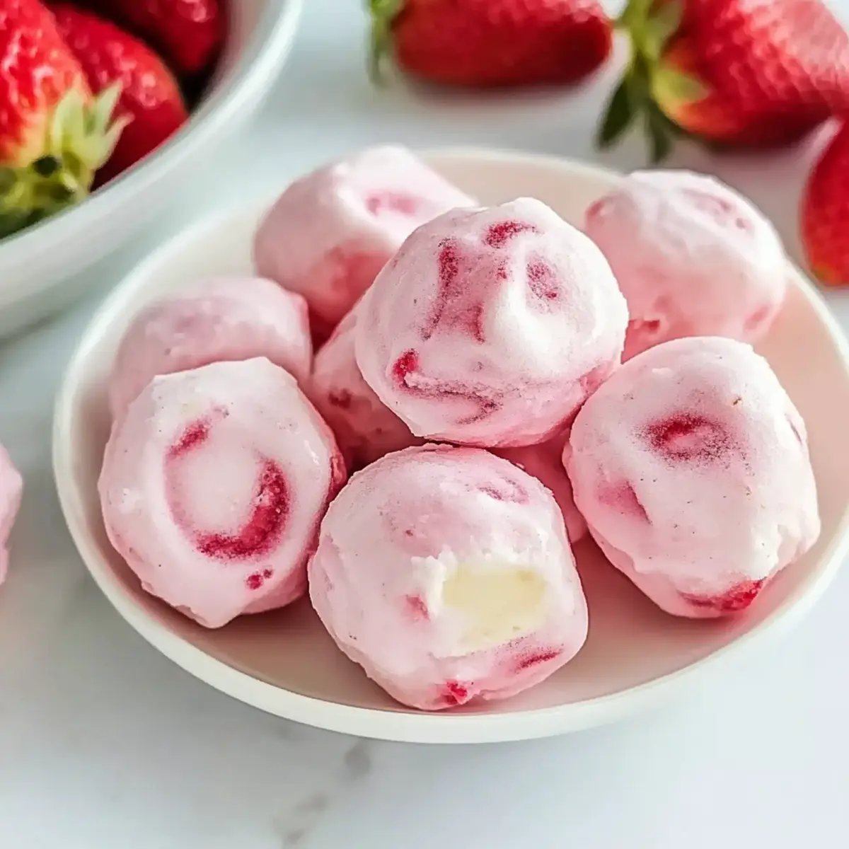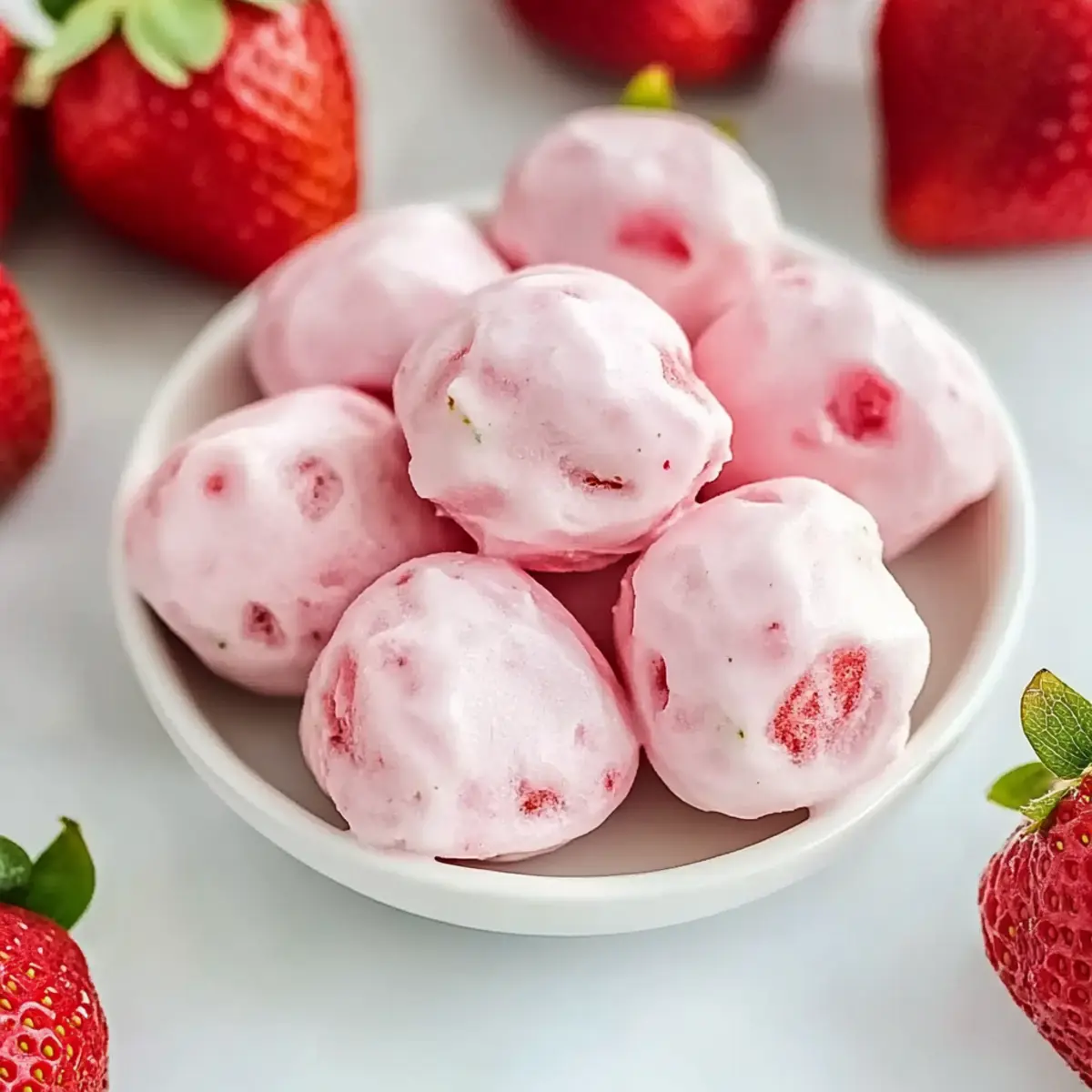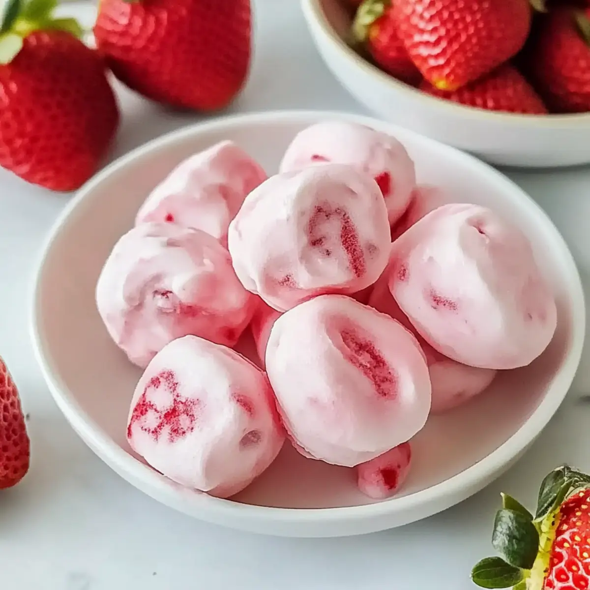 Jump to Recipe Print RecipeAs I tossed fresh strawberries into the blender, their vibrant red hue reminded me of summer picnics, where laughter and joy filled the air. Today, I’m bringing that nostalgia right into your kitchen with these Easy Strawberry Yogurt Bites. Crafted with just three simple ingredients, this no-bake recipe is perfect for those busy days when you still want something healthy and delightful on hand. With their creamy texture and refreshing taste, these yogurt bites not only satisfy your sweet cravings but also make a nutritious treat that kids will love. And the best part? You can customize them with your favorite fruits for a burst of flavor every time! Ready to whip up a batch of cool, creamy joy? Let’s dive into the recipe! Why Are You Going to Love This? Simplicity is key: With just three easy ingredients, these Strawberry Yogurt Bites come together in minutes, making them a breeze to whip up even on your busiest days. Healthy Indulgence: Guilt-free snacking is a guarantee; these bites are low in calories yet packed with protein from Greek yogurt, making them a great choice for both kids and adults. Customizable Fun: Mix in your favorite fruits like blueberries or mangoes to give a vibrant twist, ensuring each batch is uniquely yours. Perfect for Any Occasion: These bites serve beautifully as after-school snacks, lunchbox additions, or even a refreshing party treat that’ll please everyone. Effortless Storage: Made ahead of time and stored in your freezer, they’re always ready to satisfy your cravings. Make sure to check out other delightful treats like Strawberry Biscuits Sweet for even more inspiration! Strawberry Yogurt Bites Ingredients • For your delightful snack creations, here’s what you’ll need: For the Bites Strawberries – Fresh, ripe strawberries offer the best natural sweetness and flavor for your Strawberry Yogurt Bites. Greek Yogurt – Select plain or flavored Greek yogurt for creaminess and a protein boost. Honey – Use honey as a natural sweetener; feel free to substitute with maple syrup or agave for a vegan alternative. Optional Add-Ins Chia Seeds – These can provide added texture and nutrition, making your bites even more wholesome. Shredded Coconut – A sprinkle of shredded coconut adds a tropical flair and delightful chewiness. Nuts – Chopped nuts not only enhance crunchiness but also contribute healthy fats for a balanced snack. With these simple yet tantalizing ingredients, you’re all set to create your own Strawberry Yogurt Bites, each bite bursting with flavor and nutrition! Step‑by‑Step Instructions for Strawberry Yogurt Bites Step 1: Blend Strawberries and Honey Begin by washing and hulking 5 large ripe strawberries. Place them in a food processor along with 1 tablespoon of honey. Blend the mixture until it becomes smooth, about 30 seconds. This vibrant strawberry purée is the base for your Strawberry Yogurt Bites, offering natural sweetness. Once blended, set aside approximately ¼ cup of the purée for later use. Step 2: Combine Yogurt and Purée In a medium mixing bowl, add 1 cup of Greek yogurt and the remaining strawberry purée. Using a spatula, gently fold the ingredients together until well combined, creating a uniform mixture. This creamy blend will be the heart of your yogurt bites, delivering a delightful taste and texture. Make sure there are no visible streaks of yogurt for an even flavor throughout. Step 3: Prepare for Piping Transfer the yogurt mixture into a piping bag or a zip-top bag with a corner snipped. This allows for easy and controlled dispensing of the mixture. If you’re using a piping bag, ensure the tip is large enough to allow the creamy filling to flow smoothly. This technique will help you create uniform dollops for your Strawberry Yogurt Bites. Step 4: Pipe onto Sheet Pan Line a sheet pan with wax or parchment paper to prevent sticking. Carefully pipe small dollops of the yogurt mixture, each about 1-inch in diameter, onto the sheet. Leave a little space between each dollop to allow for expansion during freezing. Aim for neat, consistent sizes to ensure even freezing, which is key for an enjoyable bite. Step 5: Freeze Until Firm Place the sheet pan in the freezer and allow the Strawberry Yogurt Bites to freeze for approximately 1 hour or until they are firm to the touch. This freezing step is crucial as it locks in the creamy texture and makes them easy to handle. Keep an eye on them, ensuring they are set but not overly frozen, as you want them to remain soft and enjoyable. Step 6: Serve and Enjoy Once fully frozen, remove the pan from the freezer. Carefully lift the Strawberry Yogurt Bites off the parchment paper and place them in a sealed container for storage. These frozen treats can be enjoyed straight from the freezer, providing a refreshing snack that’s perfect for any time of day. Indulge in the delightful flavors of your homemade Strawberry Yogurt Bites! Make Ahead Options These Easy Strawberry Yogurt Bites are perfect for meal prep, allowing you to savor healthy treats anytime! You can prepare the strawberry purée (5 large strawberries blended with 1 tablespoon of honey) up to 24 hours in advance. Simply store it in an airtight container in the refrigerator. Additionally, you can mix the purée with 1 cup of Greek yogurt and then pipe the bites up to 3 days ahead before freezing. Maintain their quality by ensuring they’re stored in a single layer on parchment or wax paper. When you’re ready to enjoy, just freeze for 1 hour until firm, and you’ll have these delightful yogurt bites ready to serve straight from the freezer! How to Store and Freeze Strawberry Yogurt Bites Fridge: Store thawed Strawberry Yogurt Bites in an airtight container in the fridge for up to 3 days for the best flavor and texture. Freezer: Keep the yogurt bites in a sealed container or freezer bag for up to 3 months. They maintain their creamy texture and can be enjoyed straight from the 