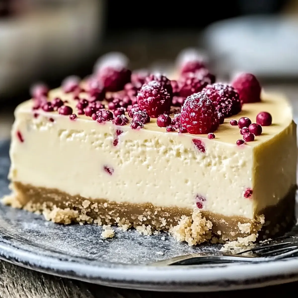 Jump to Recipe Print RecipeAs the scent of sugar cookies wafts through the air, it’s hard not to be whisked away to cherished holiday memories. Enter the Irresistible Sugar Cookie Cheesecake—a delightful concoction that combines the comforting essence of sugar cookies with the creamy richness of cheesecake. It’s the perfect dessert for those special gatherings or simply when you want to treat yourself. This easy baking recipe is a true crowd-pleaser, with its luscious filling and adorable edible cookie dough topping tempting anyone who lays eyes on it. Plus, it can easily be made gluten-free, dairy-free, or even vegan, ensuring everyone can indulge. Curious about how to whip up this stunning dessert that marries nostalgia and indulgence? Let’s dive into the delightful world of Sugar Cookie Cheesecake! Why is Sugar Cookie Cheesecake So Irresistible? Simplicity: This recipe encourages even beginner bakers. With easy-to-follow steps, you’ll have a stunning dessert in no time! Decadent Flavor: The rich combination of cream cheese and sugar cookie dough creates a flavor explosion. It’s perfect for satisfying sweet cravings! Versatile Options: Make it gluten-free or vegan with simple swaps; everyone can enjoy this delight! Consider pairing it with Strawberry Cheesecake Sandwiches for a dessert spread everyone will love. Eye-Catching Appeal: A gorgeous visual treat, it features a creamy filling adorned with edible cookie dough pieces. It’s bound to impress your guests! Perfect for Celebrations: Whether it’s a holiday gathering or a casual dinner, this cheesecake stands out on any dessert table. Prepare to be the star of the show! Sugar Cookie Cheesecake Ingredients • Let’s gather all the essentials for this delightful treat! For the Crust Sugar Cookie Dough – This gives a sweet buttery flavor as the base; using store-bought can save time! Flour – Essential for structure; use heat-treated all-purpose flour for safety. Butter – Adds moisture to the crust; feel free to substitute with margarine for a dairy-free version. Sugar – Sweetens crust and filling; using brown sugar enhances moisture and depth. Egg – Binds the crust; a flax egg serves as a great vegan alternative. For the Filling Cream Cheese – The star of the cheesecake, offering creaminess and tang; full-fat yields the best results. Sour Cream – Adds tanginess and moisture; you can opt for Greek yogurt for a lighter touch. Heavy Cream – Contributes to a luscious texture; substitute with coconut cream to keep it dairy-free. Vanilla Extract – Enhances overall flavor; high-quality extract makes all the difference. Edible Cookie Dough – Introduces fun texture and flavor; ensure it’s made with heat-treated flour for safety. For the Ganache White Chocolate – Sweetens and smooths the ganache; swap it out for dark chocolate for a richer flavor. Heavy Cream (for Ganache) – Heated until warm to mix smoothly with chocolate. Now you’re ready to craft your own Sugar Cookie Cheesecake masterpiece! Step‑by‑Step Instructions for Sugar Cookie Cheesecake Step 1: Prep the Pan Begin by preheating your oven to 350°F (175°C). As it heats, line a 9-inch springform pan with parchment paper, ensuring the paper overlaps the edges for easy removal later. Lightly spray the sides of the pan with baking spray to prevent sticking. Step 2: Bake the Flour Spread the flour on a baking sheet and bake it in the preheated oven at 300°F (150°C) for 5–7 minutes. This will heat-treat the flour for safety. Once done, allow it to cool completely before using it in your crust and edible cookie dough. Step 3: Make the Crust In a mixing bowl, cream together the softened butter and sugar until the mixture is light and fluffy, about 2–3 minutes. Next, add the egg and vanilla extract, mixing until combined. Gradually incorporate the heat-treated flour, then press the crust mixture evenly into the bottom of the prepared springform pan. Bake for 20–25 minutes, or until golden brown. Step 4: Prepare Cookie Dough While the crust bakes, beat together the butter and sugar in a bowl until smooth. Add in the vanilla extract and milk, mixing until creamy. Gradually fold in the heat-treated flour until fully combined. Scoop the dough into small balls and place them on a baking sheet lined with parchment paper. Freeze the cookie dough balls to firm up while the cheesecake filling is prepared. Step 5: Prepare Cheesecake Filling Lower the oven temperature to 325°F (160°C). In a large mixing bowl, beat the cream cheese and sugar until smooth and creamy, about 3 minutes. Add the sour cream, heavy cream, and vanilla extract, mixing until fully incorporated. Then, add the eggs one at a time, mixing gently just until combined. Finally, fold in the frozen edible cookie dough. Step 6: Bake Cheesecake Pour the cheesecake filling over the baked crust in the springform pan. To prevent cracking, bake the cheesecake in a water bath for 75–85 minutes. The edges should be set, while the center should remain slightly jiggly. This ensures a smooth and creamy texture for your Sugar Cookie Cheesecake. Step 7: Cool and Chill Once baked, turn off the oven and crack the door open, allowing the cheesecake to cool inside for 30 minutes. This gradual cooling helps prevent cracks. Afterward, transfer the cheesecake to the refrigerator and chill for at least 6 hours, or preferably overnight, to enhance flavor and texture. Step 8: Make Ganache To prepare the ganache, heat the heavy cream in a small saucepan over medium heat until warm but not boiling. Pour the warm cream over the white chocolate in a bowl, stirring until smooth and glossy. Once your cheesecake is completely chilled, pour the ganache over the top, allowing it to drip down the sides. Step 9: Decorate and Serve For an extra touch, top your cooled Sugar Cookie Cheesecake with remaining edible cookie dough pieces and colorful sprinkles if desired. Slice and serve this delightful dessert at your nex