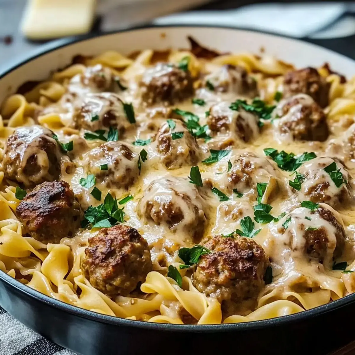 Jump to Recipe Print RecipeAs I stirred the bubbling pot on the stove, I couldn’t help but smile at the way the delightful scent of my Swedish Meatball Noodle Bake enveloped the kitchen. This heartwarming comfort food brings everything together—a marriage of tender meatballs and creamy, baked noodles that feels like a warm hug on a chilly evening. This recipe not only satisfies those hunger pangs but also creates lasting family memories around the dinner table, with options for everyone, whether you want to sneak in some vegetables or switch up the cheese. Ready to impress your loved ones with a meal that’s as easy to prepare as it is delicious? Let’s dive into this cozy dish that’s sure to make your weeknight dinners feel extra special! Why is this dish a family favorite? Comforting and Warm: This Swedish Meatball Noodle Bake is like a cozy blanket for the taste buds, offering a delicious way to warm up during chilly nights. Crowd-Pleasing: Everyone from kids to adults will adore this dish, making it perfect for family gatherings or potlucks. Easy to Customize: Feel free to add your favorite vegetables or swap cheeses to suit any dietary needs—there’s a version for everyone! Time-Saving: With just a few simple steps, you can prepare this delightful meal in no time, leaving you with more moments to enjoy with your loved ones. Memorable Flavors: The delightful combination of savory meatballs and creamy, cheesy noodles makes every bite a delightful experience, reminiscent of hearty family dinners. Make it Ahead: Prepare this dish in advance and refrigerate it until you’re ready to bake. It’s a fantastic option for meal prepping or last-minute company! If you loved this recipe, you might also enjoy our Baked Asparagus Fries alongside your comforting casserole. Swedish Meatball Noodle Bake Ingredients Get ready to create a delightful dinner! For the Meatballs Ground Beef – Provides the main protein and lends flavor to the dish; you can substitute with turkey or chicken for a lighter option. Breadcrumbs – Adds structure to the meatballs; gluten-free breadcrumbs work perfectly if you need a substitution. Parmesan Cheese – Enhances the savory profile and adds richness; feel free to use nutritional yeast for a dairy-free alternative. Parsley – Offers freshness and color; dried parsley can be used if fresh is not available. Egg – Binds the meatball mixture together; for a vegan option, try a flax egg as a substitute. Garlic Powder – Infuses amazing flavor into the meatballs; fresh minced garlic can give a stronger taste if preferred. Onion Powder – Adds depth of flavor; chopped fresh onion can also be used for a more vibrant taste. Salt and Pepper – Essential for seasoning; adjust to your palate’s preference. For the Noodles and Sauce Egg Noodles – The heart of this comforting dish; whole wheat or gluten-free noodles can be an excellent alternative. Beef Broth – Adds moisture and enhances flavor; vegetable broth is a great substitute for a vegetarian option. Sour Cream – Contributes rich creaminess to the sauce; Greek yogurt can be swapped in for added protein. Cream of Mushroom Soup – Serves as a base for the sauce, binding all the delicious flavors; you can use homemade or vegan substitutes if desired. Mozzarella Cheese – The topping that brings it all together with a melty finish; consider using cheddar or a dairy-free cheese for different flavor profiles. This Swedish Meatball Noodle Bake is not only delicious but also incredibly versatile—perfect for any family gathering! Step‑by‑Step Instructions for Swedish Meatball Noodle Bake Step 1: Preheat the Oven Begin by preheating your oven to 350°F (175°C). This ensures a warm environment for baking your Swedish Meatball Noodle Bake later on. While the oven heats, gather your baking dish and other ingredients to streamline your cooking process. Step 2: Prepare the Meatball Mixture In a large mixing bowl, combine ground beef, breadcrumbs, Parmesan cheese, parsley, egg, garlic powder, onion powder, salt, and pepper. Use your hands or a wooden spoon to mix until it’s well combined—aim for a uniform texture without overmixing. Once prepared, form this mixture into evenly sized meatballs, about 1 to 1.5 inches in diameter. Step 3: Brown the Meatballs Heat a skillet over medium heat and add a splash of oil. Once the oil shimmers, carefully add the meatballs, making sure not to overcrowd the pan. Cook for about 5-7 minutes, turning occasionally until they are evenly browned on all sides. This step adds delicious flavor and texture to the meatballs. Step 4: Cook the Egg Noodles While the meatballs are browning, bring a pot of salted water to a boil. Add the egg noodles and cook according to package instructions, typically 7-9 minutes, until al dente. Once cooked, drain the noodles well and set them aside, allowing them to cool slightly while you prepare the sauce. Step 5: Combine the Sauce Ingredients In a separate bowl, mix together the beef broth, sour cream, and cream of mushroom soup until smooth and fully blended. This creamy mixture will serve as the delicious sauce that unites your Swedish Meatball Noodle Bake. Make sure there are no lumps for a silky texture in your final dish. Step 6: Assemble the Dish In a large baking dish, combine the cooked egg noodles, browned meatballs, and the creamy sauce mixture. Gently stir everything together to ensure that the noodles and meatballs are well coated. This is where the magic happens, as the flavors blend beautifully! Step 7: Add the Cheese Topping Sprinkle a generous layer of mozzarella cheese evenly over the top of the noodle and meatball mixture. The cheese will melt and create a delightful golden crust as the dish bakes, adding that comforting touch all baked dishes deserve. Step 8: Bake to Perfection Transfer the assembled Swedish Meatball Noodle Bake to the preheated oven. Bake for 25-30 minutes, or until the cheese is bubbly and lightly gold