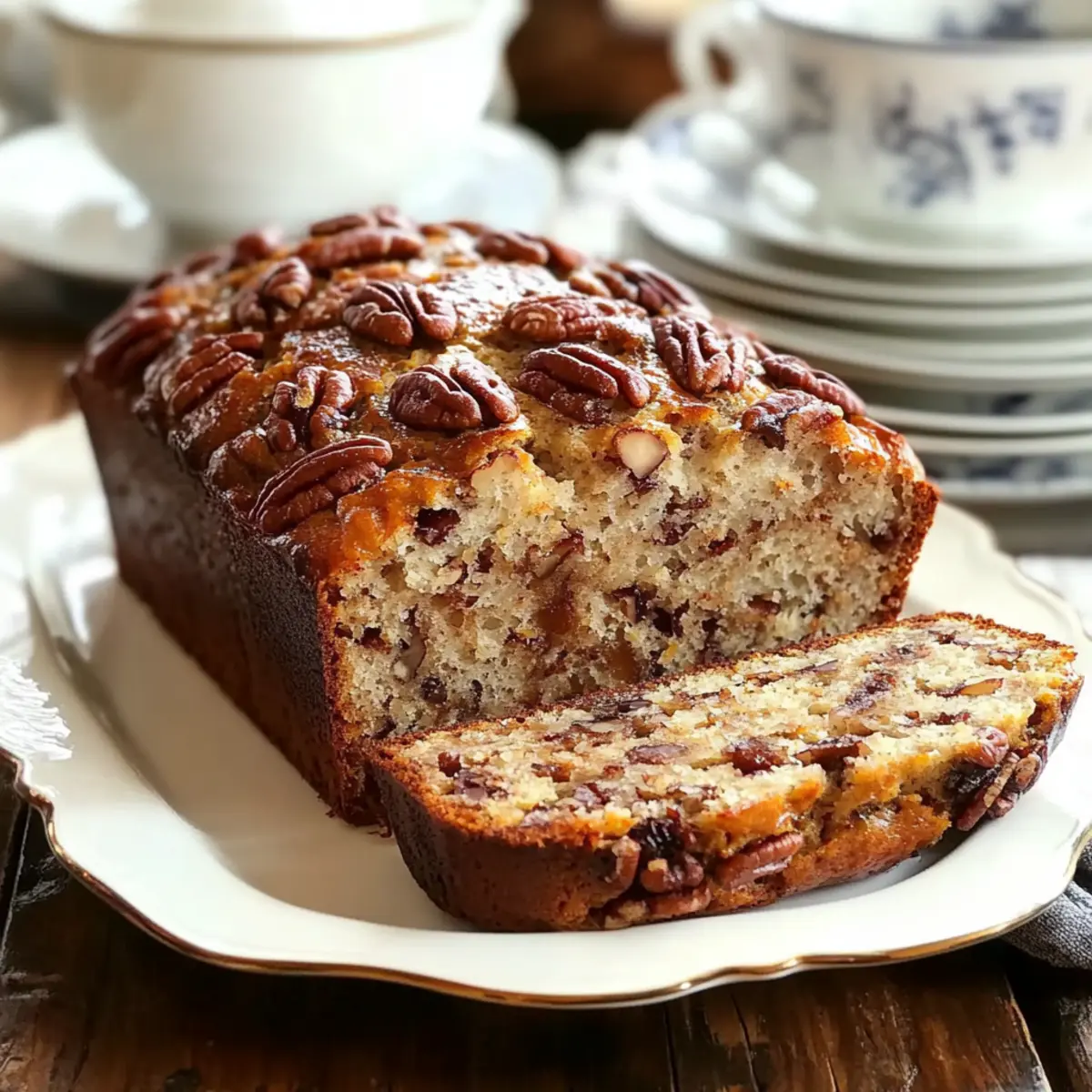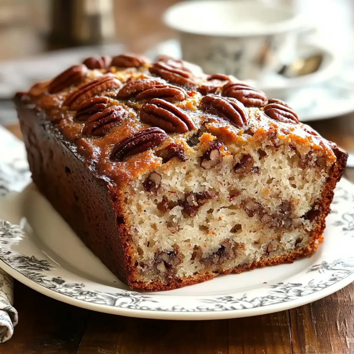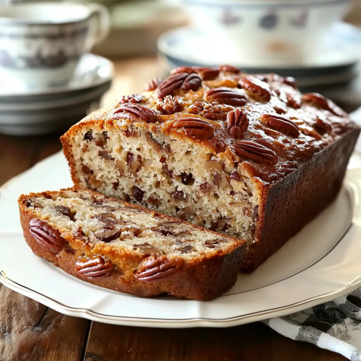 Jump to Recipe Print RecipeThe warm scent of baking bread wafting through the house has a magical way of transforming an ordinary day into something special. Enter Sweet Alabama Pecan Bread—a wonderfully moist and nutty delight that strikes the perfect balance between comforting and indulgent without being overly sweet. This cozy treat is incredibly simple to whip up, making it an ideal addition to your breakfast table or a lovely companion to your afternoon coffee ritual. Plus, with the option to swap in your favorite nuts, you can customize each loaf to suit your taste. Ready to fill your home with the inviting aroma of freshly baked goodness? Let’s dive into this delicious recipe and see how simple it is to create a delightful homemade bread that will have everyone coming back for more! Why is Sweet Alabama Pecan Bread Special? Moist, This Sweet Alabama Pecan Bread boasts a rich texture that keeps every slice tender and delightful without being too sweet. Easy to Make: With simple ingredients and straightforward steps, even novice bakers can master this cozy treat in no time. Versatile Options: Feel free to switch out pecans for walnuts or even toss in some chocolate chips for a fun twist, making it adaptable to your taste. Perfect Pairing: Enjoy this bread with your morning coffee or as a delightful addition to your afternoon tea, elevating any moment. Crowd-Pleasing: Whether for family gatherings or dinner parties, this recipe has the warmth and aroma to charm everyone. Don’t forget to check out our Fudge Brownie Bread for another easily loved sweet bread! Sweet Alabama Pecan Bread Ingredients For the Batter • Granulated Sugar – Adds sweetness and enhances moisture; substitute with coconut sugar for a lower glycemic index. • Light Brown Sugar – Contributes to overall sweetness and adds depth of flavor; use dark brown sugar for a richer taste. • Vegetable Oil – Keeps the bread moist and tender; can be replaced with melted coconut oil or applesauce for a healthier option. • Eggs – Provide structure and help bind the ingredients together; for a vegan option, use flax eggs (1 tablespoon ground flaxseed + 3 tablespoons water per egg). • Vanilla Extract – Enhances flavor with its aromatic note; substitute with almond extract for a different twist. • Baking Soda – Acts as a leavening agent; ensure it’s fresh for proper rise. • Salt – Balances the sweetness and enhances overall flavor; no substitutes necessary. • All-Purpose Flour – Forms the structure of the bread; use a gluten-free flour blend for a gluten-free version. • Chopped Pecans – Provides texture and nuttiness; feel free to substitute with walnuts, almonds, or chocolate chips for your Sweet Alabama Pecan Bread. Step‑by‑Step Instructions for Sweet Alabama Pecan Bread Step 1: Preheat the Oven Begin by preheating your oven to 350°F (175°C). While the oven warms up, prepare a 9×5 inch loaf pan by lining it with parchment paper or generously greasing it with butter or oil. This preparation ensures the Sweet Alabama Pecan Bread releases easily after baking, setting the stage for a perfect loaf. Step 2: Mix Wet Ingredients In a large mixing bowl, whisk together the granulated sugar, light brown sugar, and vegetable oil until the mixture is smooth and well combined. Add in the eggs one at a time, mixing thoroughly after each addition to create a cohesive blend. Finally, stir in the aromatic vanilla extract, bringing a warm flavor that perfectly complements the pecans. Step 3: Combine Dry Ingredients In a separate bowl, sift together the baking soda, salt, and all-purpose flour to incorporate air and avoid lumps. This step is crucial to achieving a light texture in your Sweet Alabama Pecan Bread. Take a moment to appreciate the earthy scent of the flour before moving on to combine the wet and dry ingredients. Step 4: Combine Mixtures Gradually add the dry mixture to the wet ingredients, stirring gently until just combined. Be careful not to overmix, as this could affect the tenderness of your bread. With a spatula, fold in the chopped pecans, ensuring they are evenly distributed throughout the batter for that delightful crunch in each bite. Step 5: Bake the Bread Pour the batter into your prepared loaf pan, smoothing the top with a spatula. Place the pan in the preheated oven and bake for 60-70 minutes. The bread is done when a toothpick inserted into the center comes out clean, and the crust has a golden-brown hue. Keep an eye on the bread towards the end to avoid overbaking. Step 6: Cool the Bread Once baked, remove the Sweet Alabama Pecan Bread from the oven and allow it to cool in the pan for about 10 minutes. Carefully transfer the bread to a cooling rack to cool completely. This process allows the steam to escape and helps maintain the moist texture, ensuring that your loaf is light and fluffy. Sweet Alabama Pecan Bread Variations Feel free to get creative with your Sweet Alabama Pecan Bread and make it your own with these delicious twists! Nut Substitutions: Swap chopped pecans for walnuts, almonds, or even hazelnuts to suit your preferences. Each nut adds its unique flavor and texture. Dried Fruit Delight: Toss in some dried cranberries or raisins for a fruity burst of flavor that beautifully contrasts with the nutty base. They add a lovely chewiness and color to the bread. Chocolate Lovers: For a decadent treat, substitute some of the pecans with chocolate chips. The sweetness of the chocolate pairs wonderfully with the bread’s flavors. Spiced Pumpkin: Add pumpkin puree and a touch of pumpkin spice for a seasonal twist. This combination results in a cozy feeling that’s perfect for chilly days. Maple Infusion: Replace the granulated sugar with pure maple syrup for a deep, caramel-like sweetness and an aroma that will make your kitchen smell heavenly. Zesty Twist: Incorporate zest from an orange or lemon into the batter for a refreshing citrus flavor that brightens your bread w
