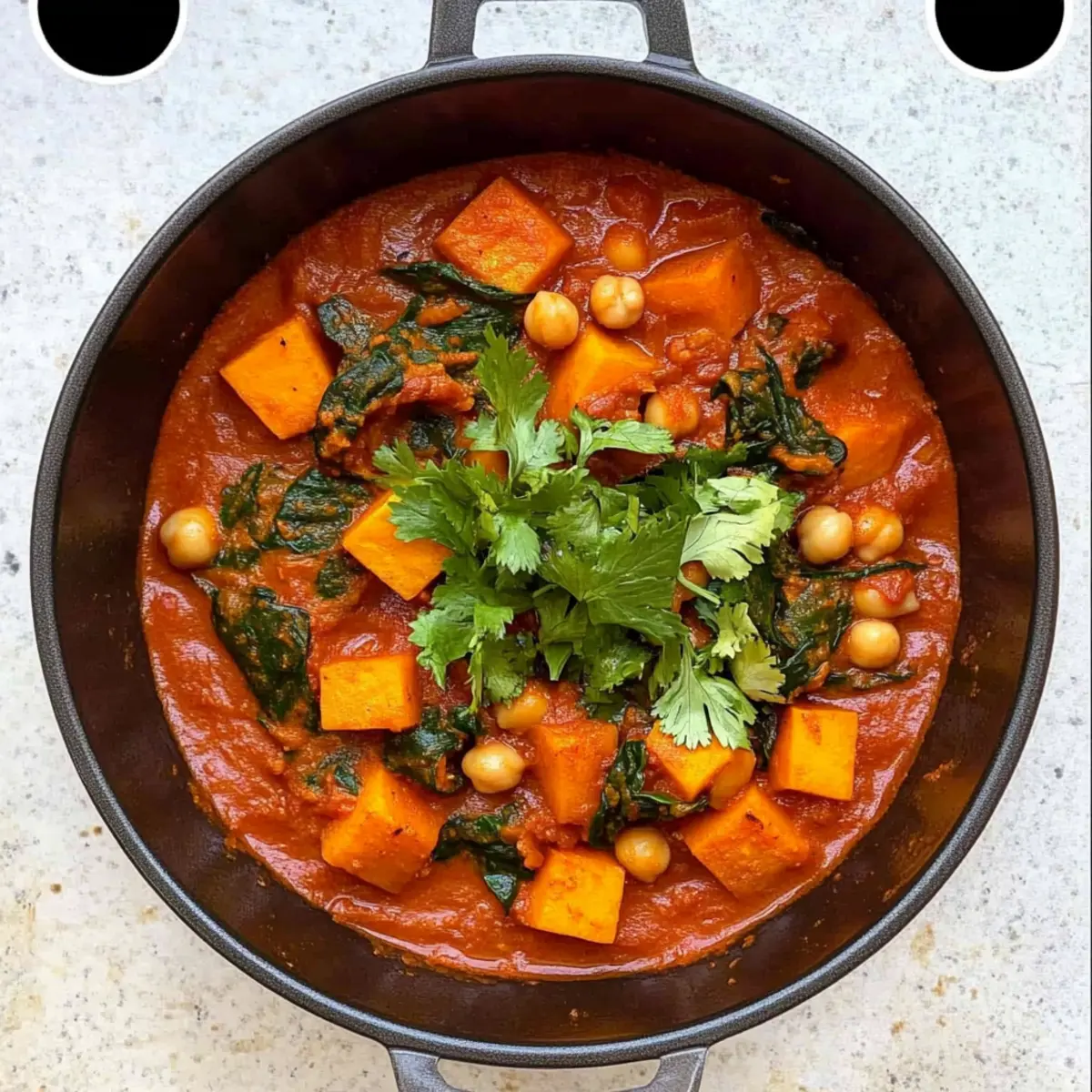 Jump to Recipe Print RecipeI remember first tasting a warm, comforting bowl of curry on a chilly evening, and it instantly became a beloved staple in my kitchen. Today, I’m excited to share with you my One-Pot Sweet Potato and Chickpea Curry—a simple yet satisfying dish that’s perfect for busy weeknights. With just five minutes of prep and a gentle simmer, this vegan and gluten-free delight offers both convenience and a creamy texture, bringing a world of flavors to your table with minimal fuss. Not only is it a crowd-pleaser that caters to health-conscious eaters, but its one-pot nature means fewer dishes to wash afterwards! Curious how the sweetness of roasted sweet potatoes pairs perfectly with hearty chickpeas? Let’s dive into this delightful recipe together! Why is this curry a must-try? Simplicity at Its Best: With just a five-minute prep time, you can create a delicious dish that fits effortlessly into your busy schedule. Rich, Creamy Texture: The combination of sweet potatoes and coconut milk delivers a velvety mouthfeel that pairs beautifully with the protein-packed chickpeas. Ultimate Comfort Food: This hearty curry is a warm hug in a bowl, perfect for chilly evenings or when you’re craving something soothing. One-Pot Genius: Save time and effort with a minimal cleanup process—just add all your ingredients, and let the oven do the work! Flavorful Flexibility: Want to mix it up? You can easily incorporate more veggies like bell peppers or even proteins for a heartier meal. Don’t forget, you can enjoy this dish alongside Sweet Potato Breakfast or try out the delightful Chicken Sweet Potato for even more sweet potato goodness! Sweet Potato and Chickpea Curry Ingredients Discover all the essential components for your delicious Sweet Potato and Chickpea Curry! For the Curry Base Olive Oil (or Coconut Oil) – Adds richness and aids in cooking the garlic; feel free to substitute with any neutral oil. Garlic Cloves – Provide essential aromatic flavor; 2 cloves, crushed, will awaken the dish. Turmeric – Imparts an earthy flavor and beautiful golden color; no direct substitute, but curry powder may work in a pinch. Chili Flakes – Adds mild heat; adjust according to your taste preferences or omit for a milder curry. Paprika – Contributes sweetness and lovely color; you can use regular or smoked paprika for an added dimension. Cayenne Pepper – For extra heat; this is optional, so vary the amount based on your spicy comfort level. Main Ingredients Sweet Potatoes – The star of the dish, providing natural sweetness and creaminess once cooked; peel and chop into cubes. Coconut Milk – Creates a rich sauce; full fat offers creaminess, while light coconut milk can be chosen for a lighter option. Tomato Puree – Enhances the sauce’s richness; crushed tomatoes can be substituted if necessary. Canned Tomatoes – Forms the base of the sauce; any variety works, whether diced or whole. Chickpeas – Adds protein and texture; ensure they are drained and rinsed well. Kale or Spinach (optional) – Introduces extra nutrition; use fresh or frozen varieties, depending on what you have on hand. Salt & Pepper – Essential for seasoning; adjust to taste for that perfect balance. Feel free to explore the comforting depths of this Sweet Potato and Chickpea Curry, where every ingredient plays a vital role in creating a dish that’s not just nourishing but wonderfully inviting! Step‑by‑Step Instructions for Sweet Potato and Chickpea Curry Step 1: Preheat and Prep Begin by preheating your oven to 200°C (390°F) to create the ideal cooking environment for your Sweet Potato and Chickpea Curry. While the oven heats, peel and chop the sweet potatoes into even cubes, ensuring they are uniform for consistent cooking. Set them aside, ready to absorb all the delicious flavors. Step 2: Sauté the Aromatics In a large pot, drizzle in a tablespoon of olive or coconut oil and heat over low to medium heat. Once the oil shimmers, add the crushed garlic cloves, stirring gently until they sizzle and become fragrant—about 1-2 minutes. This step is crucial, as the garlic is the foundation of flavor for your scrumptious curry. Step 3: Add Spices and Sweet Potatoes Next, stir in the turmeric, chili flakes, paprika, and cayenne pepper, allowing the spices to toast slightly for about 30 seconds until they release their aromas. Afterward, gently fold in the cubed sweet potatoes, ensuring they are coated in the fragrant mixture, setting the stage for the rich taste of the Sweet Potato and Chickpea Curry. Step 4: Combine the Sauce Ingredients Pour in the coconut milk, tomato puree, and canned tomatoes, stirring thoroughly to combine all the ingredients. Bring the mixture to a gentle boil while mixing in your drained and rinsed chickpeas for added protein. Keep an eye on it, allowing the vibrant colors to meld beautifully as the sauce thickens slightly. Step 5: Bake to Perfection Cover the pot with a lid and carefully place it in the preheated oven. Let it bake for 45 minutes, during which the sweet potatoes become tender and the flavors meld together. As the cooking time progresses, your kitchen will be filled with enticing aromas that hint at the delicious meal to come. Step 6: Finish with Greens Once the baking time is up, carefully remove the pot from the oven. If you’re using kale or spinach, add it now, stirring it into the curry, and cover again with the lid. Return the pot to the oven for an additional 15 minutes, allowing the greens to wilt perfectly and infuse extra nutrients into your hearty Sweet Potato and Chickpea Curry. Sweet Potato and Chickpea Curry Variations Feel free to personalize your dish with delightful spins that will tantalize your taste buds! Butternut Squash: Swap sweet potatoes for butternut squash or pumpkin for a lovely autumnal taste. The sweetness balances the spices beautifully. Protein Boost: Add cooked tofu, chicken, or shrimp towards the end of cooking for extr