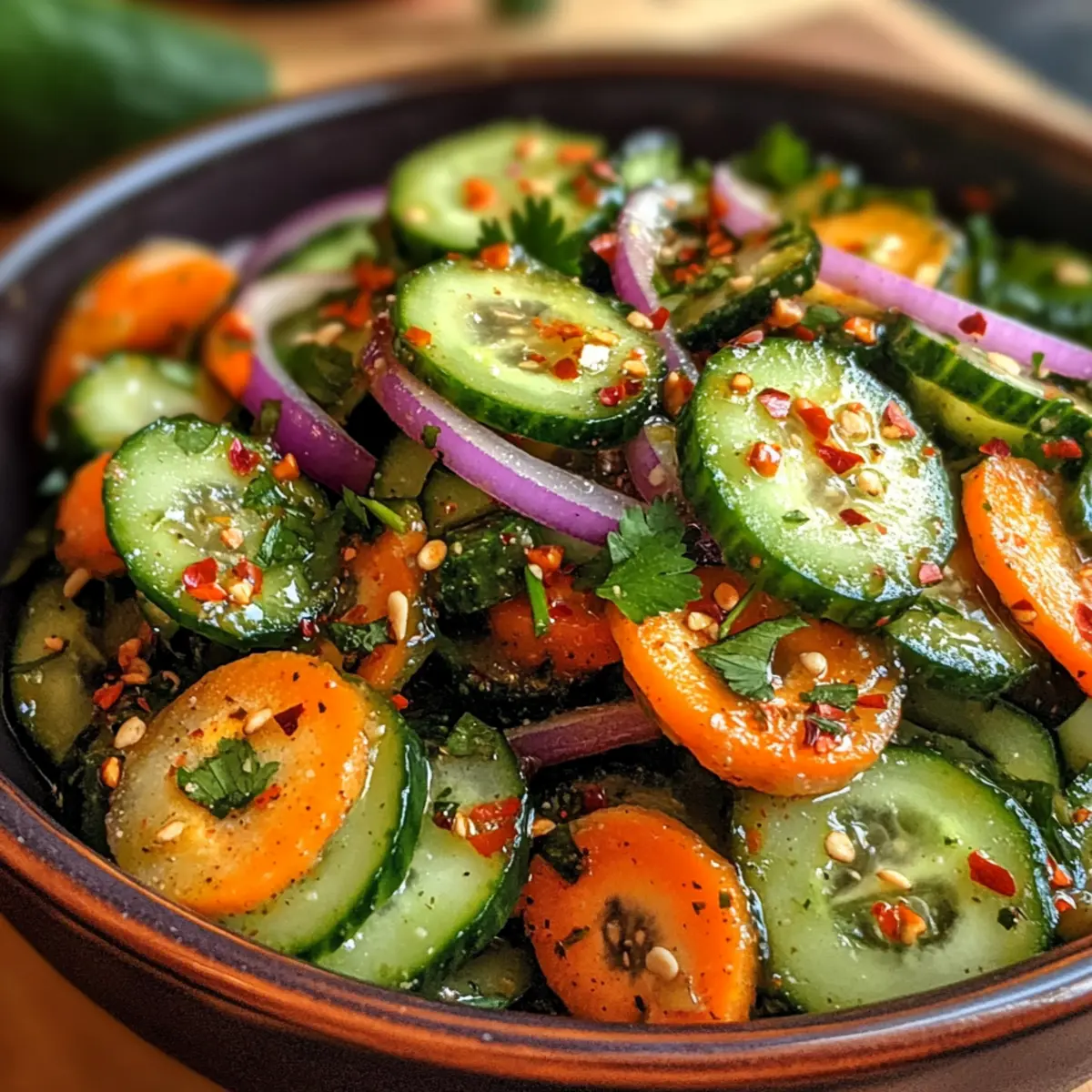 Vibrant Flavors: The combination of crisp cucumbers and a zesty dressing creates a refreshing sensation that’s simply irresistible.
