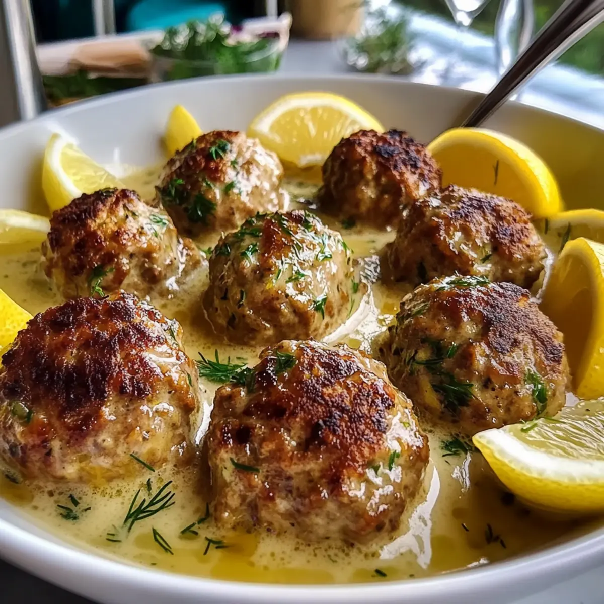 Jump to Recipe Print RecipeAs I stood in my kitchen, the aromatic whispers of Mediterranean herbs surrounded me, drawing me back to family dinners filled with laughter and love. These Soft and Juicy Greek Meatballs in Lemon Sauce, also known as Youvarlakia Avgolemono, are a timeless recipe that never fails to warm my heart. With their melt-in-your-mouth tenderness and the vibrant, tangy embrace of the avgolemono sauce, they make a delightful family meal that’s both comforting and satisfying. Plus, they’re freezer-friendly, allowing you to whip up a batch ahead of time for those busy weeknights. So, why not bring a taste of Greece into your home today? I can’t wait for you to try this recipe—what will you serve it with? Why are these meatballs so special? Tender and Juicy: These meatballs are crafted to be exceptionally soft, ensuring every bite melts in your mouth. Flavorful Avgolemono Sauce: The creamy lemon sauce adds a punch of tanginess, elevating the dish to new heights! Versatile Substitutions: With easy swaps like ground turkey for a leaner option or a flax egg for a vegan twist, everyone can enjoy this hearty recipe. Family-Friendly: Perfect for gatherings, this comforting meal brings everyone together, reminiscent of joyous family celebrations. Pair it with some Lemon Pizza Zesty for a delightful taste adventure! Make Ahead: Don’t forget—these meatballs freeze beautifully! Prepare a batch ahead for those busy nights without compromising on flavor. The Softest and Juiciest Greek Meatballs in Lemon Sauce Ingredients For the Meatballs Ground beef – This is the primary protein that gives the meatballs their classic texture; you can swap it for ground turkey or chicken for a lighter version. Onion (finely grated) – Adds moisture and enhances the flavor profile; shallots may be used for a sweeter taste. Arborio rice (uncooked) – Provides the right structure and tenderness; avoid using cooked rice as it will alter the meatballs’ texture. Fresh parsley (chopped) – Brings a burst of freshness and color to the dish; cilantro can be used for a different flavor experience. Fresh dill (chopped) – Elevates the Mediterranean essence of the dish; feel free to omit it if you prefer a simpler taste. Egg – Acts as a binder for the mixture; if you’re looking for a vegan alternative, consider using a flax egg. Salt and black pepper – Crucial for flavoring; opt for sea salt for a more refined taste. Dried oregano – A staple in Greek cuisine that adds authentic flavor; fresh oregano can be a delightful substitute. For the Lemon Sauce Chicken broth – Provides rich depth in flavor; you can easily use vegetable broth to make this dish vegetarian-friendly. Olive oil – Enhances the overall taste while aiding in simmering; sunflower oil is a suitable alternative. Eggs (for sauce) – The base of the creamy avgolemono sauce; yogurt can be an interesting alternative for a tangy twist. Lemon juice (about 1/4 cup) – Infuses brightness and acidity into the sauce; in a pinch, vinegar can serve as a substitute, but reduce the amount. Let the ingredients of these The Softest and Juiciest Greek Meatballs in Lemon Sauce set the stage for a delightful culinary adventure in your kitchen! Step‑by‑Step Instructions for The Softest and Juiciest Greek Meatballs in Lemon Sauce Step 1: Prepare the Meatball Mixture In a large mixing bowl, combine ground beef, finely grated onion, uncooked Arborio rice, chopped parsley, dill, egg, dried oregano, salt, and black pepper. Mix gently until all ingredients are just combined, being careful not to overmix, which can make the meatballs tough. The mixture should be slightly sticky and fragrant, about 5 minutes of mixing. Step 2: Form and Chill the Meatballs Using your hands, form the meat mixture into golf ball-sized meatballs, placing them on a parchment-lined tray. Aim for uniform size to ensure even cooking. Cover with plastic wrap and refrigerate for 15–20 minutes; this helps the meatballs firm up, making them less likely to break apart when cooked. Step 3: Start the Cooking Broth In a wide, heavy-bottomed pot over medium heat, pour in chicken broth and add olive oil. Bring this mixture to a gentle simmer, allowing the flavors to meld for about 5 minutes. The broth should be warm but not boiling; this warmth will help cook the meatballs evenly and create a flavorful base for the sauce. Step 4: Cook the Meatballs Carefully add the chilled meatballs to the simmering broth, ensuring they are not overcrowded. Cover the pot and reduce the heat to low. Let the meatballs simmer for 30 minutes until they are fully cooked and the rice has become tender. You’ll know they are done when they are firm to the touch but still juicy. Step 5: Whisk the Avgolemono Sauce In a separate bowl, vigorously whisk together the eggs and lemon juice until the mixture is smooth and creamy. Gradually add hot broth from the pot, one ladle at a time, while whisking continuously. This tempering process prevents the eggs from curdling, ensuring a silky avgolemono sauce, which should take about 3-4 minutes to achieve. Step 6: Combine and Thicken the Sauce Return the tempered egg-lemon mixture to the pot with the meatballs, stirring gently to incorporate. Heat the pot on very low, keeping it just below boiling for about 5 minutes until the sauce thickens slightly. Be sure to stir gently to avoid curdling the eggs, creating a rich, creamy sauce enveloping the soft meatballs. Step 7: Serve and Garnish Once the sauce has thickened, remove the pot from heat. Using a ladle, serve the meatballs warm in shallow bowls, drizzling them generously with the luscious lemon sauce. Garnish with additional chopped dill or lemon wedges as desired, creating a vibrant presentation for this comforting dish. How to Store and Freeze The Softest and Juiciest Greek Meatballs in Lemon Sauce Fridge: Store the cooked meatballs in an airtight container for up to 3 days. Keep the avgolemono sauce sep