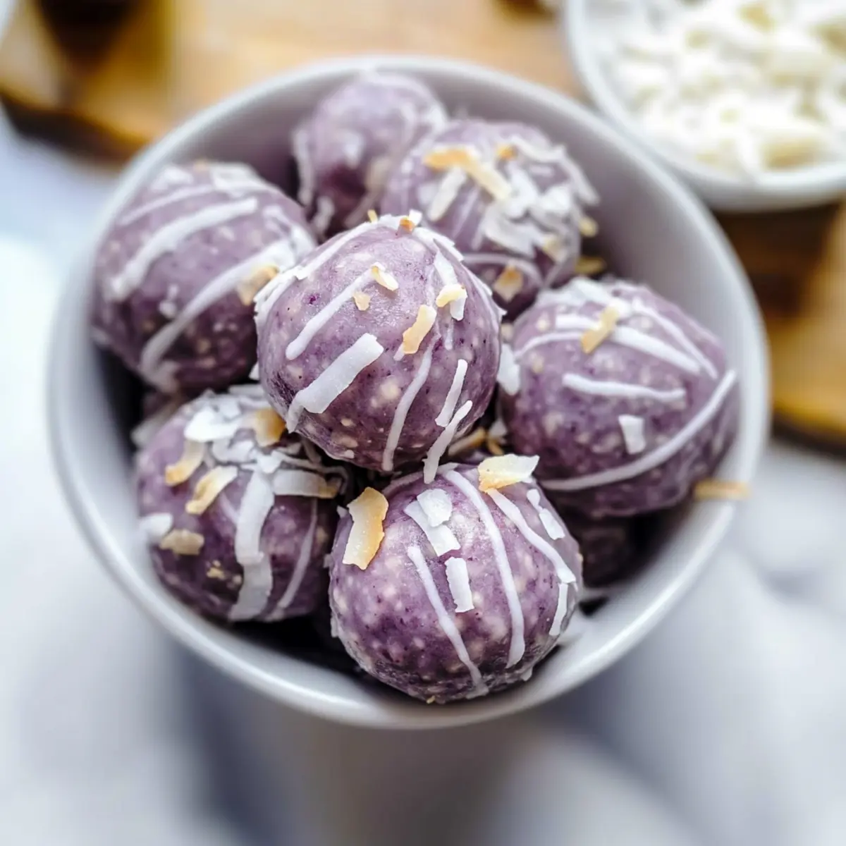 Jump to Recipe Print RecipeAs I watched the vibrant ube halaya transform into a delightful treat, my kitchen suddenly filled with a tempting sweetness that promised a quick energy boost. These No-Bake Ube Protein Balls are not just a treat; they fit seamlessly into a busy lifestyle, allowing me to indulge my cravings without the guilt. Packed with protein and wrapped in a chewy, delicious texture, they stand out as a healthy, grab-and-go snack for anyone tired of the fast food rut. Plus, with simple ingredients and a no-bake method, you can whip them up in no time. Are you ready to elevate your snacking game with this colorful, nutrient-packed gem? Why Choose Ube Protein Balls? Nutrient-Packed: These Ube Protein Balls boast a fantastic blend of rolled oats, providing fiber and energy, making them the perfect snack for busy days. No-Bake Convenience: Whip them up in minutes without turning on the oven, saving you time and effort in the kitchen. Versatile Substitutions: With easy swaps for ingredients like almond butter or protein powder, you can customize these protein bites to match your taste preferences or pantry supplies. Naturally Sweetened: Enjoy a guilt-free indulgence as these bites get their delectable sweetness from dates and ube halaya—no refined sugars required! Cultural Twist: Ube adds not just flavor but a stunning color to your snacks, making them an eye-catching treat that impresses family and friends. Try pairing them with a Bowl Tahini Yogurt for a wholesome, balanced snack experience. Ube Protein Balls with Rolled Oats Ingredients • For the Base Rolled Oats – Provides structure and fiber; substitute with quick oats for a smoother texture. Ube Halaya – Adds natural sweetness and distinctive flavor; swap with mashed sweet potato and ube extract if unavailable. Protein Powder – Boosts protein content; can be replaced with more oats or almond flour for a lower protein version. Pitted Dates – Serves as a natural sweetener and binder; soak in warm water for 5 minutes if dry. Almond Butter – Imparts creaminess and healthy fats; substitute with any nut or seed butter. • For the Flavor Shredded Coconut – Enhances texture and flavor; omit if desired, but no substitutions necessary. Vanilla Extract – Provides aromatic flavor; optional but recommended for the best taste. Pinch of Salt – Balances sweetness and enhances overall flavor. These Ube Protein Balls with Rolled Oats are the perfect solution to your snacking woes, combining nutrition and taste in every bite! Step‑by‑Step Instructions for Ube Protein Balls with Rolled Oats Step 1: Combine Ingredients In a food processor, add rolled oats, ube halaya, protein powder, shredded coconut, pitted dates, almond butter, vanilla extract, and a pinch of salt. Pulse the mixture for about 30 seconds, ensuring all ingredients are well combined. You want a thick, sticky mass that holds together. If the mixture seems too dry, don’t hesitate to add water one tablespoon at a time until achieving the desired consistency. Step 2: Form the Balls Once your mixture for the Ube Protein Balls is well-combined, it’s time to shape them. Use a small cookie scoop or a spoon to portion out the dough, making sure to work with wet hands to prevent sticking. Roll each portion into smooth balls, about the size of a golf ball, and place them on a parchment-lined baking sheet for easy handling. Step 3: Chill and Firm Up After forming the balls, place the baking sheet into the refrigerator for about 10 minutes. This chilling time is essential for the Ube Protein Balls to firm up, making them easier to handle and enhancing their chewy texture. If you’re in a hurry, you can enjoy them immediately, but chilling does enhance the overall experience! Step 4: Store for Later Enjoyment Once chilled, your Ube Protein Balls are ready to be enjoyed! You can store them in an airtight container in the refrigerator for up to 7 days, making them a quick grab-and-go snack. For longer storage, freeze the protein balls for up to two months—just let them thaw for a few minutes before eating, keeping your healthy treat on hand whenever the craving strikes! Expert Tips for Ube Protein Balls Check Consistency: If your ube protein balls are too crumbly, add water little by little until the mixture holds together nicely. Batch Freezing: Make a double batch of these Ube Protein Balls and freeze half—this way, you’ll always have a quick snack on hand! Experiment with Flavors: Feel free to switch up the nut butter or add cacao powder for a chocolatey twist. Let your taste buds guide you! Avoid Overmixing: Pulse your ingredients until just combined; overmixing can lead to a dry texture. Aim for a sticky dough for the best flavor. Storage Secrets: Keep your Ube Protein Balls in an airtight container in the fridge for up to 7 days, and enjoy on-the-go without any fuss! Ube Protein Balls with Rolled Oats Variations Feel free to get creative with these Ube Protein Balls, transforming them into personalized bites of bliss that cater to your taste and dietary needs! Nut Butter Swap: Use peanut or cashew butter instead of almond butter for a new flavor profile. The creaminess will still shine through! Enhanced Sweetness: Mix in honey or maple syrup if you prefer an extra hint of sweetness. Just remember to adjust other wet ingredients to maintain consistency. Texture Boost: Add crushed nuts or seeds to the mixture for an added crunch that brings a delightful contrast to the chewiness. Choco Delight: Incorporate a few tablespoons of cacao powder for a rich chocolatey twist. This adds depth to the flavor without overpowering the ube. Dried Fruit Medley: Toss in chopped dried cranberries or raisins for a fruitier aroma and chewy texture. It’s a fun surprise in every bite! Protein Punch: Experiment with different flavored protein powders, like vanilla or chocolate, to customize the nutritional profile while enhancing the taste. Savory Spin: Replace a small port