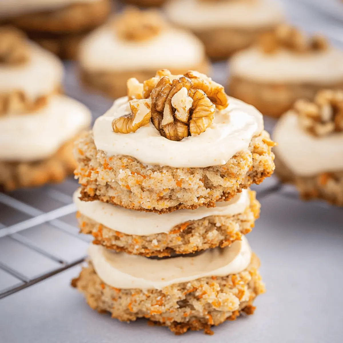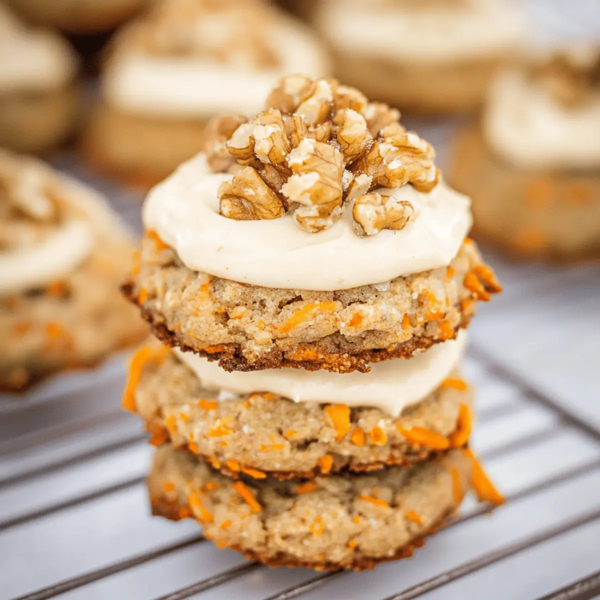 Jump to Recipe Print RecipeThe tantalizing aroma of freshly baked cookies wafted through my kitchen, transporting me straight to a cozy café on a sunny afternoon. These Vegan Carrot Cake Cookies are my go-to creation for anyone craving a guilt-free indulgence that doesn’t skimp on flavor. Combining the beloved essence of classic carrot cake with the convenience of a cookie, you’ll find they are quick to prepare and utterly delicious. Whether you’re a busy parent seeking a wholesome snack or a dessert lover looking for a healthy twist, these cookies check all the boxes! Just imagine biting into a soft, chewy treat topped with creamy vegan cream cheese frosting, all while enjoying the nutritional benefits packed in each bite. Ready to dive into this scrumptious recipe? Let’s get baking! Why Are These Cookies a Must-Try? Irresistible Flavor: The fusion of warm spices, sweet carrots, and rich frosting creates a delightful taste sensation that you won’t be able to resist. Quick and Easy: Simple enough for novice bakers, these cookies come together in no time, making them perfect for busy weekdays or unexpected guests. Nutritious Indulgence: Packed with wholesome ingredients like oats and grated carrots, you can enjoy a guilt-free treat without compromising on health. Versatile Options: Whether you prefer crunchy walnuts or creamy dairy-free white chocolate chips, these cookies can be easily customized to your liking! Consider pairing them with a cup of tea or enjoy them with a serving of Zucchini Bread Cookies for a delightful dessert spread. Crowd-Pleaser: These Vegan Carrot Cake Cookies will wow your family and friends at any gathering, ensuring that everyone leaves satisfied. Get ready to share the love because they’re hard to resist! Vegan Carrot Cake Cookies Ingredients • Let’s gather everything for your delicious cookies! For the Cookie Dough Quick Cooking Oats – Provides chewiness and helps absorb moisture in the cookies; rolled oats can be used instead if preferred. Whole Wheat Flour – Contributes to the structure and adds fiber; all-purpose flour can be substituted for a lighter texture. Baking Powder – Acts as a leavening agent, ensuring cookies puff up beautifully. Ground Cinnamon – Adds warmth and that classic carrot cake flavor you adore. Nutmeg – Enhances the spice profile; use fresh nutmeg for a stronger flavor. Sea Salt – Balances sweetness and enhances the overall flavor of the cookies. Ground Ginger – Complements the spices and adds a delightful hint of zing. Grated Carrots – The key ingredient for moisture and nutrition; use freshly grated for the best texture. Chopped Walnuts – Adds crunch and flavor; feel free to replace with dairy-free white chocolate chips for an extra touch of sweetness. Shredded Coconut – Introduces texture and a hint of sweetness; consider using candied ginger for a spicy twist! Raisins (optional) – Provides chewy sweetness; can be swapped for dried pineapple if you prefer. Pure Maple Syrup – A natural sweetener that delivers depth of flavor; alternatives include agave syrup. Coconut Oil (melted) – Adds richness and moisture; olive oil can be a good substitute. Vanilla Extract – Enhances the overall flavor profile and brings everything together. For the Vegan Cream Cheese Frosting Vegan Cream Cheese (softened) – The base for your fluffy frosting. Vegan Unsalted Butter (softened) – Aids in creaminess and makes mixing a breeze. Vanilla Extract – Adds an extra layer of flavor depth. Organic Powdered Sugar – Sweetens and thickens the frosting; adjust the quantity until you reach your desired consistency. With these ingredients in hand, you’re on your way to baking mouthwatering Vegan Carrot Cake Cookies that will delight your taste buds! Step‑by‑Step Instructions for Vegan Carrot Cake Cookies Step 1: Preheat the Oven Begin by preheating your oven to 375°F (190°C) and prepare two baking sheets by lining them with parchment paper. The parchment will prevent sticking, making cleanup a breeze. While the oven heats up, gather your ingredients to ensure everything is ready for mixing. Step 2: Mix Dry Ingredients In a large mixing bowl, whisk together the quick cooking oats, whole wheat flour, baking powder, ground cinnamon, nutmeg, sea salt, and ground ginger. This blend of dry ingredients forms the flavorful base of your Vegan Carrot Cake Cookies. Be sure to mix well until all the spices are evenly distributed. Step 3: Fold in Add-ins Next, stir in the freshly grated carrots, chopped walnuts, shredded coconut, and any optional raisins or dried pineapple. Use a rubber spatula to gently combine everything until the mixture is well mixed. This ensures that the moisture from the carrots is evenly incorporated throughout the dough. Step 4: Prepare the Wet Ingredients In a separate bowl, whisk together the pure maple syrup, melted coconut oil, and vanilla extract. This wet mixture is vital for adding flavor and moisture to your Vegan Carrot Cake Cookies. Mix until smooth and ensure that the coconut oil is well combined with the rest of the ingredients. Step 5: Combine Mixtures Gradually pour the wet mixture into the bowl with the dry ingredients, mixing until a thick dough forms. This is where the magic happens—the combination creates a wonderful cookie dough filled with wholesome goodness. Stir just until combined, as overmixing can lead to denser cookies. Step 6: Scoop the Dough Using a 1/4 cup scoop, portion out the cookie dough onto the prepared baking sheets, spacing each dough ball about 2 inches apart. This spacing allows the cookies to spread without crowding. Gently flatten each ball slightly with the back of a spoon to give them a more cookie-like shape. Step 7: Bake the Cookies Bake the cookies in your preheated oven for 15-17 minutes, or until they are golden brown around the edges. Be careful not to overbake; they should look slightly underdone in the center, as they will continue to firm u
