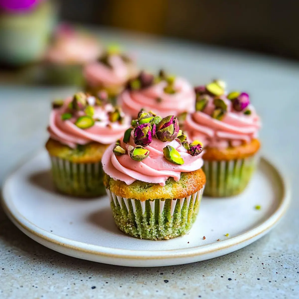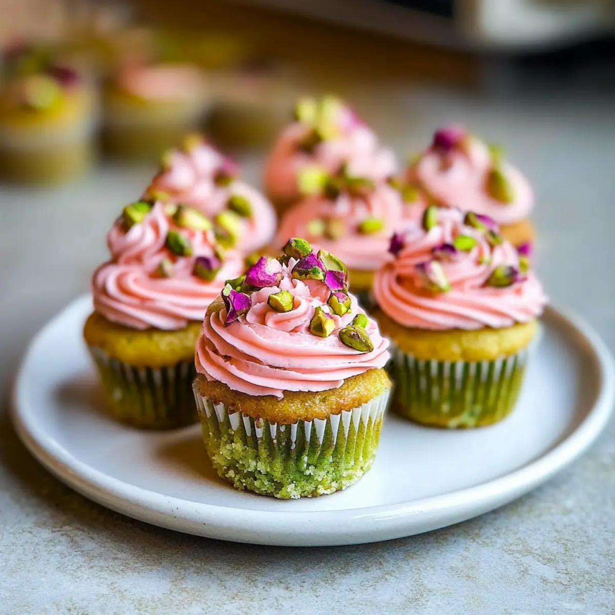 Jump to Recipe Print RecipeAs the oven hums with anticipation, a delightful aroma begins to fill the kitchen, hinting at magic in the making. I’m excited to share my recipe for Vegan Mini Rose Pistachio Cupcakes—dainty little creations that are not only a feast for the eyes but also a joy for the taste buds! These cupcakes offer the perfect blend of airy texture and a subtle nutty flavor, making them a fantastic addition to any gathering or special occasion. Whether you’re celebrating a birthday, a baby shower, or simply indulging in a cozy afternoon treat, these vegan delights are quick to whip up and sure to impress. Plus, they come with a lovely floral twist that adds elegance to everything from tea parties to festive holidays. Curiosity piqued? Let’s dive into the sweet details of crafting these enchanting cupcakes! Why Choose Vegan Mini Rose Pistachio Cupcakes? Irresistible Appeal: These Vegan Mini Rose Pistachio Cupcakes are not just a treat for the taste buds; their stunning design makes them a showstopper at any gathering. Easy to Make: With simple, accessible ingredients, you’ll find this recipe requires minimal effort, perfect for both novice bakers and seasoned chefs. Unique Flavor Fusion: The charming combination of nutty pistachios and fragrant rose water gives these treats a sophisticated twist sure to delight guests. Versatile Variations: Feel free to swap pistachios for almonds or walnuts for a personal touch, or use vibrant food colors to create a fun atmosphere. Perfect for Any Occasion: Be it a cozy tea time or a lively celebration, these cupcakes shine bright, leaving a lasting impression on friends and family. Looking for more delightful ideas? Check out my Strawberry Mango Cupcakes for a fruity twist or the creamy Vegan Pink Pasta that pairs perfectly alongside these charming cupcakes! Vegan Mini Rose Pistachio Cupcake Ingredients For the Cupcakes Soy Milk – Provides moisture and acts as a vegan substitute for buttermilk in the batter; can be substituted with oat milk or almond milk. Lemon Juice – Adds acidity to balance sweetness and helps thicken soy milk; use the juice of about half a small lemon. Extra Virgin Olive Oil – Adds moisture and richness; can be replaced with neutral oils like canola or sunflower oil. Vanilla Extract – Enhances flavor and sweetness. Granulated White Sugar – Offers sweetness for the cupcakes. Sea Salt – Balances the overall flavors. All-Purpose Flour – Forms the structure of the cupcakes; ensure it is spooned into the cup for accurate measurement. Baking Powder – Acts as a leavening agent to help the cupcakes rise. Baking Soda – Works alongside the baking powder for additional lift. Vegan Green Food Dye – Adds color for aesthetic appeal; adjust amount for desired shade. Raw Pistachio Kernels (chopped) – Adds nuttiness and texture; optional: can use pistachio extract for flavor instead. For the Buttercream Frosting Vegan Butter – Base for the buttercream frosting; let soften before use for easier mixing. Powdered Sugar – Sweetens and thickens the buttercream. Lemon Juice (for frosting) – Adds tanginess to complement the sweetness. Food Grade Rose Water – Imparts a floral flavor to the frosting; can substitute with more vanilla or lemon juice. Red Food Dye – For tinting the buttercream pink. For Garnishing Chopped Pistachios – Perfect for topping to enhance the nutty flavor. Dried Rose Buds (optional) – A lovely decoration that adds elegance to the cupcakes. Dive into a world of flavor with these Vegan Mini Rose Pistachio Cupcakes! Step‑by‑Step Instructions for Vegan Mini Rose Pistachio Cupcakes Step 1: Preheat the Oven Begin by preheating your oven to 340ºF (170ºC). While the oven warms up, prepare your cupcake tins by lining them with colorful cupcake liners. This step not only helps in easy removal later but also adds a charming touch to your Vegan Mini Rose Pistachio Cupcakes. Step 2: Create the Vegan Buttermilk In a mixing bowl, whisk together 1 cup of soy milk with the juice of half a lemon, allowing this mixture to sit for about 5 minutes. This will thicken and mimic traditional buttermilk. Next, stir in ⅓ cup of extra virgin olive oil, 1 teaspoon of vanilla extract, ¾ cup of granulated sugar, and a pinch of sea salt, ensuring all ingredients are combined smoothly for a rich batter. Step 3: Mix the Dry Ingredients Sift together 1 ½ cups of all-purpose flour, 1 teaspoon of baking powder, and ½ teaspoon of baking soda in a separate bowl. Gradually fold this mixture into your wet ingredients, stirring gently until a smooth, lump-free batter forms. Be careful not to overmix, as this helps to maintain the light texture in your Vegan Mini Rose Pistachio Cupcakes. Step 4: Color and Flavor the Batter After achieving a smooth batter, add a few drops of vegan green food dye, mixing until you reach a lovely pastel shade. Next, fold in ½ cup of chopped raw pistachio kernels to give your cupcakes a delightful nutty crunch. The batter should be vibrant and fragrant at this stage! Step 5: Fill the Cupcake Liners Spoon the batter into the prepared cupcake liners, filling each about halfway to allow room for rising. Bake them in your preheated oven for 25 minutes, checking for doneness by inserting a toothpick into the center—the toothpick should come out clean when the cupcakes are ready. Step 6: Cool the Cupcakes Once baked, remove the cupcakes from the oven and place them on a wire rack. Allow them to cool for at least 30 minutes. It’s important that the Vegan Mini Rose Pistachio Cupcakes cool completely before frosting, ensuring the frosting doesn’t melt off when applied. Step 7: Prepare the Buttercream Frosting While the cupcakes cool, beat ½ cup of softened vegan butter in a bowl. Gradually add 2 cups of powdered sugar, mixing until fluffy. Then, incorporate 2 tablespoons of lemon juice and 1 teaspoon of food grade rose water for an aromatic finish. Add a few drops of red food d
