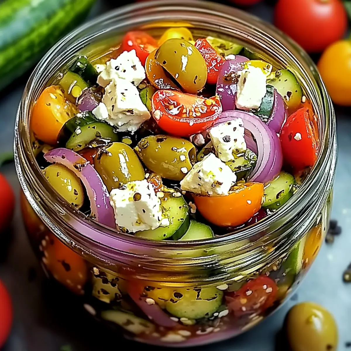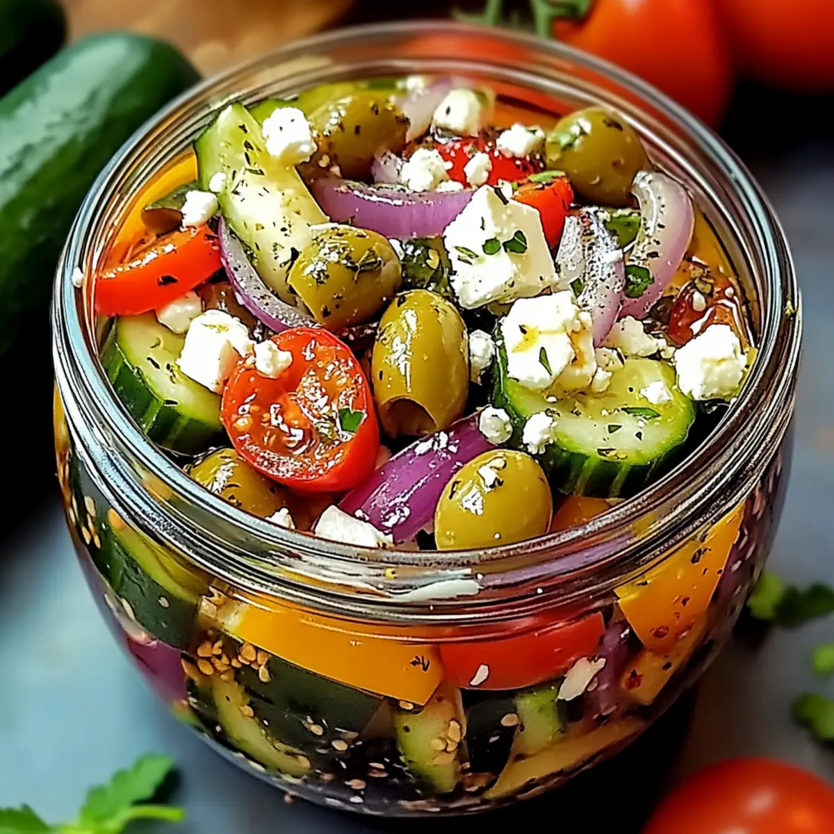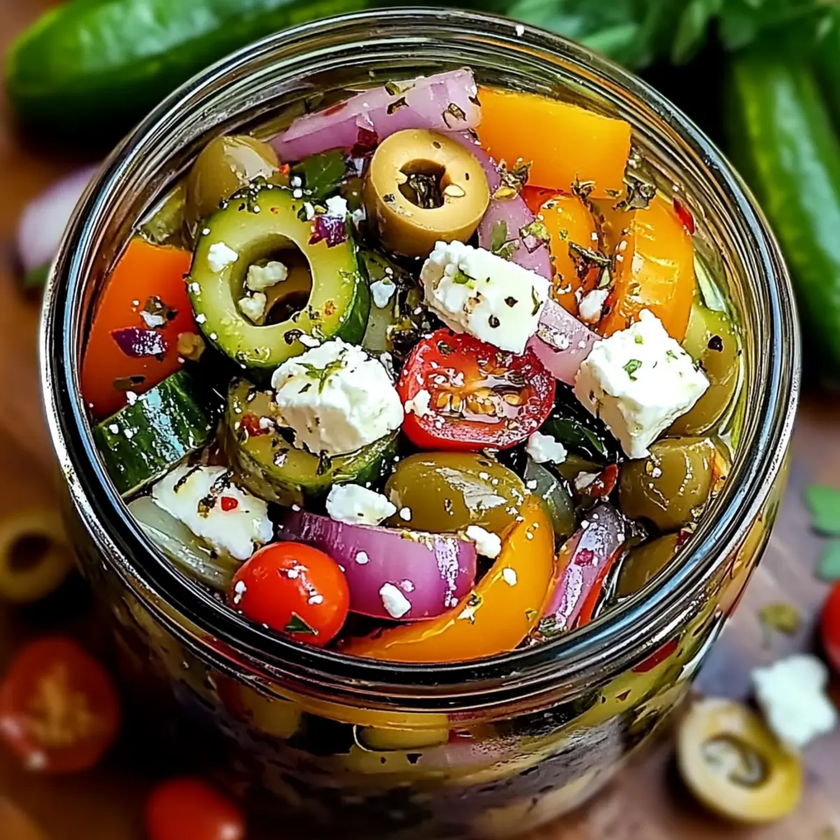 Jump to Recipe Print RecipeAs I opened the fridge, a burst of colors caught my eye—vivid reds, crisp greens, and glossy purples all mingling together, begging to be transformed into something extraordinary. Enter my Zesty Mediterranean Pickled Veggies with Feta and Oregano, a quick pickling delight that not only showcases these vibrant vegetables but also elevates them to new heights. With minimal prep and the ability to whip up a batch ahead of time, this recipe serves as a refreshing side dish ideal for grilled meats or a bright topping on salads. Each bite is a perfect balance of tangy and savory, with the added creaminess of feta inviting you to savor the crunch. What creative twists will you add to make this dish uniquely yours? Why Are These Pickled Veggies a Must-Try? Deliciously Versatile: These Zesty Mediterranean Pickled Veggies elevate any meal, whether you’re enjoying a grilled feast or dressing up a simple salad. Easy Preparation: With only a few minutes of active time, you can prepare a bright, flavorful side dish perfect for busy weeknights. Make-Ahead Magic: Ideal for meal prep, these pickled veggies can sit in your fridge for days, allowing flavors to deepen. Nutrient-Packed: Enjoy the health benefits of fresh vegetables while indulging in a tasty treat. Crowd-Pleasing Appeal: Whether for a family dinner or a gathering, these veggies are sure to impress guests. Get inspired by other quick and delightful recipes like Korean Ramen Grilled or Nourish Bowl Tahini to complement your meals! Zesty Mediterranean Pickled Veggies Ingredients Transform your cooking with these delightful Zesty Mediterranean Pickled Veggies with Feta and Oregano! For the Vegetables Red Bell Pepper – Adds sweetness and crunch; substitute with yellow or orange bell pepper for a sweeter taste. Cucumber – Brings freshness and crisp texture; consider Persian or English cucumbers for fewer seeds. Red Onion – Provides sharp flavor and vibrant color; use shallots for a milder option. Cherry Tomatoes – Offers a burst of sweetness; any small tomato variety works wonderfully. Kalamata Olives – Contributes saltiness and depth; green olives can offer a different twist. For the Pickling Liquid White Wine Vinegar – Acts as the zingy pickling agent; apple cider vinegar works well for a milder flavor. Olive Oil – Gives richness and smoothness; any neutral oil can substitute in a pinch. Lemon Juice – Brightens the flavor profile; lime juice can also be an excellent alternative. Fresh Oregano – Delivers aromatic herbal notes; if unavailable, use dried oregano (1 tablespoon). Salt – Essential for enhancing all the flavors. Black Pepper – Adds a mild heat and depth. For the Garnish Feta Cheese – Brings creamy richness and a salty contrast; substitute with goat cheese or parmesan if preferred. Step‑by‑Step Instructions for Zesty Mediterranean Pickled Veggies with Feta and Oregano Step 1: Prepare the Vegetables Begin by washing and drying your fresh produce. Slice the red bell pepper into thin strips, chop the cucumber into half-moons, and slice the red onion into thin rings. Halve the cherry tomatoes and then add all these colorful vegetables along with the kalamata olives into a large mixing bowl. The vibrant mixture sets the tone for your Zesty Mediterranean Pickled Veggies. Step 2: Make the Pickling Liquid In a separate small bowl, whisk together the white wine vinegar, olive oil, lemon juice, fresh oregano, salt, and black pepper until fully combined. This tangy mixture will enhance the vegetables’ natural flavors. Take a moment to admire the brightness of the liquid, which will soon coat your veggies. It’s essential for that delightful zing in your pickled dish. Step 3: Combine and Toss Pour the zesty pickling liquid over the bowl of prepared vegetables. Using clean hands or a spatula, gently toss everything together until each piece is evenly coated. Pay attention to how the colors meld and the aroma fills your kitchen! This step ensures that the vegetables soak in all that delicious flavor for your Zesty Mediterranean Pickled Veggies. Step 4: Chill and Marinate Cover the bowl tightly with plastic wrap or a lid and refrigerate for at least 2 hours. For the best flavor development, allow the mixture to marinate for up to 24 hours. As the veggies chill, they’ll infuse with that tangy-sweet goodness, creating an irresistible side dish. You’ll notice the colors intensify and brighter notes develop. Step 5: Add the Finishing Touch When ready to serve, remove the bowl from the fridge and give the pickled veggies a good stir. Just before serving, sprinkle crumbled feta cheese over the top and add a few additional sprigs of oregano if desired. This final touch provides a creamy contrast to the zesty vegetables and elevates your dish to new heights, perfect for a refreshing meal or gathering. Make Ahead Options These Zesty Mediterranean Pickled Veggies with Feta and Oregano are perfect for busy home cooks looking to save time during hectic weeknights! You can prepare the vegetables and pickling liquid up to 24 hours in advance. Simply slice the red bell pepper, cucumber, red onion, and halve the cherry tomatoes, then combine them in a bowl with the kalamata olives. Whisk together the vinegar, olive oil, lemon juice, oregano, salt, and black pepper, and pour it over the veggies. Cover and refrigerate. To maintain the crispness and flavor, avoid letting them marinate longer than a day; just add the crumbled feta just before serving for a delightful, fresh finish! Zesty Mediterranean Pickled Veggies Variations Feel free to let your culinary creativity shine with these delightful variations! Vegan Twist: Omit the feta cheese entirely or substitute it with a vegan creamy alternative to keep this dish plant-based and delicious. Heat It Up: Add sliced jalapeños or a pinch of crushed red pepper for a spicy kick that complements the tanginess beautifully. Every bite can offer that extra warmth